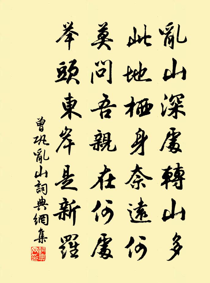 詩詞名句歷史字典書法欣賞書法字典國語詞典說文解字康熙字典古漢語字典標 題 作 者 詩 句 亂山作者:曾鞏 朝代:宋代亂山原文亂山深處轉山多,此地棲身奈遠何。莫問吾親在何處,舉頭東岸是新羅。詩詞問答問:亂山的作者是誰?答:曾鞏問:亂山寫於哪個朝代?答:宋代曾鞏亂山書法欣賞亂山書法作品詩詞推薦聞韓仲文使歸梅堯臣〔宋代〕傳道使車回,柳條黃未開。曉寒非絕漠,春色近章台。名馬北方至,賓鴻南國來。明朝齋祓見,天子始稱才。戴子微運使出使湖北約以惡語送行而未遣也佳周必大〔宋代〕早日逍遙侍從間,重來奉引近威顏。倦趨北闕晨霜冷,思上南樓夜月閒。直指不夸新衣繡,曲台只記舊班聯。豈知寄徐任釋保暹〔宋代〕鄉園書久斷,寒夜起歸心。遠路秦關外,啼猿劍樹深。貧游年暗改,醉臥月空沈。幾夕疏林下,相思廢靜吟。呈盛逢時錢億年〔宋代〕倦翮知還心已休,無窮世事懶回頭。是非不屬閒人耳,月自當空水自流。早入清遠峽(一作下桂江龍目灘)宋之問〔唐代〕傳聞峽山好,旭日棹前沂。雨色搖丹嶂,泉聲聒翠微。兩岩天作帶,萬壑樹披衣。秋菊迎霜序,春藤礙日輝。翳潭秋浦清溪雪夜對酒,客有唱山鷓鴣者李白〔唐代〕披君貂襜褕,對君白玉壺。雪花酒上滅,頓覺夜寒無。客有桂陽至,能吟山鷓鴣。清風動窗竹,越鳥起相呼。持此赤松三詠赤松山姜特立〔宋代〕仙山名字幾千秋,勇退曾聞漢故侯。自笑功名無尺寸,旭來也作赤松游。滿江紅汪莘〔宋代〕意賦之可也唐宋諸公,誰道得、梅花親切。到和靖、先生詩出,古人俱拙。寫照乍分清淺水,傳神初付黃昏月。盡偈頌一百二十三首釋普度〔宋代〕龍門萬仞,到者還稀。不犯清波,如何進步。洪右相生辰喻良能〔宋代〕鳳將南呂入筩聲,節近中秋協氣橫。玉燕呈祥生碩德,金甌覆字佐昇平。望同北斗泰山重,操與秋霜烈日爭。昨夜醉桃源/阮郎歸陳允平〔宋代〕東風開到坼桐花。游蜂初報衙。獸環微掩是誰家。瑣窗金繡紗。環佩小,領巾斜。綠雲雙髻鴉。佯羞無限托琵琶。奉和聖制瑞雪篇劉庭琦〔唐代〕紫宸飛雪曉裴回,層閣重門雪照開。九衢皛耀浮埃盡,千品差池贄帛來。何處田中非種玉,誰家院裡不生梅。埋雲同揚景韓飲虞獻子江亭和壁間文與可韻程公許〔宋代〕晴興屬玉玩煙霏,照眼琅玕碧四圍。堂蔭白茅娟子美,江吟淨練憶玄暉。誰家鼓吹觀游去,何處笭箵罷釣歸。尚想漁父詞薛師石〔宋代〕夜來採石渡頭眠,月下相逢李謫仙。歌一曲,別無言,白鶴飛來雪滿船。赤城釋行海〔宋代〕玉京仙額篆封苔,密密春雲洞不開。白蟒降時憑鐵錫,紅霞飛處接瑤台。林幽怪石如人立,夜靜空山有鬼哀。一曲送王庾宋祁〔宋代〕土甑殘炊黍,津航促扣舷。雲迷孝王苑,星認太丘躔。破瑟弦鵾舞,吟囊錦獸鮮。晚淮他夜月,離思共娟娟。昭君辭應詔庾信〔南北朝〕斂眉光祿塞。還望夫人城。片片紅顏落。雙雙淚眼生。冰河牽馬渡。雪路抱鞍行。胡風入骨冷。夜月照心明。方調翌日趙守轉以酴醿惠予用前韻謝之鄭剛中〔宋代〕染露檀心嫌粉白,數花欲作鵝兒色。圃中不為客分春,使君自有分春力。雜詠十首方鳳〔宋代〕解牛中肯綮,相馬外驪黃。從知得三昧,意到形自忘。浣溪沙蔡伸〔宋代〕漠漠新田綠未齊。柳陰陰下水平堤。竹間時有乳鴉啼。雲斂屏山橫枕畔,夜闌璧月轉林西。玉芝香里彩鴛棲。名句推薦江流天地外,山色有無中。王維《漢江臨泛 / 漢江臨眺》 誰料同心結不成,翻就相思結。夏完淳《卜運算元·秋色到空閨》 一種相思,兩處閒愁。李清照《一剪梅·紅藕香殘玉簟秋》 敏捷詩千首,飄零酒一杯。杜甫《不見》 露清枕簟藕花香,恨悠揚。顧敻《虞美人·觸簾風送景陽鍾》 直道相思了無益,未妨惆悵是清狂。李商隱《無題·重幃深下莫愁堂》 禍福將至,善必先知之;不善,必先知之。故至誠如神。子思《中庸·第二十四章》 寧為雞口,無為牛後。劉向《戰國策·韓一·蘇秦為楚合從說韓王》 大鵬一日同風起,扶搖直上九萬里。李白《上李邕》 煙水初銷見萬家,東風吹柳萬條斜。竇鞏《襄陽寒食寄宇文籍》
