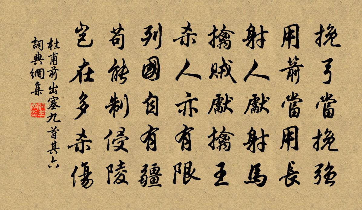 作者是唐代詩人杜甫,詩人先寫《出塞》九首,後又寫《出塞》五首;加“前”、“後”以示區別。《前出塞》是寫天寶末年哥舒翰征伐吐蕃的時事,意在諷刺唐玄宗的開邊黷武,本篇原列第六首,是其中較有名的一篇。 詩的前四句,很象是當時軍中流行的作戰歌訣,頗富韻致,饒有理趣,深得議論要領。所以黃生說它“似謠似諺,最是樂府妙境”。兩個“當”,兩個“先”,妙語連珠,開人胸臆,提出了作戰步驟的關鍵所在,強調部伍要強悍,士氣要高昂,對敵有方略,智勇須並用。四句以排句出之,如數家珍,宛若總結戰鬥經驗。然而從整篇看,它還不是作品的主旨所在,而只是下文的襯筆。後四句才道出赴邊作戰應有的終極目的。“ * 亦有限,列國自有疆。苟能制侵陵,豈在多殺傷?”詩人慷慨陳詞,直抒胸臆,發出振聾發聵的呼聲。他認為,擁強兵只為守邊,赴邊不為殺伐。不論是為制敵而“射馬”,不論是不得已而“殺傷”,不論是擁強兵而“擒王”,都應以“制侵陵”為限度,不能亂動干戈,更不應以黷武為能事,侵犯異邦。這種以戰去戰,以強兵制止侵略的思想,是恢宏正論,安邊良策;它反映了國家的利益,人民的願望。所以,張會在《杜詩府粹》里說,這幾句“大經濟語,借戍卒口說出”。從藝術構思說,作者採用了先揚後抑的手法:前四句以通俗而富哲理的謠諺體開勢,講如何練兵用武,怎樣克敵制勝;後四句卻寫如何節制武功,力避殺伐,逼出“止戈為武”本旨。先行輔筆,後行主筆;輔筆與主筆之間,看似掠轉,實是順接,看似矛盾,實為辯證。因為如無可靠的武備,就不能制止外來侵略;但自恃強大武裝而窮兵黷武,也是不可取的。所以詩人主張既擁強兵,又以“制侵陵”為限,才符合最廣大人民的利益。浦起龍在《讀杜心解》中很有體會地說:“上四(句)如此飛騰,下四(句)忽然掠轉,兔起鶻落,如是!如是!”這裡說的“飛騰”和“掠轉”,就是指作品中的奔騰氣勢和波瀾;這裡說的“兔起鶻落”就是指在奔騰的氣勢中自然地逼出“擁強兵而反黷武”的深邃題旨。在唐人的篇什中,以議論取勝的作品較少,而本詩卻以此見稱;它以立意高、正氣宏、富哲理、有氣勢而博得好評。