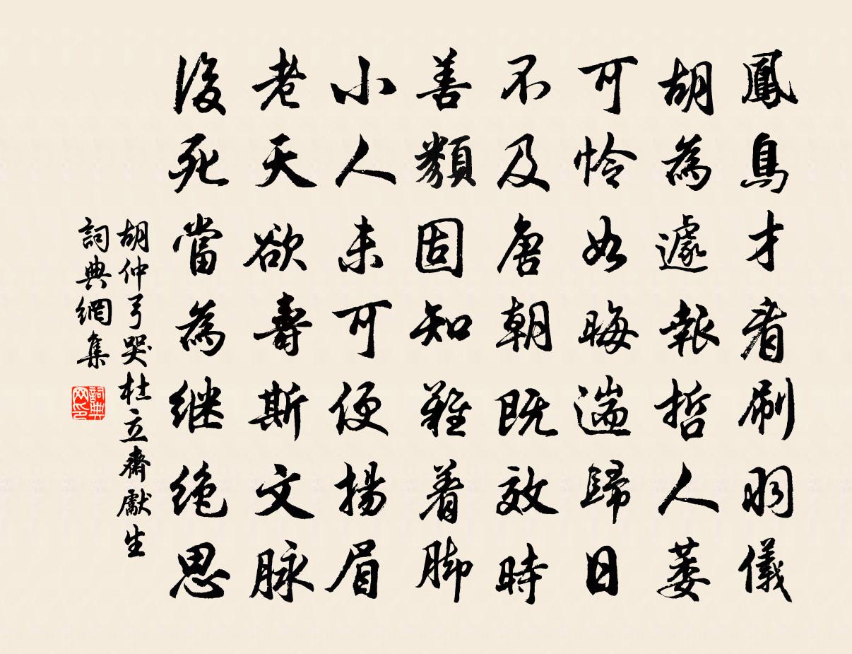 詩詞名句歷史字典書法欣賞書法字典國語詞典說文解字康熙字典古漢語字典標 題 作 者 詩 句 哭杜立齋先生作者:胡仲弓 朝代:宋代哭杜立齋先生原文鳳鳥才看刷羽儀,胡為遽報哲人萎。可憐如晦遄歸日,不及唐朝既效時。善類固知難著腳,小人未可便揚眉。老天欲壽斯文脈,後死當為繼絕思。詩詞問答問:哭杜立齋先生的作者是誰?答:胡仲弓問:哭杜立齋先生寫於哪個朝代?答:宋代胡仲弓哭杜立齋先生書法欣賞哭杜立齋先生書法作品詩詞推薦追和亡友杜仲觀古黃生曲三首之二賀鑄〔宋代〕歡歸夜何其,月照臨門別。後夜待歡來,開門但明月。眼兒媚(瞻叔兄生日五月三日)魏了翁〔宋代〕夢魂不踏 * 班。直作五雲間。簡編真樂,塤篪雅韻,菽水清歡。都將瞥忽榮華事,春夢曉雲看。只期他日,實願春貼子皇帝閣六首真德秀〔宋代〕歲朝元朝使,龍荒萬里來。至仁天廣大,朔漠亦春台。長相思程垓〔宋代〕酒孤斟。客孤吟。戲馬台荒露草深。英雄何處尋。愛登臨。莫登臨。定是愁來關客心。暮天煙水沈。老君洞陸游〔宋代〕丹鳳樓頭語未終,崎嶇蜀道復相逢。太清宮闕俱煨燼,豈亦南來避賊鋒?時秋積雨霽毛直方〔宋代〕醞釀豐年付老農,挽回涼信報詩翁。巫山久暗埋寒碧,湘水初明浴晚紅。簾卷柳陰先得月,簟橫梧影早噓風。天公代人挽妻父號道者李呂〔宋代〕里閈推高足善良,不才何幸玷東床。修容方喜超賓館,奠雁翻成舉酹觴。晚鐸飄聲空有恨,酸風吹淚不成行。諸郎水調歌頭(秋日登浮遠堂作)丘崈〔宋代〕一葉下林表,秋色滿蘅皋。江風吹雨初過,天宇一何高。蠟屐徑來堂上,倚杖然長嘯,萬里看雲濤。逸興浩無際,宮詞一百首王建〔唐代〕蓬萊正殿壓金鰲,紅日初生碧海濤。閒著五門遙北望,柘黃新帕御床高。殿前傳點各依班,召對西來八詔蠻。上得大隱坊。章仇將軍良棄功守貧(一作贈章仇兵馬使)孟郊〔唐代〕飲君江海心,詎能辨淺深。挹君山嶽德,誰能齊嶔岑。東海精為月,西嶽氣凝金。進則萬景晝,退則群物陰。我欲送重鈞上人游天台皎然〔唐代〕漸看華頂出,幽賞意隨生。十里行松色,千重過水聲。海容雲正盡,山色雨初晴。事事將心證,知君道可成。贈葆元白玉蟾〔宋代〕棄儒為見儒多誤,學道緣吾道化賢。且把功名權架閣,抱琴隨我去修仙。故侍讀學士張公哀辭二首司馬光〔宋代〕凶夢歌洹水,妖巢集戴鵀。未嘗余傣祿,無以具衣衾。袁渙分倉谷,仇歸賜府金。他年純固傳,寧使令名沉。憫黎詠錢嶫〔明代〕葉落當歸根,雲沉久必起。黎人多良田,征歛苦倍蓰。誅求盡余粒,尚豢犢與豕。昨當租吏來,宰割充盤幾。吏怒次劍門宋祁〔宋代〕昔驅千騎往,今解五魚還。誰憚老銷髀,自憐生入關。春風來迥野,曉斗掛空山。卻整康成帢,依然愧膩顏。紅頭紫賈似道〔宋代〕紅頭紫勇敵剛強,項赤紅班腿長{外囗內昆}長。翅紫牙灣如桑剪,此蟲名號促織王。贈野牛楊簡〔宋代〕曾將大手挽恆河,引得龍來地起波。何待硯池藏滴水,工夫元不費揩磨。緣識宋太宗〔宋代〕塵中罔測上玄機,日月忙忙速似飛。閒境不能精妙道,疑情謾說六銖衣。虞萬州生日魏了翁〔宋代〕春風吹我游錦官,客眸飽作滄江觀。鶴飛自由白日靜,山來不斷平野寬。主人聞客倒屣迎,案頭點易朱未乾。速呼送陳次畢劉德欽王才卿赴省曾豐〔宋代〕梅花爭送君出鄉,蘭花爭迎君入場。兩花之意豈不厚,非與喜機適相當。集英對罷燕聞喜,紅迎紫送餘桃李。問燕名句推薦欲吊沉累無所,但有漁兒樵子,哀此寫離憂。張孝祥《水調歌頭·過岳陽樓作》 藕花珠綴,猶似汗凝妝。閻選《臨江仙·雨停荷芰逗濃香》 書當快意讀易盡,客有可人期不來。陳師道《絕句·書當快意讀易盡》 驚風飄白日,忽然歸西山曹植《贈徐幹詩》 路遙知馬力,日久見人心。佚名《增廣賢文·上集》 世風之狡詐多端,到底忠厚人顛撲不破王永彬《圍爐夜話·第 * 則》 有桃花紅,李花白,菜花黃。秦觀《行香子·樹繞村莊》 富觀其所與,貧觀其所取,達觀其所好,窮觀其所為王通《中說·卷二·天地篇》 小來思報國,不是愛封侯。岑參《送人赴安西》 歡笑情如舊,蕭疏鬢已斑。韋應物《淮上喜會梁川故人 / 淮上喜會梁州故人》