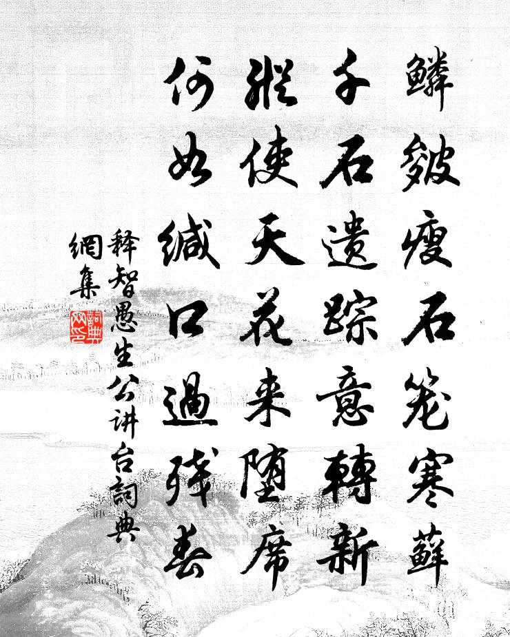 詩詞名句歷史字典書法欣賞書法字典國語詞典說文解字康熙字典古漢語字典標 題 作 者 詩 句 生公講台作者:釋智愚 朝代:宋代生公講台原文鱗皴瘦石籠寒蘚,千石遺蹤意轉新,縱使天花來墮席,何如緘口過殘春。詩詞問答問:生公講台的作者是誰?答:釋智愚問:生公講台寫於哪個朝代?答:宋代釋智愚生公講台書法欣賞生公講台書法作品詩詞推薦病中知皇子陂荷花盛發寄王繢裴夷直〔唐代〕十里蓮塘路不賒,病來簾外是天涯。煩君四句遙相寄,應得詩中便看花。和司徒侍中同賞梨花強至〔宋代〕映花急把玉交杯,鳳掃殘香已幾堆。酷愛豈惟公假借,慣曾御苑見花來。輞川集白石灘王維〔唐代〕清淺白石灘,綠蒲向堪把。家住水東西,浣紗明月下。同年劉辰告妻易氏輓詞周必大〔宋代〕曾師班女頌兄功,何意安仁悼德宮。圍解鴒原芳譽遠,塵昏鸞鏡玉容空。蕭騷風棘悲諸子,寂寞笙歌泣舞童。莫訝如夢令 見終南山石刻,署雲,承安五年重陽王哲〔元代〕大道長生門戶。凡個惺惺覺悟。鉛汞緊收藏,方始澄神絕慮。心慕。心慕。便趨蓬萊仙路。曉意張耒〔宋代〕城頭清角已三奏,樹間眠鳩方一鳴。風霜淒緊雁南向,星河橫斜天左傾。待旦枕戈無怨敵,將朝盛服非公卿。不如黃陵廟陸士規〔宋代〕東風吹草綠離離,路入黃陵古廟西。帝子不知春又去,亂山無主鷓鴣啼。大唐公主嫁匈奴行楊維楨〔元代〕匈奴聽鏑忘劬勞,外家未必忘飛髇。如何異類待同匹,丹鳳下與梟為巢。君不見大唐公主親嫁辱,終唐老鶻來相紗偈頌六十八首釋法薰〔宋代〕春光冉冉,春日遲遲。春風包裹,上下四維。黃鶯聲在柳陰西,此意明明說向誰。和微之詩二十三首。和嘗新酒白居易〔唐代〕空腹嘗新酒,偶成卯時醉。醉來擁褐裘,直至齋時睡。靜酣不語笑,真寢無夢寐。殆欲忘形骸,詎知屬天地。酲余應制賞花釣魚歐陽修〔宋代〕終闕晨霞照霧開,輕塵不動翠華來。魚游碧沼涵靈德,花馥清香薦壽杯。夢聽鈞天聲杳默,日長化國景徘徊。自◇將入關安陸遇兵寇杜荀鶴〔唐代〕家貧無計早離家,離得家來蹇滯多。已是數程行雨雪,更堪中路阻兵戈。幾州戶口看成血,一旦天心卻許和。四面次韻沈元吉兵火後初食羊王之道〔宋代〕時難盆甑久無羶,夢寐何郎食萬錢。一臠乍驚肥羜美,五紽應喜敝裘全。好從牛炙論蓴菜,堪笑河魨詠柳綿。彈鋏送何子應二首馮時行〔宋代〕功名本自屬諸生,誰向滄浪便濯纓。枕上日高惟我懶,船頭風飽看君行。眼前歷歷幾經手,意外悠悠久系情。待得漫興十一首趙蕃〔宋代〕風順風橫總欲乘,傳呼雖數不余譍。去程渺渺湖邊草,宿伴悠悠水上罾。酬玉汝吳汝弌〔宋代〕日暮雲倒飛,苦雨濕茅屋。奇哉五碎金,青草眠黃犢。天行貴葆真,心骨迥凡俗。一尺 * 花,秋風播芳馥。古意二首葉茵〔宋代〕逝波不可回,白鳥不可馴。古人成感慨,今人猶古人。江畔老人愁崔顥〔唐代〕江南年少十 * ,乘舟欲渡青溪口。青溪口邊一老翁,鬢眉皓白已衰朽。自言家代仕梁陳,垂朱拖紫三十人。兩朝游精思觀回,王白雲在後孟浩然〔唐代〕出谷未停午,到家日已曛。回瞻下山路,但見牛羊群。樵子暗相失,草蟲寒不聞。衡門猶未掩,佇立望夫君。三月一日過摩舍郡灘,阻雨泊清溪鎮二首楊萬里〔宋代〕過盡危灘百不堪,忽驚絕壁翠巉巉。倒垂不死千年樹,下拂奔流萬丈潭。隔岸數峰如筆格,倚天一色染春藍。真陽名句推薦君子以鐘鼓道志,以琴瑟樂心。荀子《荀子·樂論》 亭亭畫舸系春潭,直到行人酒半酣。鄭文寶《柳枝詞》 獨善其身盡日安,何須千古名不朽!羅貫中《三國演義·第三十七回》 可憐赤壁爭雄渡,唯有蓑翁坐釣魚。杜牧《齊安郡晚秋》 常人安於故習,學者溺於所聞。商鞅《商君書·更法》 儻寄相思字,愁人定解顏。錢起《送夏侯審校書東歸》 春衫猶是,小蠻針線,曾濕西湖雨。蘇軾《青玉案·送伯固歸吳中》 便覺眼前生意滿,東風吹水綠參差。張栻《立春偶成》 九華山路雲遮寺,清弋江村柳拂橋。杜牧《宣州送裴坦判官往舒州時牧欲赴官歸京》 情似遊絲,人如飛絮。淚珠閣定空相覷。周紫芝《踏莎行·情似遊絲》