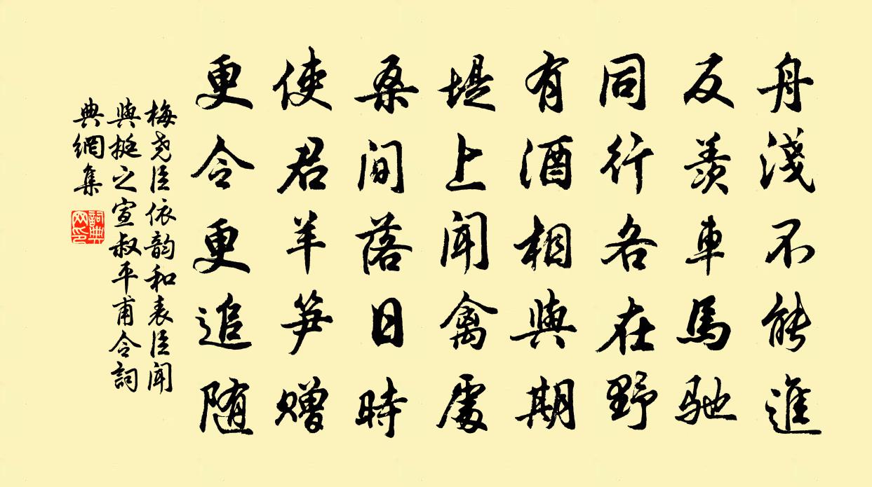 詩詞名句歷史字典書法欣賞書法字典國語詞典說文解字康熙字典古漢語字典標 題 作 者 詩 句 依韻和表臣聞與挺之宣叔平甫令作者:梅堯臣 朝代:宋代原文舟淺不能進,反羨車馬馳。同行各在野,有酒相與期。堤上聞禽處,桑間落日時。使君羊筍贈,更令更追隨。詩詞問答問:《依韻和表臣聞與挺之宣叔平甫令》的作者是誰?答:梅堯臣問:該詩寫於哪個朝代?答:宋代問:梅堯臣的名句有哪些?答:梅堯臣名句大全書法欣賞依韻和表臣聞與挺之宣叔平甫令書法作品詩詞推薦句蕭德藻〔宋代〕疾走建德國,乃為淵明先。五月十一日夜且半夢從大駕親征盡復漢唐故地陸游〔宋代〕五月十一日,夜且半,夢從大駕親征,盡復漢、唐故地。見城邑人物繁麗,云:西涼府也。喜甚,馬上作長句,未碧牡丹李致遠〔宋代〕破鏡重圓,分釵合鈿,重尋繡戶珠箔。說與從前,不是我情薄。都緣利役名牽,飄蓬無經,翻成輕負。別後情懷,答文與可以六言詩相示因道濟南事作十首蘇轍〔宋代〕相思欲見無路,滿秩西歸有時。及君鈴閣少事,飲我松醪滿卮。送李長吉之任東井無可〔唐代〕江盤棧轉虛,候吏拜行車。家世維城後,官資宰邑初。市饒黃犢賣,田躡白雲鉏。萬里千山路,何因欲寄書。蝶戀花史達祖〔宋代〕二月東風吹客袂。蘇小門前,楊柳如腰細。胡蝶識人遊冶地。舊曾來處花開未。幾夜湖山生夢寐。評泊尋芳,只怕擬和御製賞花釣魚王安石〔宋代〕雲暖蓬萊日,風酣太液春。水光承步輦,花氣入釣陳。伏檻留清蹕,傳觴屬從臣。霏香連釣餌,落葉亂游鱗。鎬飲青玉案(為外大父林下老人壽)侯置〔宋代〕年年寓屋稱觴處。陪彩綬、尊前舞。牢落瀟湘歸去未。蠟梅開遍,冰蟾圓後,夢斷靈溪路。長年厚福天分付。算四送李端盧綸〔唐代〕故關衰草遍,離別自堪悲。路出寒雲外,人歸暮雪時。少孤為客早,多難識君遲。掩淚空相向,風塵何處期。和端式上人十詠其九漁舟火梅堯臣〔宋代〕蘆洲一點明,知有漁人泊。江溟杳不分,誰方在高閣。是時孤雁去,應認光中落。頌古十六首釋道寧〔宋代〕火號更深喝道來,普門關棙一時開。圓通大師呵呵笑,不是峨嵋與五台。送張公儀宰安豐王安石〔宋代〕楚客來時雁為伴,歸期只待春冰泮。雁飛南北三兩回,回首湖山空夢亂。秘書一官聊 * ,安豐百里誰復嘆。揚鞭望岳曾豐〔宋代〕方岳分為五太宗,江南崒嵂祝融峰。中天自立如皇極,支嶠相歸若附庸。湖不多浮為所鎮,斗猶小退避其衡。太高次韻舜選大夫客舍中秋李彌遜〔宋代〕命駕星郎獨感時,興隨孤月到雲涯。當天飛鏡空撩恨,永夜明樓謾攪詩。後閣深藏桃葉女,前驅須趁菊花期。與君用山谷新詩徒拜嘉之句為韻賦五篇報尹直卿曾豐〔宋代〕自唐大曆後,二百年無詩。太史豫章公,崛起江之西。雖葩卒以正,況淡時乎奇。織錦良獨難,但要得錦機。通川客舍鄭谷〔唐代〕奔走失前計,淹留非本心。已難消永夜,況復聽秋霖。漸解巴兒語,誰憐越客吟?黃花徒滿手,白髮不勝簪。失調名佚名〔宋代〕盡啜情一飽,淚珠彈子重搵,背人睡也。劉向徐鈞〔宋代〕忠言歷歷總成虛,二十餘年列大夫。未死已知他日禍,此身幸不見新都。喚渡柴隨亨〔宋代〕溽風吹暑透人肌,我仆雲痡我馬疲。隔岸渡船呼不應,柳陰深處立多時。誓鬼碑文同〔宋代〕正一受天錄,腰垂神虎章。群魔獄幽隱,秘篆刻青蒼。故事駭前志,餘威驚大荒。誰能識奧訣,禹步學魁罡。名句推薦綠衣監使守宮門,一閉上陽多少春。白居易《上陽白髮人》 嚴妝欲罷囀黃鸝,飛上萬年枝。和凝《喜遷鶯·曉月墜》 君子不重則不威,學則不固。主忠信,無友不如己者,過,則勿憚改。孔子弟子《論語·學而篇》 卻將萬字平戎策,換得東家種樹書。辛棄疾《鷓鴣天·有客慨然談功名因追念少年時事戲作》 垂楊拂綠水,搖艷東風年。李白《折楊柳》 秋到邊城角聲哀,烽火照高台。陸游《秋波媚·七月十六日晚登高興亭望長安南山》 只匆匆眺遠,早覺閒愁掛喬木。史達祖《八歸·秋江帶雨》 情知已被山遮斷,頻倚闌乾不自由。辛棄疾《鷓鴣天·晚日寒鴉一片愁》 其交也以道,其接也以禮孟子《孟子·萬章章句下·第四節》 那裡有鬧紅塵香車寶馬?祗不過送黃昏古木寒鴉。王磐《古蟾宮·元宵》