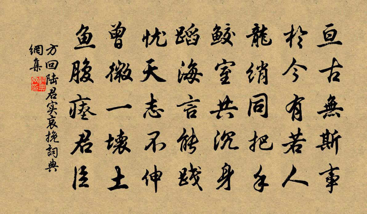 詩詞名句歷史字典書法欣賞書法字典國語詞典說文解字康熙字典古漢語字典標 題 作 者 詩 句 陸君實哀輓作者:方回 朝代:宋代陸君實哀輓原文亘古無斯事,於今有若人。龍綃同把手,鮫室共沉身。蹈海言能踐,憂天志不伸。曾微一壞土,魚腹瘞君臣。詩詞問答問:陸君實哀輓的作者是誰?答:方回問:陸君實哀輓寫於哪個朝代?答:宋代方回陸君實哀輓書法欣賞陸君實哀輓書法作品詩詞推薦春日偶題四首張耒〔宋代〕隔屋桃花暖斗妝,好風時有過牆香。滿園芳草無人種,何事春來特地長。梅兩絕洪咨夔〔宋代〕蒼枝老去蘚痕乾,喚起東風點暮寒。會得生生無盡意,雪花零亂月欄乾。近清明二首張耒〔宋代〕冉冉春向老,昏昏日復斜。鮮歡常止酒,不睡更烹茶。幡起煙中剎,雞鳴林外家。陳王鬥雞道,風柳不勝斜。和程機宜見貽曹勛〔宋代〕仆昔困犯難,戎陸日所虞。何能守一經,且話雄千夫。識公好兄弟,宛同周司徒。爽徹絕俗姿,秀髮連璧軀。駸駸曹通直以顏魯公墨跡題辭乞詩刊石韓維〔宋代〕臨池餘事得忠臣, * 林中不動身。見義捨生安為己,懷諼保位獨何人。英名在世長如日,遺像於今凜若神。一覽謝微之送鴨腳韓維〔宋代〕拔爾蒿萊際,微根僅自支。勞心勤一溉,拭目待三移。濃李慚同列,芳橙合併枝。絳囊如有惠,莫忘贈君時。七十翁五言十首方回〔宋代〕瘴癘金蠶毒,干戈鐵馬群。一生逃萬死,百歲僅三分。遑恤恆飢子,姑留自祭文。醺醺人笑我,方寸不醺醺。雙清閣詠雪黃伯固〔宋代〕箕伯宵聲怒,髽童早語咍。飛花先臘白,和氣覺春回。暗動雲都簇,先憑雨作媒。有情皆噤慘,無物不低催。闊灑臨江仙·一番荷芰生池沼尹鶚〔唐代〕一番荷芰生池沼,檻前風送馨香。昔年於此伴蕭娘。相偎佇立,牽惹敘衷腸。時逞笑容無限態,還如菡萏爭芳。別紹興祀大火十二首佚名〔宋代〕熒惑在天,惟火興合。翳神主火,純一不雜。作配熒惑,祀功則然。不腆之幣,於以告虔。對花呈幕中高駢〔唐代〕海棠初發去春枝,首唱曾題七字詩。今日能來花下飲,不辭頻把使頭旗。夏日宋伯仁〔宋代〕滿庭新綠午陰陰,風弄疏簾雨弄晴。窗下岸書眠一覺,不知人世有公卿。題高縉之劍室二首陳造〔宋代〕高郎櫑具映峨冠,沈燎茶鐺一室安。遊刃聖經千載計,即今長鋏未須彈。如夢令 戲和李易安張玉娘〔元代〕門外車馳馬驟。繡閣猶醺春酒。頓覺翠衾寒,人在枕邊如舊。知否。知否。何事黃花俱瘦。蟾蜍硯滴劉克莊〔宋代〕鑄出爬沙狀,兒童競撫摩。背如千歲者,腹柰一輪何。器蛟瓶罌小,功於幾硯多。所盛涓滴水,後世賴餘波。醉中感懷陸游〔宋代〕早歲君王記姓名,只今憔悴客邊城。青衫猶是鵷行舊,白髮新從劍外生。古戍旌旗秋慘澹,高城刁斗夜分明。壯心九月十六日自許昌回至京師胥平叔宋中道迓於梅堯臣〔宋代〕今日至國門,二子來迎我。適遇信陵冢,冢棘秋葉墮。翩翻隨人飛,拂馬右或左。謂此獨無情,亦與吾意可。舟過橫塘有感劉宰〔宋代〕平波淺草橫塘路,曾挽扁舟沖急雨。朱顏綠鬢氣催嵬,欲斥九關揮玉女。萬古功我付汗青,九天光寵生門戶。邯鄲丙子兵禍台溫為烈寧海雖經焚掠然耕者不廢丁舒岳祥〔宋代〕白兔秋毫綻,青蟲樹色並。興亡誰與吊,聊復快新晴。題九華山用太白聯句韻喻良能〔宋代〕千古池陽郡,九峰應最華。明珠絢晨露,麗綺粲晴霞。嶺頭過子晉,岩腹憩洪崖。謫仙無復見,空想夏侯家。名句推薦田家幾日閒,耕種從此起。韋應物《觀田家》 田舍清明日,家家出火遲。王建《寒食》 人去鞦韆閒掛月,馬停楊柳倦嘶風。吳文英《望江南·三月暮》 君子不器。孔子弟子《論語·為政篇》 謾道愁須殢酒,酒未醒、愁已先回秦觀《滿庭芳·碧水驚秋》 年年端午風兼雨,似為屈原陳昔冤。趙蕃《端午三首》 三月三日天氣新,長安水邊多麗人。杜甫《麗人行》 梧桐樹,三更雨,不道離情正苦。溫庭筠《更漏子·玉爐香》 食必常飽,然後求美;衣必常暖,然後求麗;居必常安,然後求樂劉向《說苑·反質》 先天下之憂而憂,後天下之樂而樂范仲淹《岳陽樓記》
