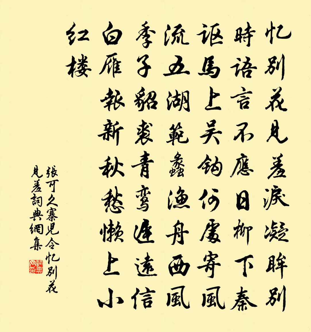 花見羞,淚凝眸,別時語言不應日。柳下秦謳,馬上吳鉤,何處寄風流?五湖范蠡漁舟,西風季子貂裘,青鸞遲遠信,白雁報新秋。愁,懶上小紅樓。