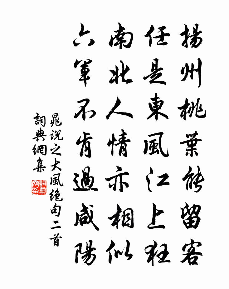 詩詞名句歷史字典書法欣賞書法字典國語詞典說文解字康熙字典古漢語字典標 題 作 者 詩 句 大風絕句二首作者:晁說之 朝代:宋代大風絕句二首原文揚州桃葉能留客,任是東風江上狂。南北人情亦相似,六軍不肯過鹹陽。詩詞問答問:大風絕句二首的作者是誰?答:晁說之問:大風絕句二首寫於哪個朝代?答:宋代晁說之大風絕句二首書法欣賞大風絕句二首書法作品詩詞推薦繫舟平水步陸游〔宋代〕舟尾參差野岸橫,屐聲穿市得閒行。雨昏茆店炊煙濕,人語蓬窗績火明。枝上橙香初受摘,擔頭菰脆正堪烹。漁樵泊舟龍游翁卷〔宋代〕未得橋開鎖,去船難自由。渚禽飛入竹,山葉下隨流。忽見秋風喜,還成早歲愁。臥聞舟子說,明日到衢州。詠柳王十朋〔宋代〕東君於此最鍾情,妝點村村入畫屏。向我無言眉自展,與人非故眼猶青。縈縈別恨絲千尺,斷送春光絮一亭。葉底江城子盧祖皋〔宋代〕畫樓簾幕卷新晴。掩銀屏。曉寒輕。墜粉飄香,日日喚愁生。暗數十年湖上路,能幾度,著娉婷。年華空自感飄零酬君貺和景仁對酒見寄三首司馬光〔宋代〕懶拙無時用,耆朋獨我思。乘閒同把酒,道舊各成詩。高義刮眼膜,清風生鬢絲。方交激衰俗,賤子實何為。四用韻十首楊公遠〔宋代〕六出新裁就,漫空密又稀。獨行無鶴氅,冷臥有牛衣。竹頂千鈞重,梅添十倍肥。品題輸謝女,柳絮逐風飛。寄李叔飛見振叔雲叔飛嘗見訪不遇王洋〔宋代〕難逢易別景如梭,戀戀思君可奈何。煩舍朱黃曲尋訪,偶穿城市真經過。簪朋恨阻陪吟嘯,文會知難聽琢磨。何處書事三絕范成大〔宋代〕奴婢請淘酒米,園丁催算花錢。如許日生公事,誰雲窮巷蕭然。游樊氏阡分韻得事字王灼〔宋代〕山深少車轍,雨餘多空翠。不知窮秋中,草木乃爾媚。隱君一抔土,諸子幾掬淚。盛年喜邁種,末路等幽閟。村酒句孫何〔宋代〕飛泉落翠巘,爽籟生寒空。清平樂李之儀〔宋代〕西江霜後,萬點暄晴晝。璀璨寄來光欲溜。正值文君病酒。畫屏斜倚窗紗。睡痕猶帶朝霞。為問清香絕韻,何如解滿庭芳(對景)趙長卿〔宋代〕紅藕洲塘,黃葵庭院,渚風時動清颸。素紈輕颭,涼色爽征衣。一一光陰日月,關情處、前事難期。空凝想,臨鸞轡之柔矣詩佚名〔先秦〕馬之剛矣。轡之柔矣。馬亦不剛。轡亦不柔。志氣麃麃。取與不疑。縣齋秋懷程公許〔宋代〕學仙宗無為,學禪空萬緣。自昔抱奇志,師心為真傳。失腳墮世納,芘事幾充捐。惟有一念息,不受物慾牽。空花野翁堂佚名〔宋代〕朝市若山林,意適無遠近。結廬在城郭,茅竹懷遠韻。漢吏貴無華,魯禮從先進。哭同舍崔員外韋莊〔唐代〕卻到同游地,三年一電光。池塘春草在,風燭故人亡。祭罷泉聲急,齋余磬韻長。碧天應有恨,斜日吊松篁。游龍門詩十二首菩提院望雒亭韓維〔宋代〕茲亭何岧嶢,下瞰伊與洛。惟昔定鼎地,絕雲飛觀閣。姬 * 在哉,氣象空回薄。石門岩上宿謝靈運〔南北朝〕朝搴苑中蘭,畏彼霜下歇。暝還雲際宿,弄此石上月。鳥鳴識夜棲,木落知風發。異音同至聽,殊響俱清越。妙物句李白〔唐代〕借問單樓與同穴,可能銀漢勝重泉。 故經略華文趙郎中崇憲挽章三首曹彥約〔宋代〕出處權輕重,幾微見老成。我官渾漫浪,公道要分明。忠定名先正,奸諛魄自驚。翻思元佑事,千古欠哀榮。名句推薦河邊獨自看星宿,夜織天絲難接續。王建《七夕曲》 水晶簾不下,雲母屏開,冷浸佳人淡脂粉。晁補之《洞仙歌·泗州中秋作》 誠既勇兮又以武,終剛強兮不可凌。屈原《國殤》 行出於己,名生於人。佚名《逸周書·卷六·諡法解》 老去逢春如病酒,唯有,茶甌香篆小簾櫳。辛棄疾《定風波·暮春漫興》 試上吳門窺郡郭,清明幾處有新煙。張繼《閭門即事》 青衫匹馬萬人呼,幕府當年急急符。辛棄疾《送湖南部曲》 夜深知雪重,時聞折竹聲。白居易《夜雪》 和氣吹綠野,梅雨灑芳田。李世民《詠雨》 山城過雨百花盡,榕葉滿庭鶯亂啼。柳宗元《柳州二月榕葉落盡偶題》