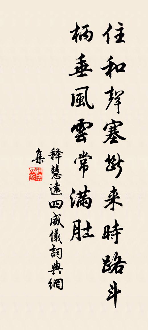 詩詞名句歷史字典書法欣賞書法字典國語詞典說文解字康熙字典古漢語字典標 題 作 者 詩 句 四威儀作者:釋慧遠 朝代:宋代四威儀原文住,和聲塞斷來時路。斗柄垂,風雲常滿肚。詩詞問答問:四威儀的作者是誰?答:釋慧遠問:四威儀寫於哪個朝代?答:宋代釋慧遠四威儀書法欣賞四威儀書法作品詩詞推薦鴛鴦湖棹歌 之二十五朱彝尊〔清代〕學繡女兒行水潯,遙看三塔小如針。並頭菡萏雙飛翼,記取挑絲色淺深。宋著作寄鳳茶梅堯臣〔宋代〕春雷未出地,南土物尚凍。呼噪助發生,萌穎強抽{上艹下共}。團為蒼玉璧,隱起雙飛鳳。獨應近臣頒,豈得常過盧北山陳藻〔宋代〕西成課罷赴群居,中路誰家倦憩予。恰見主人方早起,檐前觀我所為書。宰嚭王安石〔宋代〕謀臣本自系安危,賤妾何能作禍基。但願君王誅宰嚭,不愁宮裡有西施。烏夜啼佚名〔宋代〕洗淨鉛華污,玉顏自發輕紅。無言雪月黃昏後,別是個丰容。骨瘦難禁消瘦,香寒不並芳穠。與君高卻看花眼,紅和鄭康道探梅十絕句李洪〔宋代〕石腸底事斗清新,賦就摛華萬象春。誰知袖手苦吟客,中有築岩和鼎人。書嘆陸游〔宋代〕早得虛名翰墨林,謝歸忽已歲時侵。春郊射雉朝盤馬,秋院焚香夜弄琴。病酒閉門常兀兀,喔詩袖手久愔愔。浮沉鳳棲梧/蝶戀花杜安世〔宋代〕閒上江樓初雨過。滿袖清風,微散誰知我。蓮臉佳人顏未破。沙洲兩兩鴛鴦臥。時有漁歌相應和。疊秀危橫,黛撥窗黑陸游〔宋代〕風雨窗常黑,衰翁罷讀書。縱橫慚七略,廢惰失三餘。宴坐工夫熟,多聞習氣除。韓公未解此,誤誚腹空虛。洛陽易士達〔宋代〕季龍方始是童時,視志觀聲已嘆奇。嘯倚上都門外者,如何夷甫卻先知。賀監湖上樓鑰〔宋代〕萬頃平湖一葦杭,此歸喜似賀知章。上恩賜與西湖曲,遂老吾家歸照堂。秋雨益涼寫興陸游〔宋代〕秋氣蕭蕭暑已歸,晚雲更送雨霏微。床收珍簟敷菅席,笥疊纖絺換熟衣。遣醉縱橫馳筆陣,乘閒談笑解棋圍。出門山行後觀及通鑑五代之際成敗得喪廢興之跡因衛涇〔宋代〕溪山適興且閒行,綠蘚蒼苔任點裳。看鏡已侵雙鬢碧,憂時每覺寸心傷。馳名擾擾終安用,浩飲陶陶計亦長。千古為圃張舜民〔宋代〕前人厭膏粱,志欲服賤事。若論區別功,為圃亦不易。次韻答陳仲思鄧深〔宋代〕彤雲凍合晚來風,百里溪山雪色同。李棨那能說詩興,嗣宗端復嘆途窮。夜述張鎡〔宋代〕客去情宜獨,宵長睡未忺。露多應冒砌,香重欲蒸簾。較利真誰得,耽書肯自嫌。爐存金粟火,煨蕷不須添。轉調二郎神·悶來彈鵲徐伸〔宋代〕悶來彈鵲,又攪碎、一簾花影。漫試著春衫,還思縴手,熏徹金猊燼冷。動是愁端如何向,但怪得、新來多病。嗟雜詠八首上禮部李侍郎古劍劉長卿〔唐代〕龍泉閒古匣,苔蘚淪此地。何意久藏鋒,翻令世人棄。鐵衣今正澀,寶刃猶可試。倘遇拂拭恩,應知剸犀利。雲山小景釋智愚〔宋代〕渺渺晴煙薄,蒼蒼古樹昏。天涯殊未足,對此暗消魂。水梔張鎡〔宋代〕汲水埋盆便當池,水梔花旺雪盈枝。江湖萬里何曾遠,祗在先生托興時。名句推薦花光濃爛柳輕明,酌酒花前送我行。歐陽修《別滁》 名無細而不聞,行無隱而不彰。劉向《列女傳·節義傳·周主忠妾》 一種相思,兩處閒愁。李清照《一剪梅·紅藕香殘玉簟秋》 中人以上,可以語上也;中人以下,不可以語上也。孔子弟子《論語·雍也篇》 君子進德修業。忠信所以進德也。修辭立其誠,所以居業也。佚名《易傳·文言傳·乾文言》 始知鎖向金籠聽,不及林間自在啼。歐陽修《畫眉鳥》 況是清明好天氣,不妨游衍莫忘歸。程顥《郊行即事》 清愁詩酒少,寒食雨風多。張鎡《寒食》 世事一場大夢,人生幾度秋涼?蘇軾《西江月·世事一場大夢》 手如柔荑,膚如凝脂佚名《碩人》