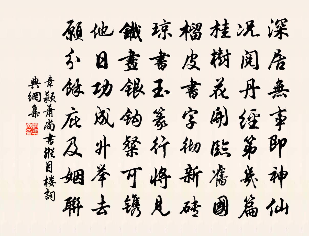 詩詞名句歷史字典書法欣賞書法字典國語詞典說文解字康熙字典古漢語字典標 題 作 者 詩 句 蕭尚書縱目樓作者:章潁 朝代:宋代蕭尚書縱目樓原文深居無事即神仙,況閱丹經第幾篇。桂樹花開臨舊國,榴皮書字徹新磚。瓊書玉篆行將見,鐵畫銀鉤粲可鐫。他日功成升舉去,願分余庇及姻聯。詩詞問答問:蕭尚書縱目樓的作者是誰?答:章潁問:蕭尚書縱目樓寫於哪個朝代?答:宋代章潁蕭尚書縱目樓書法欣賞蕭尚書縱目樓書法作品詩詞推薦讀天寶諸公事王遂〔宋代〕當時群枉誤朝廷,血染長安草木腥。四罪不誅三宅去,依前肝腦是生靈。合雲寺書事三首張載〔宋代〕夾屋青松長數圍,午見搖影舞僛僛。幽禽葉度鳴相應,時引殘聲過別枝。寄維陽許待制梅堯臣〔宋代〕當時永叔在楊州,中秋待月後池頭。約公準擬與我敵,是夜二雄利矛。我時小卻避其銳,風愁雨怛常娥羞。主人持陸提刑輓詞樓鑰〔宋代〕數馬謙恭甚,揮犀色笑溫。風流士龍裔,文采左丞孫。晚幸成三徑,身胡遽九原。素欽仁者勇,大獄竟平反。柳梢青(壽薛尚書)程珌〔宋代〕官已尚書,人猶寒素,仙有名言。謂是若人,法當至貴,仍主修年。唐人四字鮮妍。堪照映、畫堂彩煙。更對新涼宮詞一百首岳珂〔宋代〕未央樓殿倚天開,東北偏高是月台。馳道都人渾慣識,星毬爭指大家來。發成都三首劉望之〔宋代〕落拓平生載酒行,如今憔悴鬢絲生。無金得買青樓笑,空負閒愁出錦城。中秋西江上黃公度〔宋代〕月色今宵萬里,笛聲何處孤舟。世事堪驚流水,鄉心不忍登樓。立木海上刻詩李贊華〔唐代〕小山壓大山,大山全無力。羞見故鄉人,從此投外國。段都尉別業竇庠〔唐代〕曾識將軍段匹磾,幾場花下醉如泥。春來欲問林園主,桃李無言鳥自啼。跨馬過練墟喜晴范成大〔宋代〕稻穗初乾怕雨時,晚來蒸暖欲霏微。西風若肯吹雲盡,不惜飄飄側帽歸。漫興 其四王冕〔元代〕四川聽雨化,三輔受風清。但得公行道,何勞苦用兵?關山無阻礙,淮甸漸清平。聞說招民義,銜哀事遠征。青黃二色二首賈似道〔宋代〕青黃二色翅項明,此等生來何處尋。初秋鬭到深秋後,百度交鋒百度贏。歲夜詠懷,兼寄思黯白居易〔唐代〕遍數故交親,何人得六旬。今年已入手,餘事豈關身。老自無多興,春應不揀人。陶窗與弘閣,風景一時新。短歌王貞白〔唐代〕物候來相續,新蟬送晚鶯。百年休倚賴,一夢甚分明。金鼎神仙隱,銅壺晝夜傾。不如早立德,萬古有其名。送許守吳芾〔宋代〕慣分符竹理疲民,來往賢星又兩春。語到江山端有助,化行風俗自還淳。我知既去思何武,人嘆無從借寇恂。別酒卜運算元·涼掛曉雲輕吳文英〔宋代〕涼掛曉雲輕,聲度西風小。井上梧桐應未知,一葉雲鬟裊。來雁帶書遲,別燕歸程早。頻探秋香開未開,恰似春來絕交衛宗武〔宋代〕北山有鳴號,不潔而嗤鳳。宜下絕交書,塤篪非伯仲。和皓文二絕林逋〔宋代〕李杜風騷少得朋,將壇高築竟誰登。林蘿寂寂湖山好,月下敲門只有僧。題扇二十四首曹勛〔宋代〕燕尾溪頭晚色分,蜂腰山斷日斜曛。半篙碧靜秋垂釣,一棹黃昏冷載雲。名句推薦珍重主人心,酒深情亦深。韋莊《菩薩蠻·勸君今夜須沈醉》 強國戰兵,霸國戰智,王國戰義,帝國戰德,皇國戰無為。王通《中說·卷五·問易篇》 行到水窮處,坐看雲起時。王維《終南別業 / 初至山中 / 入山寄城中故人》 山河破碎風飄絮,身世浮沉雨打萍。文天祥《過零丁洋》 高議而不可及,不若卑論之有功也。劉向《說苑·談叢》 漢口夕陽斜渡鳥,洞庭秋水遠連天。劉長卿《自夏口至鸚鵡洲夕望岳陽寄源中丞》 只匆匆眺遠,早覺閒愁掛喬木。史達祖《八歸·秋江帶雨》 夫妻者,非有骨肉之恩也。愛則親,不愛則疏。韓非及後人《韓非子·備內》 黃金燃桂盡,壯志逐年衰。孟浩然《秦中感秋寄遠上人 / 秦中寄遠上人》 守職而不廢,處義而不回。黃石公《素書·正道》