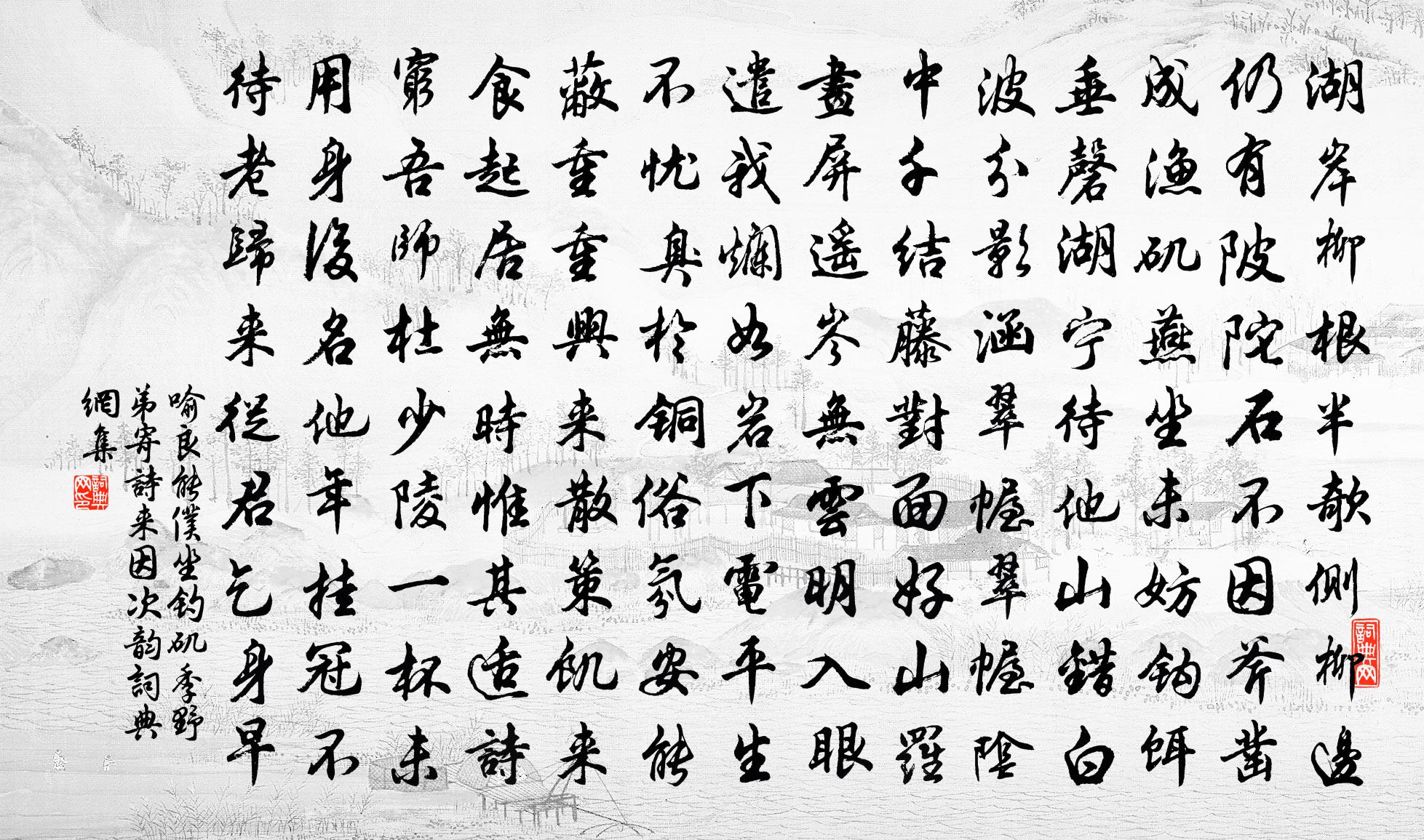 詩詞名句歷史字典書法欣賞書法字典國語詞典說文解字康熙字典古漢語字典標 題 作 者 詩 句 仆坐釣磯季野弟寄詩來因次韻作者:喻良能 朝代:宋代原文湖岸柳根半欹側,柳邊仍有陂陀石。不因斧鑿成漁磯,燕坐未妨鉤餌垂。磬湖寧待他山錯,白波分影涵翠幄。翠幄陰中千結藤,對面好山羅畫屏。遙岑無雲明入眼,遣我爛如岩下電。平生不憂臭於銅,俗氛安能蔽重重。興來散策飢來食,起居無時惟其適。詩窮吾師杜少陵,一杯未用身後名。他年掛冠不待老,歸來從君乞身早。詩詞問答問:《仆坐釣磯季野弟寄詩來因次韻》的作者是誰?答:喻良能問:該詩寫於哪個朝代?答:宋代書法欣賞仆坐釣磯季野弟寄詩來因次韻書法作品詩詞推薦依韻奉和判府經略司徒侍中上巳晚游九曲池詩強至〔宋代〕地勢盤紆巧鑿開,當年匠意亦多才。池名不逐唐宮廢,岸折猶如蜀阪來。水落有時逢舊石,草深無處覓遺台。行春陳子厚送韶鴨將以七絕因次其韻吳芾〔宋代〕朝朝兩兩下平沙,添得湖中景趣嘉。碧卵從今生育去,便堪裝點作漁家。黃世成輓辭楊萬里〔宋代〕文行高無對,功名莫動渠。寧登逸民傅,不著茂陵書。誰謂風流盡,猶疑信息疏。九京何所憾,玉樹滿庭除。賀新涼(梅)俞國寶〔宋代〕夢裡驂鸞鶴。覺三山不遠,依前海風吹落。浮到五湖煙月上,剛被梅香醉著。粲玉樹、輕明疏薄。十萬瓊琚天女隊居士看日靈照先化去圖贊釋紹曇〔宋代〕這豆娘兒,短頭折腳。弄弄鬼精魂,攙先一著。看日龐公監本獃,深深好與一坑埋。輓詞二首傅察〔宋代〕仙李遺風遠,高門積慶長。及身儀禁路,有子耀岩廊。不及千鍾樂,應留八葉昌。淒涼封蜜印,仿佛映金章。對菊齊己〔唐代〕無艷無妖別有香,栽多不為待重陽。莫嫌醒眼相看過,卻是真心愛淡黃。南陽道中作張九齡〔唐代〕登郢屬歲陰,及宛懵所適。復聞東漢主,遣此南都跡。佳氣藹厥初,霸圖紛在昔。茲邦稱貴近,與世嘗薰赫。遭遇過九成宮舊址二首游師雄〔宋代〕今古市朝已變,隋唐樓殿成空。惟有山頭明月,夜來猶照荒宮。贈曾谹父雪中歸王洋〔宋代〕趁得君侯爭佩時,平皋千晨散瑤卮。來時馬上寒休問,歸日蘭房夢已知。不獨吳娘夸舊事,重教江上聽新詩。鳳書子瞻繼和復答二首黃庭堅〔宋代〕置酒未容虛左,論詩時要指南。迎笑天香滿袖,喜公新赴朝參。送胡叔獻被召二首劉克莊〔宋代〕解瑟於今又再秋,弓旌所致總名流。積輕曾覆祁公鼎,偏重能翻涑水舟。袖裡纏文差快意,局傍觀弈尚私憂。信庵再寄宋祁〔宋代〕鈴下呼兒破錦鱗,新篇遺我故情親。鎩鸞遂有翻飛日,行葦應無踐履人。讒毒未銷須刮骨,上恩難報止沾巾。夫君舟中詠落景余清暉輕橈弄溪渚之句蓋孟浩然耶陸游〔宋代〕溪行已清秋,還舍尚殘暑。天公為解圍,簾櫳過疏雨。青蔬喜小摘,紅粒亦新杵。一飽坐北軒,苹花泣煙渚。寄懷畏知二首趙蕃〔宋代〕馳檄傳聞思一來,溪頭幾立望檣桅。黃花又作霜前槁,白酒空留秋後醅。早歲交遊今孰在,暮年林壑要深陪。世間即目(一作日)二首韓偓〔唐代〕萬古離懷憎物色,幾生愁緒溺風光。廢城沃土肥春草,野渡空船盪夕陽。倚道向人多脈脈,為情因酒易倀倀。宦途題撫州驛曾黯〔宋代〕一出都門五見春,衣冠空染九衢塵。山林有約誰留汝,猿鶴無言解怨人。租稅陸游〔宋代〕占星起飯犢,待月出輸租。遇嶮頻呼侶,扶轅數戒奴。畏飢懷餅餌,愁雪備薪樗。意象今誰識?當年賦兩都。留題黃山院楊億〔宋代〕禾黍離離一徑通,遊人攬轡即過從。趁齊綢緞鳥聞疏磬,出定高僧見偃松。夜靜翕燈凝古殿,雨餘岩溜迸前峰。昔玉樓春秦觀〔宋代〕參差簾影晨光動。露桃雨柳矜新寵。閒愁多仗酒驅除,春思不禁花從臾。倚樓聽徹單于弄。卻憶舊歡空有夢。當時名句推薦一畦春韭綠,十里稻花香。曹雪芹《菱荇鵝兒水》 落日胡塵未斷,西風塞馬空肥。辛棄疾《木蘭花慢·席上送張仲固帥興元》 不信妾腸斷,歸來看取明鏡前。李白《長相思三首》 海榴花發應相笑,無酒淵明亦獨醒貝瓊《已酉端午》 世業事黃老,妙年孤隱淪宋之問《始安秋日》 東風夜放花千樹。更吹落、星如雨。辛棄疾《青玉案·元夕》 暗教愁損蘭成,可憐夜夜關情張炎《清平樂·候蛩淒斷》 紛紛墜葉飄香砌。夜寂靜,寒聲碎。范仲淹《御街行·秋日懷舊》 試上吳門窺郡郭,清明幾處有新煙。張繼《閭門即事》 時不可留,眾不可逆。范曄《後漢書·本紀·光武帝紀上》