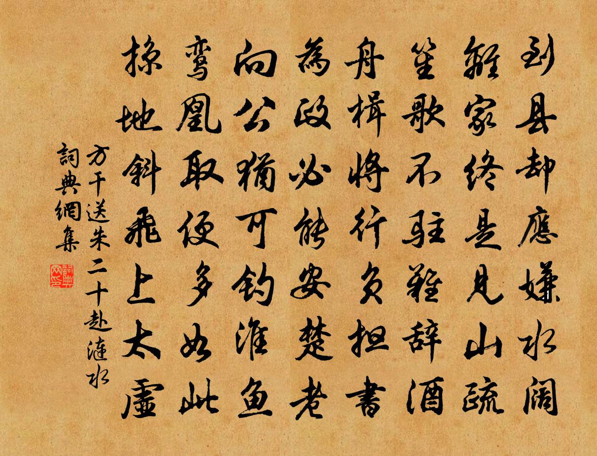 詩詞名句歷史字典書法欣賞書法字典國語詞典說文解字康熙字典古漢語字典標 題 作 者 詩 句 送朱二十赴漣水作者:方乾 朝代:唐代送朱二十赴漣水原文到縣卻應嫌水闊,離家終是見山疏。笙歌不駐難辭酒,舟楫將行負擔書。為政必能安楚老,向公猶可釣淮魚。鸞凰取便多如此,掠地斜飛上太虛。詩詞問答問:送朱二十赴漣水的作者是誰?答:方乾問:送朱二十赴漣水寫於哪個朝代?答:唐代問:送朱二十赴漣水是什麼體裁?答:七律方乾送朱二十赴漣水書法欣賞送朱二十赴漣水書法作品注釋全唐詩:卷650-22詩詞推薦季父習靜哀詩四首劉克莊〔宋代〕關洛源流遠,乾淳輩行尊。一檠常對卷,貳簋亦開樽。縞素幾空巷,玄纁不及門。異時遺逸傳,誰定訪丘園。和任漕韻吳芾〔宋代〕耆英持漕節,一稔百無憂。心計唯豐國,文移罕到州。澤流千嶂雨,效見萬家秋。早晚趨嚴召,雍容侍冕旒。唐明皇方回〔宋代〕突虎沖蛇獻荔枝,冰皴霧瘴覆全師。{左豐右動}妃有弟堪為相,叛將無君懵不知。嗣後已成靈武篡,舊臣空復曲遊仙篇翁卷〔宋代〕旭日升太虛,流光到萌芽。旁有五雲氣,煥爛含精華。所願服食之,躋身眇長霞。帶我清冷佩,飛我欻忽車。寧為白水橋斷碑張祁〔宋代〕出郭悠悠信馬蹄,荒煙衰草不勝悲。江南舊事無人記,時有龜趺載斷碑。朝回閱樂寄絕句權德輿〔唐代〕子城風暖百花初,樓上龜茲引導車。曲罷卿卿理騶馭,細君相望意何如。西園晚秋見寄宋祁〔宋代〕中園秋物曉,清玩日無窮。暝篠深留翠,寒花淺作紅。鶴鳴殘滴露,蜩咽已涼風。誰伴調絲管,心知憶戴崇。適安招游湯鎮不果赴陳起〔宋代〕湯鎮古祠宮,招邀及倦翁。輕裘乘曉月,駿馬逐東風。野色觀無分,春光病見攻。行將迎誕日,一瓣擬遙通。雜詩王令〔宋代〕關雎後之淑,棫樸君之明。兔罝尚好德,況及公與卿。所以彼行葦,敦然遂其生。誰能弦此歌,為我發古聲。薌林五十詠南埭楊萬里〔宋代〕高謝三公府,來耕五畝園。園中有何好,老子笑無言。醉筆呈尚長道楊萬里〔宋代〕晚風一雨生新漲,只送仙槎到天上。十年相別一相逢,和氣春風談笑中。如今耆舊晨星似,猶及先生說遺事。舌端改題萬安縣凝祥觀文天祥〔宋代〕古道松花空翠香,風前鬢影照滄浪。飛泉半壁朝雲濕,啼鳥澌滿山春日長。須信神仙元有國,不知蠻觸是何鄉。道洞霄宮林逋〔宋代〕大滌山相向,華陽路暗通。風霜唐碣久,草木漢祠空。劍石苔花碧,丹池水氣紅。幽人天柱側,茅屋灑松風。小集食藕極嫩楊萬里〔宋代〕比雪猶松在,無絲可得飄。輕拈愁欲碎,未嚼已先銷。淨庵居士求頌釋可湘〔宋代〕不書心字涴窗門,玉混泥沙體自分。萬慮頓忘諸穢息,碧天無滓水無痕。酬張二仲彝皇甫冉〔唐代〕吳洲見芳草,楚客動歸心。屈宋鄉山古,荊衡煙雨深。艱難十載別,羈旅四愁侵。澧月通沅水,湘雲入桂林。已看九日王勃〔唐代〕九日重陽節,開門有菊花。不知來送酒,若個是陶家。上許州呂相公嗣崧許康詩二首許康詩宋祁〔宋代〕公之相攸,孔樂於許。其原朊朊,其川于于。有芃禾麻,有京稷黍。藪焉麋麕,渚焉魴鱮。有李有桃,有柘有檀。谷中釋文珦〔宋代〕谷口松朱相和鳴,山蹊詰曲少人登。苦櫧一樹猿偷盡,懊殺庵居老病僧。奉和添酒中六詠酒龍皮日休〔唐代〕銅為蚴蟉鱗,鑄作鱙繆角。吐處百里雷,瀉時千丈壑。初疑潛苑囿,忽似拏寥廓。遂使銅雀台,香消野花落。名句推薦相逢意氣為君飲,系馬高樓垂柳邊。王維《少年行四首》 窣地春袍,嫩色宜相照。梅堯臣《蘇幕遮·草》 關河無限清愁,不堪臨鑒岳珂《祝英台近·北固亭》 元嘉草草,封狼居胥,贏得倉皇北顧。辛棄疾《永遇樂·京口北固亭懷古》 伯牙鼓琴,志在高山佚名《伯牙鼓琴/伯牙絕弦》 燕簾鶯戶,雲窗霧閣,酒醒啼鴉。張炎《朝中措·清明時節》 露從今夜白,月是故鄉明。杜甫《月夜憶舍弟》 眉睫才交,夢裡便不能張主;眼光落地,泉下又安得分明。陳繼儒《小窗幽記·集醒篇》 孤之有孔明,猶魚之有水也。陳壽《隆中對》 美人慵翦上元燈,彈淚倚瑤瑟。朱敦儒《好事近·春雨細如塵》