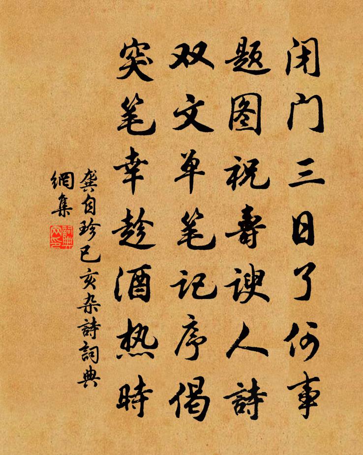 閉門三日了何事,題圖祝壽諛人詩。雙文單筆記序偈,突筆幸趁酒熱時。