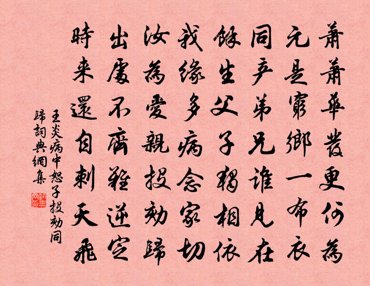 詩詞名句歷史字典書法欣賞書法字典國語詞典說文解字康熙字典古漢語字典標 題 作 者 詩 句 病中恕子投劾同歸作者:王炎 朝代:宋代病中恕子投劾同歸原文蕭蕭華發更何為,元是窮鄉一布衣。同產弟兄誰見在,餘生父子獨相依。我緣多病念家切,汝為愛親投劾歸。出處不齊難逆定,時來還自刺天飛。詩詞問答問:病中恕子投劾同歸的作者是誰?答:王炎問:病中恕子投劾同歸寫於哪個朝代?答:宋代王炎病中恕子投劾同歸書法欣賞病中恕子投劾同歸書法作品詩詞推薦黃嗣深尚書見訪曾幾〔宋代〕騎氣初占安至,履聲忽報公來。不亂空庭鳥雀,何妨滿席塵埃。待月久不至須臾破星露溪光發眾實歡呼席上次李彌遜〔宋代〕待月新亭與已慵,眼花空亂燭花紅。溪山路隔煙塵外,觴詠身疑夢瘕中。卻暑已煩瞋恚雨,掃雲鬚賴吉祥風。水光韓耕道交八絕句韻見寄因和答之曹彥約〔宋代〕立說招攜與殪戎,兩端蠻觸互論功。古來帝力通南北,山過焉支嶺度蔥。讌集宋祁〔宋代〕素節倐已宴,高風送浮涼。拂席進賓客,釃酒羅壺觴。黃鷄跖跖美,紫蟹螯螯香。莫矜來歡早,須念後戚長。奔川西湖葉茵〔宋代〕湘桃深處五陵家,堤柳陰中百寶車。多是問桃尋柳去,近來山下少梅花。八月十四夜月下聞秋聲仇遠〔宋代〕中秋才一宿,此夜已圓明。星斗何曾見,雲煙不敢生。黃花千萬粟,白髮兩三莖。愁聽東南角,奔騰風雨聲。述懷吳芾〔宋代〕我愛白樂天,千載共稱賢。行年七十五,奄忽遂溘先。我愛范忠宣,一代名德全。年齡甫至此,亦復成棄捐。二公口占示禪師王安石〔宋代〕去歲別南嶽,前年返泐潭。臨機一句子,今日遇同參。拈古十四首釋法薰〔宋代〕來風可辨,駟馬難追。若無後語,討甚大悲。贈頭陀師劉商〔唐代〕少壯從戎馬上飛,雪山童子未緇衣。秋山年長頭陀處,說我軍前射虎歸。過武夷陳淳〔宋代〕武夷山下幾回過,未暇於中賞一遭。獅鶴諸仙知我意,故將青靄淡遮羅。偈頌一百四十一首釋師範〔宋代〕這老禿,無面目。不具些子慈悲,卻有十分惡毒。喜亦不可近,怒尤不可觸。我昔被渠禁害,逼得頑蛇生足。以至送李寺丞宰藍田韓維〔宋代〕君誠岩壑徒,出宰亦山縣。尚喜終南峰,蒼翠不去眼。春風吹徵車,千里度灞滻。到日勝事繁,花光老秦甸。送菜徐秀才李新〔宋代〕黃精未有積雪,晚菘猶帶寒煙。雖辜主父九鼎,不減何郎萬錢。和劉明府宴縣前山亭錢起〔唐代〕城隅勞心處,雪後歲芳開。山映千花出,泉經萬井來。翔鸞欲下舞,上客且留杯。山居雜詩九十首曹勛〔宋代〕四大一和合,所以兆我命。及其有損增,遂複製我病。五年過縱心,四大失正定。新歲轉盼來,疾應改新證。折桂章首座近自雙泉來因作句與之釋正覺〔宋代〕家林隱臥一巢雲,厭作梁家庵底賓。折桂手舒寒觸月,銜珠眼合夢遊春。庭除不見雨華鳥,麋鹿能來呼穀神。五老謝人惠紫栗拄杖齊己〔唐代〕仙掌峰前得,何當此見遺。百年衰朽骨,六尺歲寒姿。雪外兼松憑,泉邊待月奇支。他時出山去,猶謝見相隨。享神辭陸壑〔宋代〕山兮如慕,水兮如訴,問故宮兮莽何許。有翼其宇,有百其堵,中冕旒兮冠佩以序。邦伯維主,酒醴維醹,我民兮江上送別寇準〔宋代〕浪疊春江遠樹微,落花風雨共淒淒。愁人此際腸須斷,況是登臨更送歸。名句推薦眼裡無點灰塵,方可讀書千卷;胸中沒些渣滓,才能處世一番。陳繼儒《小窗幽記·集靈篇》 瀚海闌乾百丈冰,愁雲慘澹萬里凝。岑參《白雪歌送武判官歸京》 自是人生長恨水長東。李煜《相見歡·林花謝了春紅》 後庭花一曲,幽怨不堪聽。劉禹錫《金陵懷古》 鬢髮已甘塵路白,菊花猶送塞垣黃。齊之鸞《九日登清水營城》 暗柳啼鴉,單衣佇立,小簾朱戶。周邦彥《瑣窗寒·寒食》 欲系青春,少住春還去。朱淑真《蝶戀花·送春》 佳節清明桃李笑,野田荒冢只生愁。黃庭堅《清明》 治則衍及百姓,亂則不足及王公。荀子《荀子·君道》 輕肌弱骨散幽葩,更將金蕊泛流霞。蘇軾《趙昌寒菊》