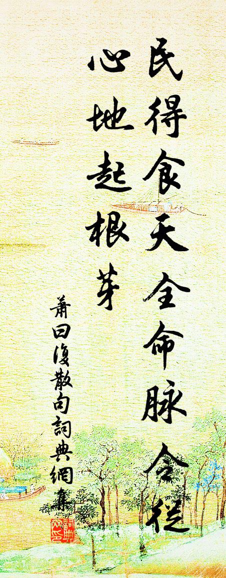 詩詞名句歷史字典書法欣賞書法字典國語詞典說文解字康熙字典古漢語字典標 題 作 者 詩 句 句作者:蕭曰復 朝代:宋代句原文民得食天全命脈,令從心地起根芽。詩詞問答問:句的作者是誰?答:蕭曰復問:句寫於哪個朝代?答:宋代蕭曰複句書法欣賞句書法作品詩詞推薦海邊僧寺絕筆諸葛夢宇〔宋代〕孤臣垂死愈心傷,捲土重來豈望還。萬裏海濤鳴戰鼓,千年靈氣結浮山。魚龍亦解齊殊類,犬馬誰教到此間。留得清平樂程垓〔宋代〕綠深紅少。柳外橫橋小。雙燕不知幽夢好。驚起碧窗春曉。起來瞢多時。玉台金鏡慵移。多少春愁未說,卻來閒青雀歌裴迪〔唐代〕動息自適性,不曾妄與燕雀群。幸忝鵷鸞早相識,何時提攜致青雲。滿江紅盧炳〔宋代〕罨畫池亭,對十萬、盈盈粉面。依翠蓋、臨風一曲,霓裳舞遍。亭上人如蓬島客,坐中別有飛瓊伴。占世間、風月泊上虞縣陸游〔宋代〕鄞江久不到,乘興偶東遊。漲水崩沙岸,歸雲抱縣樓。吟餘聲混混,梳罷發颼颼。喜見時平象,新絲入市稠。早離永明晚抵江華道中江朝議〔宋代〕舍車跨馬喜新晴,倍風旌旗照眼明。顧我未能流美化,邦人何事喜相迎。雨中伯恭至湖上韓元吉〔宋代〕莫嫌鞭馬踏春泥,茶鼎詩整偶共攜。山色雨深看更好,湖光煙接望遠迷。連天花絮飛將盡,夾道蒲荷長欲齊。官事上已同沈虞卿、尤延之、王順伯、林景思游湖楊萬里〔宋代〕總宜亭子小如拳,著得西湖不見痕。湖上軒牖無不好,何須抵死揀名園。頌十玄談心印釋印肅〔宋代〕呼為心印早虛言,滿目真如自現交。十二時中無不應,金鶯頻道柳含煙。以古銅壺送王觀復黃庭堅〔宋代〕隨俗易汩沒,從公常糾紛。我觀王隆化,入蕕不改薰。未見蛇起陸,已看豹成文。愛君古人風,古壺投贈君。酌酒豫庵三端詩鵷竹岳珂〔宋代〕雷雨新頭角,煙霄舊羽翰。聯根方拔象,接翼更停鸞。紫錦雙翻籜,青銅並倚竿。摩穹端有待,聯復護雕闌。寶閣尚書凌公輓詩虞儔〔宋代〕新學輕餘子,忠懷策萬言。治安猶涕泣,師友故淵源。日曳尚書履,風生刺史轓。漢庭誰第一,殊未遜公孫。以詩送宣賜進奉紅綃封龍字茶與璉禪師丁謂〔宋代〕密緘龍焙火前春,翠字紅綃熨眼新。品味至高誰合得,雙林樹下上乘人。山居偶成釋智圓〔宋代〕世上喧譁耳不聞,煙蘿深處絕人群。歲寒弗改憐高柏,舒捲無機愛白雲。閒採藥苗醫故疾,旋編紅葉寫新文。有人呈楊謹仲監廟三首趙蕃〔宋代〕劉孔何如士,歐蘇敢並行。江山故好在,人士熟知名。道遇澄清使,為言月旦評。經過才一見,已似慰平生。和顏長官百詠城市朱繼芳〔宋代〕村翁生長在柴門,身有丁男犢有孫。為了官租才出市,歸家誇說與鄉村。句釋曉瑩〔宋代〕二月春方好。貸錢買牡丹屏方岳〔宋代〕作券西家貸子錢,略容書卷識春妍。杜陵婦忍長貧面,夸與樵青亦自賢。題常州獨孤檜翁卷〔宋代〕此檜何時種,相傳是獨孤。年深成古物,名重入州圖。老節堅難蠹,皴皮裂似枯。托根列帝廟,應不慮樵夫。明日大夫曾豐〔宋代〕明日大夫,何嘉貺兮。老火亢兮,白露降兮。公生與俱,凝骨相兮。寢藹藹然,朝之望兮。名句推薦臣聞君子樂得其志,小人樂得其事。姜子牙《六韜·文韜·文師》 道不遠人。人之為道而遠人,不可以為道。子思《中庸·第十三章》 遠路應悲春晼晚,殘霄猶得夢依稀。李商隱《春雨》 可憐青冢已蕪沒,尚有哀弦留至今。王安石《明妃曲二首》 好風憑藉力,送我上青雲。曹雪芹《臨江仙·柳絮》 賈傅松醪酒,秋來美更香。杜牧《送薛種游湖南》 敗荷零落,衰楊掩映,岸邊兩兩三三,浣沙游女。柳永《夜半樂·凍雲黯淡天氣》 江山易改,稟性難移。馮夢龍《醒世恆言·卷三十五》 丈夫貧賤應未足,今日相逢無酒錢。高適《別董大二首》 昔孟母,擇鄰處。子不學,斷機杼。王應麟《三字經·全文》