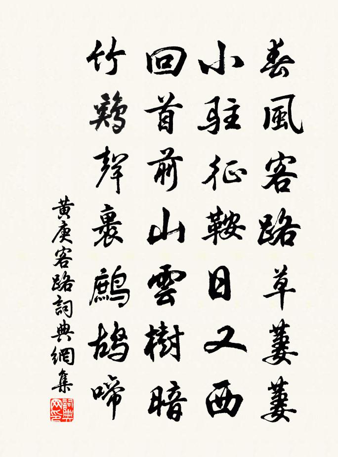 詩詞名句歷史字典書法欣賞書法字典國語詞典說文解字康熙字典古漢語字典標 題 作 者 詩 句 客路作者:黃庚 朝代:宋代客路原文春風客路草萋萋,小駐征鞍日又西。回首前山雲樹暗,竹雞聲裹鷓鴣啼。詩詞問答問:客路的作者是誰?答:黃庚問:客路寫於哪個朝代?答:宋代黃庚客路書法欣賞客路書法作品詩詞推薦題王之朝所惠扇陳著〔宋代〕八十三歲衰翁,執熱也要清風。此涼來自何處,來自羲之手中。潘丞相舊宅徐夤〔唐代〕綠樹垂枝蔭四鄰,春風還似舊時春。年年燕是雕梁主,處處花隨落月塵。七貴竟為長逝客,五侯尋作不歸人。秋槐牡丹陳孔碩〔宋代〕既全國色與天香,底用人間紫與黃。卻喜騷人稱第一,至今喚作百花王。示眾釋可湘〔宋代〕別傳一脈漲曹溪,萬法都來和不齊。葉落歸根至今日,江南猶有鷓鴣啼。贈白雲顧逢〔宋代〕 * 穿幾個,性地忽然開。禪向靜中透,詩從悟處來。三椽青嶂里,一榻白雲堆。自說為僧後,浮生百念灰。宋史館檢閱所性先生時天彝父挽些王柏〔宋代〕大專槃物兮剛柔盪摩,五行雜糅兮顓蒙孔多。陶一氣之奇佹兮奄宇宙之幾何,握異采之陸離兮蹇儃佪而逶迤。襲正聞應德茂先離裳溪有作戴表元〔宋代〕落日蘆花雨,行人谷樹村。青山詩問路,紅葉自知門。苜蓿窮詩味,芭蕉醉墨痕。端知棄城市,經席許頻溫。郊行寄杜位岑參〔唐代〕崷崒空城煙,淒清寒山景。秋風引歸夢,昨夜到汝潁。近寺聞鐘聲,映陂見樹影。所思何由見,東北徒引領。鷓鴣天佚名〔宋代〕徹曉華燈照鳳城。猶嗔宮漏促天明。九重天上聞花氣,五色雲中應笑聲。頻報導,奏河清。萬民和樂見人情。年豐頌古三首釋嗣宗〔宋代〕粥飯隨時養病軀,本無迷悟可關渠。無端擊著庵前竹,直至如今在半途。減字木蘭花(留賈耘老)毛滂〔宋代〕曾教風月。催促花邊煙棹發。不管花開。月白風清始肯來。既來且住。風月閒尋秋好處。收取淒清。暖日闌乾助夢過淨名院觸目都似曾到問訊乃非也戲題絕句李薰〔宋代〕人門彷佛記曾來,問訊山僧始此回。卻覓舊遊無是處,只應形似遣人猜。世間形似巧迷人,總是安排底處真。縱復三教陳藻〔宋代〕枉費工夫是學仙,聖門妙處與僧傳。百年合死千年贅,一物都無萬物全。幽居陸游〔宋代〕老子堪咍老轉痴,幽居喜及早寒時。芋魁加糝香出屋,菰首芼羹甘若飴。顛倒朱黃思誤字,縱橫黑白戲拈棋。此懷重宿城頭驛陳杰〔宋代〕天地秋聲早,山河夜色深。市荒余冷銼,村迥落孤砧。紙帳三生夢, * 萬古心。漫漫獨無旦,微步數看參。九日詠懷簡仁實李洪〔宋代〕登臨勝踐負幽期,山色溪光日益奇。那得賜茱來北闕,漫從採菊向東籬。升虛楚望猶能賦,振履商謳只自悲。可是游凌雲峰答陳同年韻孫應時〔宋代〕行行欲盡劍南州,滿意凌雲九頂游。樽俎樓台一長嘯,江山風月幾清秋。古人勝賞分明在,灘水悲鳴日夜流。萬里讀本朝史有感十首項安世〔宋代〕若訥希文受責均,前賢初豈有冤親。暮年穎上還惆悵,引得無窮射羿人。春望詩庾信〔南北朝〕春望上春台。春窗四面開。落花何假拂。風吹會並來。已亥雜詩 113龔自珍〔清代〕公子有德宜置諸,有德公子毋忘諸。我方乞忽誦此,箴銘磊落肝脾虛。名句推薦假令風歇時下來,猶能簸卻滄溟水李白《上李邕》 一叫一迴腸一斷,三春三月憶三巴。李白《宣城見杜鵑花 / 子規》 生長富貴叢中的,嗜欲如猛火、權勢似烈焰。洪應明《菜根譚·概論》 日用必須簡省,杜奢端,即以昭儉德。王永彬《圍爐夜話·第八三則》 流水便隨春遠,行雲終與誰同。晏幾道《臨江仙·鬥草階前初見》 轅門菊酒生豪興,雁塞風雲愜壯遊。王瓊《九日登花馬池城》 報國無門空自怨,濟時有策從誰吐。吳潛《滿江紅·送李御帶珙》 情同而親合,親合而事生之。姜子牙《六韜·文韜·文師》 父兮生我,母兮鞠我。佚名《蓼莪》 不辭山路遠,踏雪也相過。張九齡《答陸澧》