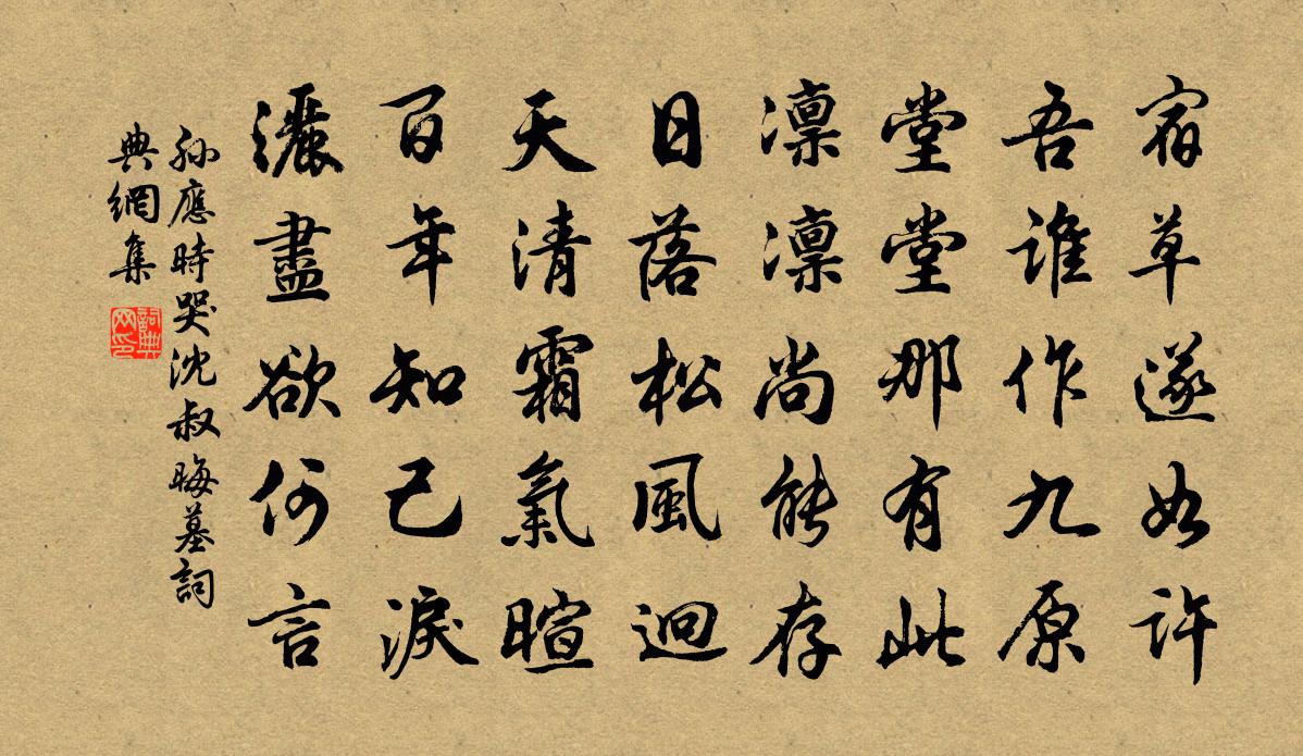 詩詞名句歷史字典書法欣賞書法字典國語詞典說文解字康熙字典古漢語字典標 題 作 者 詩 句 哭沈叔晦墓作者:孫應時 朝代:宋代哭沈叔晦墓原文宿草遂如許,吾誰作九原。堂堂那有此,凜凜尚能存。日落松風迥,天清霜氣暄。百年知己淚,灑盡欲何言。詩詞問答問:哭沈叔晦墓的作者是誰?答:孫應時問:哭沈叔晦墓寫於哪個朝代?答:宋代孫應時哭沈叔晦墓書法欣賞哭沈叔晦墓書法作品詩詞推薦讀樓獲傅劉宰〔宋代〕劉氏難令呂氏安,酈生大義炳如丹。君卿賣友阿王莽,死去何顏見呂寬。秋夜紀懷陸游〔宋代〕瞿曇起西域,老氏奮中州。談理一家說,蠹民千載憂。橫流當有自,獨立豈相仇。垂世詩書在,兒童勿外求。喜見單君范八句陳著〔宋代〕世衰交道薄,相好獨金蘭。見面驚雙瘦,知心話百難。老饕蔥本暖,清坐杏花寒。明日休輕別,流年水赴灘。望江東·江水西頭隔煙樹黃庭堅〔宋代〕江水西頭隔煙樹。望不見、江東路。思量只有夢來去。更不怕、江闌住。燈前寫了書無數。算沒個、人傳與。直饒句吳己正〔宋代〕舉頭不忍看王十,回首猶欣見李三。歲在鍛丑年始七十年正旦日書事富弼〔宋代〕今年始是氣骸年,我向年前已掛冠。都為君王斷久疾,肯教先去養衰殘。滿庭芳佚名〔宋代〕北斗將移,西風已半,蓂餘一葉階前。左弧呈瑞,非霧亦非煙。見說長庚入夢,當年此際產英賢。誰知得,平生高青玉案·征鴻過盡秋容石孝友〔宋代〕征鴻過盡秋容謝。卷離恨、還東下。剪剪霜風落平野。溪山掩映,水煙搖曳,幾簇漁樵舍。芙蓉城裡人如畫。春伴送黃同甫周弼〔宋代〕人生各有安,出易欲歸難。古道春泥重,孤城暮雪寒。酒鋒精似將,詩業遠於官。野谷如堪飽,從君借鶡冠。和韓侍郎題楊舍人林池見寄白居易〔唐代〕渠水暗流春凍解,風吹日炙不成凝。鳳池冷暖君諳在,二月因何更有冰?贈廣上人釋智圓〔宋代〕魏闕林泉趣本同,隨緣來往興何窮。閒宵訪我茆堂宿,湖水無波月照空。木蘭花慢(中秋新河)魏了翁〔宋代〕正秋陰盛處,忽盪起、一冰輪。甚漢魏從前,才人勝士,斷簡殘文。都無一詞賞玩,更擬將、美色似非倫。此意誰醉花陰王庭珪〔宋代〕月娥昨夜江頭過。把素衫揉破。冷逐曉雲歸,留與東風,吹作千千朵。雲殘香瘦春猶可。玉笛愁無那。倚著畫樓人亮禪人持缽求頌釋正覺〔宋代〕家林一錫飛,炊處青煙微。嚴默起禪板,虛通轉化機。溪寒秋染色,月冷夜流輝。莫學西山亮,此行宜早歸。秋分一首蘇籀〔宋代〕礎濕嵐昏近海多,劍霜清刮手親磨。輪囷馬棧非難整,索漠牛衣且勿呵。好住延陵皋澤去,強同溱洧濟人過。坐令偈頌一百零一首釋慧性〔宋代〕無語中有語,名曰死句。有語中無語,名曰活句。可謂剜肉作瘡,皮穿骨露。舉不顧,即差牙,閃電光中走鳥兔。送僧歸護國寺丁謂〔宋代〕少室久傳西祖印,京華時不等閒尋。黃樞慕道飛書密,紫禁知名示寵深。一法遍垂春雨潤,群生皆悟海潮音。南歸句晏殊〔宋代〕震邸陪經席,辰階總化鈞。再次贈張學錄韻十詩陳造〔宋代〕閱世有順逆,飛埃噎空虛。曠懷略外物,曲士乃拘墟。春光好葛立方〔宋代〕去年曾壽生朝。正菊黃、初舒翠翹。今歲雕堂重預宴,梨雪香飄。明年應傍丹霄。看寶胯、重重在腰。鵲尾吹香籠名句推薦啜苦咽甘,茶也。陸羽《茶經·五之煮》 學之染人,甚於丹青。房玄齡《晉書·列傳·第五十二章》 清秋幕府井梧寒,獨宿江城蠟炬殘。杜甫《宿府》 波面澄霞,蘭艇采香去。高觀國《祝英台近·荷花》 未有知而不行者。王陽明《傳習錄·卷上·徐愛錄》 平生不下淚,於此泣無窮。李白《江夏別宋之悌》 新秋逢閏,鵲橋重駕,兩度人間乞巧。顧太清《鵲橋仙·雲林矚題閏七夕聯吟圖》 妝罷低聲問夫婿,畫眉深淺入時無。朱慶餘《近試上張籍水部 / 近試上張水部 / 閨意獻張水部》 愁與西風應有約,年年同赴清秋。史達祖《臨江仙·閨思》 恩威同施,才德相較,苟無功,得無天耶?來俊臣《羅織經·治下卷第三》