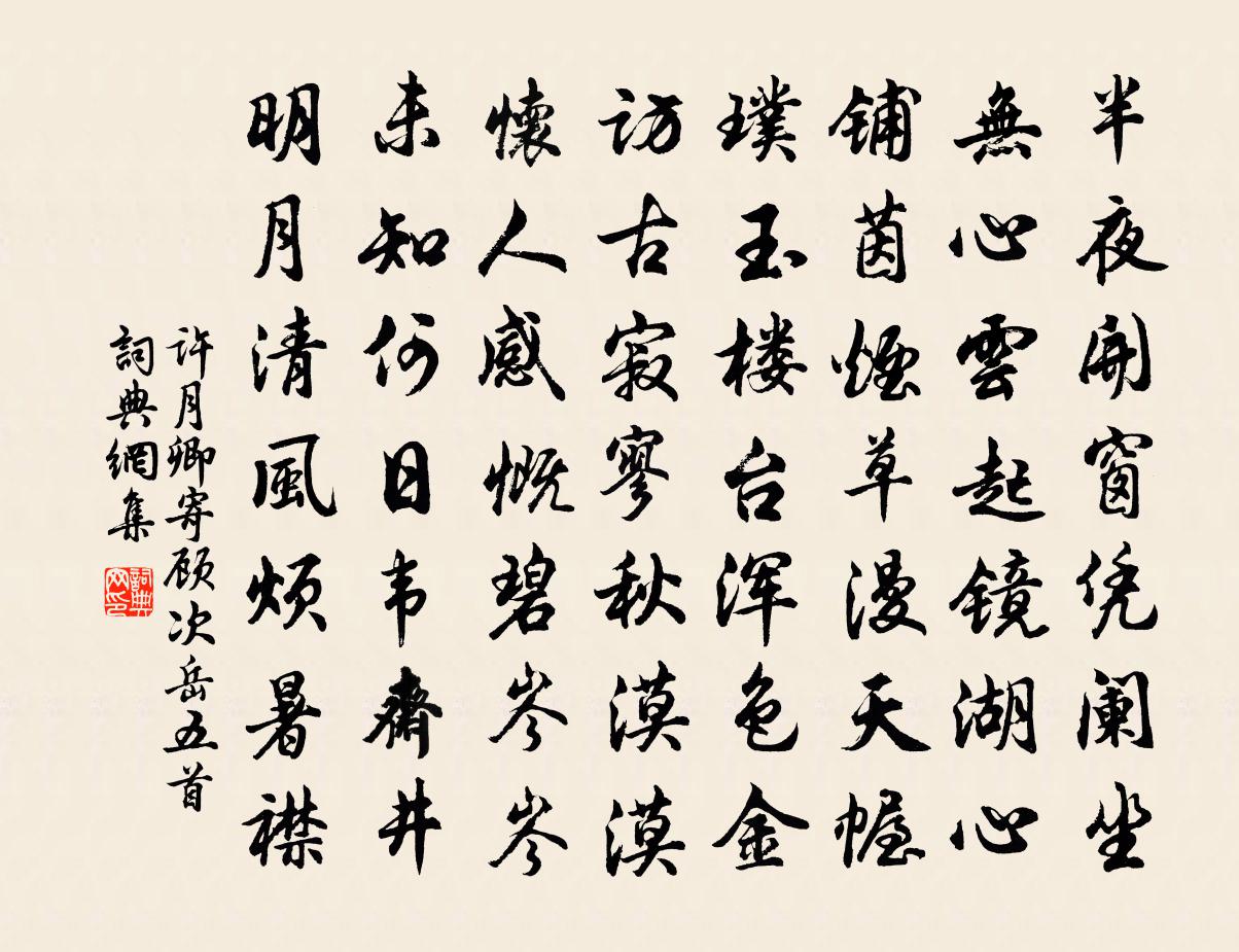 詩詞名句歷史字典書法欣賞書法字典國語詞典說文解字康熙字典古漢語字典標 題 作 者 詩 句 寄顧次岳五首作者:許月卿 朝代:宋代寄顧次岳五首原文半夜開窗憑闌坐,無心雲起鏡湖心。鋪茵菸草漫天幄,璞玉樓台渾色金。訪古寂寥秋漠漠,懷人感慨碧岑岑。未知何日韋齋井,明月清風煩暑襟。詩詞問答問:寄顧次岳五首的作者是誰?答:許月卿問:寄顧次岳五首寫於哪個朝代?答:宋代許月卿寄顧次岳五首書法欣賞寄顧次岳五首書法作品詩詞推薦即覺庵子中居士來訪妙峰之西既去作六言五首釋正覺〔宋代〕歸來三徑春草,夢臥一團雨蓑。白髮暗移玉燭,昏窗淨洗金波。少年行其一李白〔唐代〕擊築飲美酒,劍歌易水湄。經過燕太子,結托并州兒。少年負壯氣,奮烈自有時。因擊魯勾踐,爭博勿相欺。桐花歐陽修〔宋代〕猗猗井上桐,花葉何蓑蓑。下蔭百尺泉,上聳陵雲材。翠色洗朝露,清陰午當階。幽蟬自嘒嘒,鳴鳥何喈喈。日出明德皇太后輓歌詞五首楊億〔宋代〕軒星光太極,陰教正中闈。外戚黃金穴,深宮大練衣。雀台愁霧隔,駒隙暗塵飛。具闕三山路,飄飄仙馭歸。石壕吏杜甫〔唐代〕暮投石壕村,有吏夜捉人。老翁逾牆走,老婦出門看。吏呼一何怒,婦啼一何苦。聽婦前致詞,三男鄴城戍。一男春日許月卿六〔宋代〕夜雨晝晴花世界,晚風朝露柳精神。花花柳柳春何限,安樂窩中第一人。秋露王安石〔宋代〕日月凋何急,荒庭露送秋。初疑宿雨泫,稍怪曉霜稠。曠野將馳獵,華堂已御裘。空令半夜鶴,抱此一端愁。送廬山衲僧貫休〔唐代〕飛錫下崆山兇,清高世少雙。凍天方篩雪,別我去何邦。燒繞赤烏亥,雲漫白蚌江。路人爭得識,空仰鬢眉龐。挽都務弟衛宗武〔宋代〕功名剩擬著先鞭,永訣於今十九年。地下那知多歲月,人間別是一乾坤。生前桂籍身如在,死後芸編子並傳。已巳清興韓偓〔唐代〕陰沈天氣連翩醉,摘索花枝料峭寒。擁鼻繞廊吟看雨,不知遺卻竹皮冠。立秋後題杜甫〔唐代〕日月不相饒,節序昨夜隔。玄蟬無停號,秋燕已如客。平生獨往願,惆悵年半百。罷官亦由人,何事拘形役。喜同朱舅秀才小飲宋祁〔宋代〕隱几劇端憂,良辰喜嘯儔。掞天鸚鵡筆,換酒鷫鸘裘。談麈真同色,賓壺喜順投。雪雲低北戶,棋墅接西州。露葉頌古十六首釋心月〔宋代〕天寒人寒,影草探竿。總在里許,振鬣擺尾,水面依然平似砥。送修撰楊學士留守南京夏竦〔宋代〕畫船樵鼓忽東浮,留幕賓從候舳艫。宮裡銅魚勘門鑰,府中銀兔合軍符。鳴騶苑路人千騎,送客河橋酒百壺。莫為送殷判官歸上都靈一〔唐代〕漾舟雲路客,來過夕陽時。向背堪遺恨,逢迎宿未期。水容愁暮急,花影動春遲。別後王孫草,青青入夢思。洞霄琳宮連久道〔宋代〕玲瓏萬狀石欺玉,開闔千層秀結峰。尚有炎蒸疑夏日,未令新爽洗秋容。龍翔鳳舞來天目,水秀山明鞏帝封。新見新歲書懷四首戴復古〔宋代〕正月復二月,百年如一年。世間人易老,天下事難全。生計麥十斛,傳家詩幾篇。眼前雖不足,心地自超然。喜遷鶯毛文錫〔唐代〕芳春景,曖晴煙,喬木見鶯遷。傳枝偎葉語關關,飛過綺叢間錦翼鮮,金毳軟,百轉千嬌相喚。碧紗窗曉怕聞聲,張志和徐鈞〔宋代〕細雨斜風一釣絲,綠簑青笠鎮相隨。朝廷休覓漁歌看,萬頃千波總是詩。倅廳雲水亭樓鑰〔宋代〕山繞澄江江繞城,水雲徑接海冥冥。萬家曲折在吾目,一郡登臨屬此亭。今日詩題隨處有,幾番醉眼望中醒。風流名句推薦雲中亂拍祿山舞,風過重巒下笑聲。杜牧《過華清宮絕句三首》 命將征西極,橫行陰山側。李白《塞上曲》 天油然作雲,沛然下雨,則苗浡然興之矣。孟子《孟子·梁惠王章句上·第六節》 喧啾百鳥群,忽見孤鳳凰。韓愈《聽穎師彈琴》 久在樊籠里,復得返自然。陶淵明《歸園田居·其一》 國必有誹譽,忠臣令誹在己,譽在上。劉向《戰國策·東周·周文君免士工師藉》 治大者不治細,成大功者不成小列子及其弟子《列子·楊朱》 應是天仙狂醉,亂把白雲揉碎。李白《清平樂·畫堂晨起》 寂寞離亭掩,江山此夜寒。王勃《江亭夜月送別二首》 去年寄書報陽台,今年寄書重相催。李白《久別離》