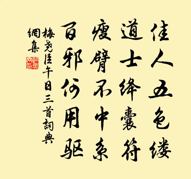 詩詞名句歷史字典書法欣賞書法字典國語詞典說文解字康熙字典古漢語字典標 題 作 者 詩 句 午日三首作者:梅堯臣 朝代:宋代午日三首原文佳人五色縷,道士絳囊符。瘦臂不中系,百邪何用驅。詩詞問答問:午日三首的作者是誰?答:梅堯臣問:午日三首寫於哪個朝代?答:宋代問:梅堯臣的名句有哪些?答:梅堯臣名句大全梅堯臣午日三首書法欣賞午日三首書法作品詩詞推薦月夕陸游〔宋代〕我昔隱天台,夜半游句曲。弄月過垂虹,萬頃一片玉。煙艇起菱唱,水風吹釣絲,更欲小徙倚,恐失初平期。今年示觀老劉克莊〔宋代〕住山仍黑瘦,瓶錫極蕭然。頂發千莖雪,跏趺一縷煙。禪堪拈出眾,詩亦長於前。燒盡西窗燭,相看各不眠。句高似孫〔宋代〕大川足鳧雁,蟹老魚亦老。滿江紅黃公紹〔宋代〕客子光陰,又還是、杏花阡陌。敧枕聽、一窗夜雨,怎生禁得。銀蠟痕消珠鳳小,翠衾香冷文鴛拆。嘆人生、時序句徐仲雅〔唐代〕屋面盡生人耳朵,籬頭多是老翁須。平分造化雙苞去,拆破春風兩面開。雲路半開千里月,洞門斜掩一天春。鑿開次韻全真所感趙蕃〔宋代〕淡交異甘醴,雲雨相覆翻。二者固殊轍,終當戒多言。所遇既混餚,所防難每存。懷哉古之人,閉門或逾垣。句林逋〔宋代〕天寒絡緯悲向壁,秋高風露聲入懷。送遠劉媛〔唐代〕聞道瞿塘灩澦堆,青山流水近陽台。知君此去無還日,妾亦隨波不復回。和過田承君陳師道〔宋代〕寺古專宜僻,居深自作幽。興來寧憚遠,句苦不緣愁。逸氣無前足,虛懷不繫舟。逢人難晤語,冒雨亦相求。送魏時中胡才卿還城吳潛〔宋代〕歲晏謝紛務,掩關慕幽居。於道良未親,養真卿自娛。孰謂雙彥來,南征千里余。忻然肯相過,修贄期讀居。媿無光祿朱卿輓詞十首李廌〔宋代〕要路多知己,期公集有庸。行趨青瑣闥,榮拜紫泥封。帝室常虛席,侯邦久臥龍。空餘遺愛頌,安得鏤斯鏞。虞美人(代簡督伯和借《戰國策》)王千秋〔宋代〕要津去去無由據。已分平生負。擬將懷抱向誰開。萬水千山、聊為借書來。玄都晝永閒難度。欲正書中句。黃琮丹浣沙溪(黃鐘)周邦彥〔宋代〕日薄塵飛官路平。眼前喜見汴河傾。地遙人倦莫兼程。下馬先尋題壁字,出門閒記榜村名。早收燈火夢傾城。次韻唐師善見寄方回〔宋代〕聞風足使鄙夫寬,家世言詩自杏壇。萬卷古書侔藏室,十年深谷隱王官。大材益厚楩楠植,至寶終垂琬琰刊。愧我挽封州太守趙次公二首楊萬里〔宋代〕國爾懷孤憤,麟兮嗣古風。謂宜空冀北,何意召河東。榕葉烝山祲,梨花慘殯宮。傳家今有子,身後未應窮。菩薩蠻(正月三日西山即事)程垓〔宋代〕山頭翠樹調鶯舌。山腰野菜飛黃蝶。來為等閒休。去成多少愁。小庭花木改。猶有啼痕在。別後不曾看。怕花和淚雜詩二十七首曹勛〔宋代〕欣欣花木遞香紅,雲散天容靜碧空。恰是韶華濃似酒,柳絲澹蕩杏花風。宣和五年二月初九日偶書呈如公妙空禪師朱濟道〔宋代〕東州山水亦堪游,及至靈岩分外幽。會有定師能指示,直須行到寶峰頭。僧院小松章孝標〔唐代〕拋杉背柏冷僧簾,鎖月梳風出殿檐。還似天台新雨後,小峰雲外碧尖尖。新涼章甫〔宋代〕白帝揚鑣後,炎官退舍初。江山驚客恨,風月到吾廬。黃嬭宜相就,青奴稍見疏。寄聲蓮社友,秋興復何如。名句推薦衰柳寒蟬一片愁,誰肯教白衣送酒?盧摯《沉醉東風·重九》 且看欲盡花經眼,莫厭傷多酒入唇。杜甫《曲江二首》 孤燈不明思欲絕,卷帷望月空長嘆。李白《長相思·其一》 葉落風不起,山空花自紅。陳師道《妾薄命·為曾南豐作》 刑當罪則威,不當罪則侮荀子《荀子·君子》 嗚呼!楚雖三戶能亡秦,豈有堂堂中國空無人!陸游《金錯刀行》 楝花飄砌。蔌蔌清香細。謝逸《千秋歲·詠夏景》 孤村落日殘霞,輕煙老樹寒鴉,一點飛鴻影下。白樸《天淨沙·秋》 自笑堂堂漢使,得似洋洋河水,依舊只流東陳亮《水調歌頭·送章德茂大卿使虜》 青,取之於藍而青於藍;冰,水為之而寒於水。荀子《荀子·勸學》
