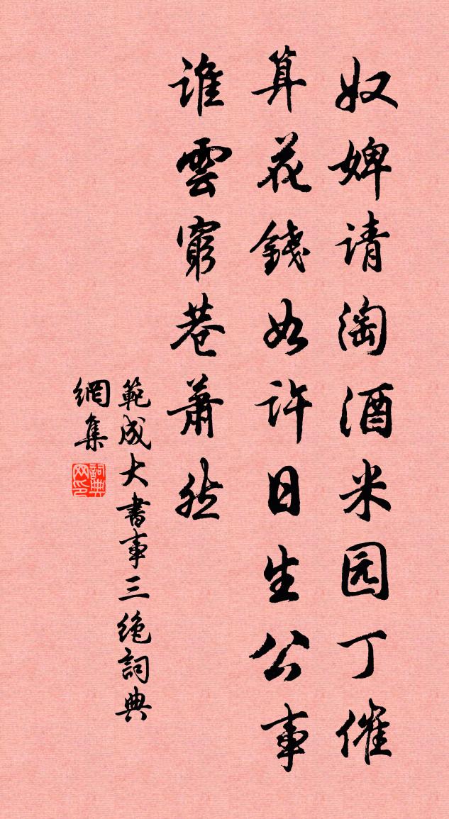 奴婢請淘酒米,園丁催算花錢。如許日生公事,誰雲窮巷蕭然。