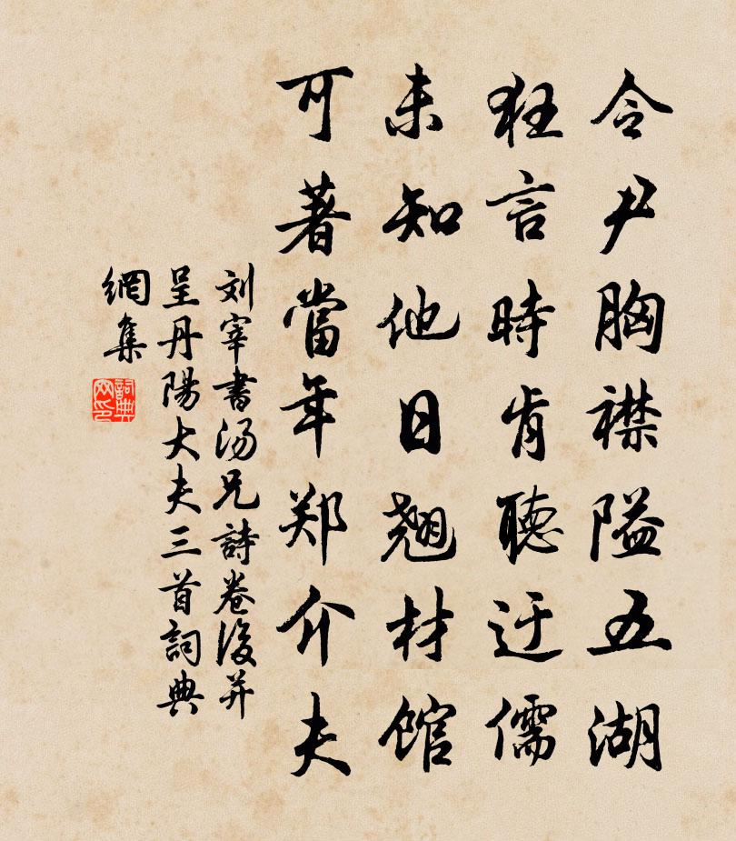 詩詞名句歷史字典書法欣賞書法字典國語詞典說文解字康熙字典古漢語字典標 題 作 者 詩 句 書湯兄詩卷後並呈丹陽大夫三首作者:劉宰 朝代:宋代原文令尹胸襟隘五湖,狂言時肯聽迂儒。未知他日翹材館,可著當年鄭介夫。詩詞問答問:《書湯兄詩卷後並呈丹陽大夫三首》的作者是誰?答:劉宰問:該詩寫於哪個朝代?答:宋代書法欣賞書湯兄詩卷後並呈丹陽大夫三首書法作品詩詞推薦米元章寶月觀詩帖贊岳珂〔宋代〕月之行空,四海清輝,豈獨於一觀見之。覽層宇之翬,地高而天隨,而後可以觀公之詩。南陽春日寇準〔宋代〕水滿池塘花繞城,日斜南陌暖風輕。千門柳色春煙淡,獨倚高樓聞暮鶯。送人赴廬陵尉劉克莊〔宋代〕聞說江西路,而今不宿師。省民來著業,少府去吟詩。夜月營門鼓,春風射圃旗。雖然溪峒事,閒暇要先知。次韻張迪功春日陳與義〔宋代〕年年春日寒欺客,今日春無一半寒。不覺轉頭逢歲換,便須揩目待花看。爭新游女幡垂鬢,依舊先生日照盤。從此山中述懷柬詳議梅磵四弟王鎡〔宋代〕春入青山伴白雲,市朝新事不曾聞。心無利慾愁都散,路有仙凡悟便分。夜月蕉花秦世夢,寒菸草子宋時墳。抽丁山中夜坐林一龍〔宋代〕寒灘遠嘶月,遺響到岩壁。悠悠千古心,悄悄一卷易。燈微夜氣分,星冷山露滴。危坐獨何為,人間睡方黑。四賓主賓中賓釋正覺〔宋代〕平生心事結眉頭,滿面風埃鬢已秋。大底出門無伎術,奈何今日路貧愁。霜天曉角林逋〔宋代〕冰清霜潔。昨夜梅花發。甚處玉龍三弄,聲搖動、枝頭月。夢絕。金獸爇。曉寒蘭燼滅。要卷珠簾清賞,且莫掃、寄峽山胡府判黃庚〔宋代〕鑑湖狂客又西湖,筆硯生涯計已迂。五斗自慚腰不折,四方安得口能糊。家山迢遞鄉心遠,燈火淒涼客影孤。莫誤送秀才歸南海林昉〔宋代〕歸路番禺遠,蠻鄉島嶼經。天黃春有瘴,海黑夜無星。北帖船中看,南歌枕上聽。遙知到家日,蜩響荔枝青。和子由中秋見月蘇軾〔宋代〕明月未出群山高,瑞光千丈生白毫。一杯未盡銀闕涌,亂雲脫壞如崩濤。誰為天公洗眸子,應費明河千斛水。遂令步入衡山范成大〔宋代〕應有人家往隔溪,綠陰亭午但聞雞。松根當路龍筋瘦,竹筍漫山鳳尾齊。墨染深雲猶似瘴,絲來小雨不成泥。更無小憩栟楮楊萬里〔宋代〕箏輿放下倦騰騰,睡倚胡床撼不應。櫸柳細花吹面落,誤揮團扇撲飛蠅。虞美人劉辰翁〔宋代〕猶疑綠萼花微甚。難與青蓮並。青蓮朵朵是天人。又向天人想見、洛陽春。多情素質塵生步。況被潘妃污。此花仍宋江三十六贊龔開〔宋代〕聖人治世,四靈在郊。汝獸何名,走曠勞勞。一落索向子諲〔宋代〕春風吹斷前山雨。行雲歸去。暫來須信本無心,回首了無尋處。欲問箇中玄路。阿誰能語。澄江霽月卻深知,把此送廬山人歸林慮山皇甫冉〔唐代〕無論行遠近,歸向舊煙林。寥落人家少,青冥鳥道深。白雲長滿目,芳草自知心。山色連東海,相思何處尋。州學餞送解發進士蔡襄〔宋代〕朝家歲取天下士,官守小大悉分治。育材論薦苟失宜,德業英豪苦難致。予嘗備員內供奉,作書參議科場事。鄉舉病目二首文天祥〔宋代〕近來煩惱障,左目忽茫茫。聶政心雖碎,劉伶醉未忘。問天天不應,食日日何傷。萬想由來假,收拾太乙光。燭影搖紅(餞馮深居,翼日,其初度)吳文英〔宋代〕飛蓋西園,晚秋卻勝春天氣。霜花開盡錦屏空,紅葉新裝綴。時放清杯泛水。暗淒涼、東風舊事。夜吟不絕,松影名句推薦何日歸家洗客袍?銀字笙調,心字香燒。蔣捷《一剪梅·舟過吳江》 世風之狡詐多端,到底忠厚人顛撲不破王永彬《圍爐夜話·第 * 則》 巴子城頭青草暮,巴山重疊相逢處張先《漁家傲·和程公辟贈》 愛之欲其生,惡之欲其死。釋原妙《偈頌六十七首》 峨嵋山下少人行,旌旗無光日色薄。白居易《長恨歌》 越梅半拆輕寒里,冰清淡薄籠藍水。和凝《菩薩蠻·越梅半拆輕寒里》 垂柳覆金堤,蘼蕪葉復齊。薛道衡《昔昔鹽》 未成林,難望鳳來棲,聊醫俗。陸容《滿江紅·詠竹》 思來江山外,望盡煙雲生。張九齡《秋晚登樓望南江入始興郡路》 讀書好處心先覺,立雪深時道已傳。袁枚《隨園詩話·卷三》