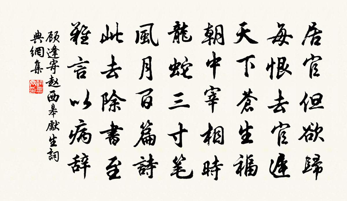 詩詞名句歷史字典書法欣賞書法字典國語詞典說文解字康熙字典古漢語字典標 題 作 者 詩 句 寄趙西皋先生作者:顧逢 朝代:宋代寄趙西皋先生原文居官但欲歸,每恨去官遲。天下蒼生福,朝中宰相時。龍蛇三寸筆,風月百篇詩。此去除書至,難言以病辭。詩詞問答問:寄趙西皋先生的作者是誰?答:顧逢問:寄趙西皋先生寫於哪個朝代?答:宋代顧逢寄趙西皋先生書法欣賞寄趙西皋先生書法作品詩詞推薦上元夜效小庾體崔知賢〔唐代〕今夜啟城闉,結伴戲芳春。鼓聲撩亂動,風光觸處新。月下多游騎,燈前饒看人。歡樂無窮已,歌舞達明晨。喜懷古上人見訪魏野〔宋代〕隔嶺僧來宿,閒同倚石樓。漏聲過半夜,月色近中秋。雅道玄須到,權門險莫游。此心方共適,明月更相留。送陳和仲常博倅嘉禾吳泳〔宋代〕未及與君別,先歌送君詩。浙西數年來,風景非昔時。紅蠶不上箔,青麥空生陂。六經政之本,無用別出奇。宿赤岸寄太初弟林泳〔宋代〕橘樹繞溪邊,人家一簇煙。急灘聽似雨,低閣坐如船。遠客思親語,痴兒望叔憐。愁來吟未了,燈火已催眠。致政檢法牛公挽章三首曹彥約〔宋代〕瘠甚都昌境,民無晚種田。樂輸雖欲速,乞糴最堪憐。帥閫施長技,王人改舊弦。本原誰任責,陰德至今傳。黃功垂秘書嵐城閣文同〔宋代〕群峰繞高軒,四望如城密。晴嵐逼窗戶,淨若新洗熨。杳杳其中人,衣襟照寒碧。臨風設橫幾,蕭灑坐終日。門前陸羽泉茶王禹偁〔宋代〕甃石封苔百尺深,試茶嘗味少知音。唯余半夜泉中月,留得先生一片心。題李氏敬聚堂家鉉翁〔宋代〕辛勤勿墜百年業,閒暇留情一卷書。要向儒科著聲聞,先從講學下工夫。泉李中〔唐代〕潺潺青嶂底,來處一何長。漱石苔痕滑,侵松鶴夢涼。泛花穿竹塢,瀉月下蓮塘。想得歸何處,天涯助渺茫。景物趙友直〔宋代〕景物撩人□,興思百念攢。亨屯原有定,呼酒拚紅顏。村醪二尊獻張平陽蘇軾〔宋代〕張公高躅不可到,我欲挽肩才覺難。事業已歸前輩錄,典刑留與後人看。詩如琢雪清牙頰,身覲飛龍吐膽肝。少負病足晝臥夢中譫諄乃誦尚書也既覺口占絕句陸游〔宋代〕唐虞已遠三千歲,每誦遺書涕泗潸。濟濟九官十二牧,我獨不得居其間!示化士釋慧遠〔宋代〕拄杖生根挑不上,缽盂無底滿盛歸。淨名何用空惆悵,哭罷香嚴與不知。頭蓬鬆兮郡辨,耳卓朔兮莫窺。渡口船回九月十一日疾小間夜賦陸游〔宋代〕病後衣巾盡覺寬,挈提裘領喟然嘆。孤燈不焰熒熒碧,小雨無聲慘慘寒。只道清心災自退,豈知非意病相干。平生留題金山寺張栻〔宋代〕長江岷山來,灌注天下半。東行近海門,勇往更瀰漫。蒼巒忽中流,屹立助傑觀。孤根入層淵,秀色連兩岸。我來出行湖山間雜賦陸游〔宋代〕新釀學鵝黃,幽花作蜜香。客邀閒即去,病起醉何傷?野寺無晨粥,村伶有夜場。吾心靜如水,隨事答年光。冬至前月赴季父梅花之集與韓蒲向憲唐乾諸人胡寅〔宋代〕天寒袖薄竹光侵,溪轉橋橫草閣深。妃子定應來月窟,寧馨誰說是瑤林。顏開玉色春光滿,香動冰姿冷不禁。漫道廣陵茱萸灣晚泊賀鑄〔宋代〕冷雲拋雪未成花,過埭東風凍著沙。荻浦漁歸初下雁,楓橋市散祗啼鴉。舊聞南國饒春事,行見東風換物華。老病阮郎歸姜夔〔宋代〕旌陽宮殿昔徘徊。一壇雲葉垂。與君閒看壁間題。夜涼笙鶴期。茅店酒,壽君時。老楓臨路歧。年年強健得追隨。贈龐玠術者李石〔宋代〕難易如何是祖風,卻將性命命龐公。向來一口西江水,因甚談天不落空。名句推薦驚風飄白日,忽然歸西山曹植《贈徐幹詩》 其服不同,其行猶一也。墨子《墨子·48章 公孟》 鄉淚客中盡,孤帆天際看。孟浩然《早寒江上有懷 / 早寒有懷 / 江上思歸》 上之為政,得下之情則治,不得下之情則亂。墨子《墨子·13章 尚同(下)》 桃花三十六陂,鮫宮睡起,嬌雷乍轉。吳文英《瑞龍吟·德清清明競渡》 昔在零陵厭,神器若無依。何遜《行經孫氏陵》 霜風搗盡千林葉,閒倚筇枝數鸛巢。范成大《冬日田園雜興》 江水三千里,家書十五行。袁凱《京師得家書》 愁凝處,渺渺殘照紅斂吳文英《宴清都·秋感》 有桃花紅,李花白,菜花黃。秦觀《行香子·樹繞村莊》