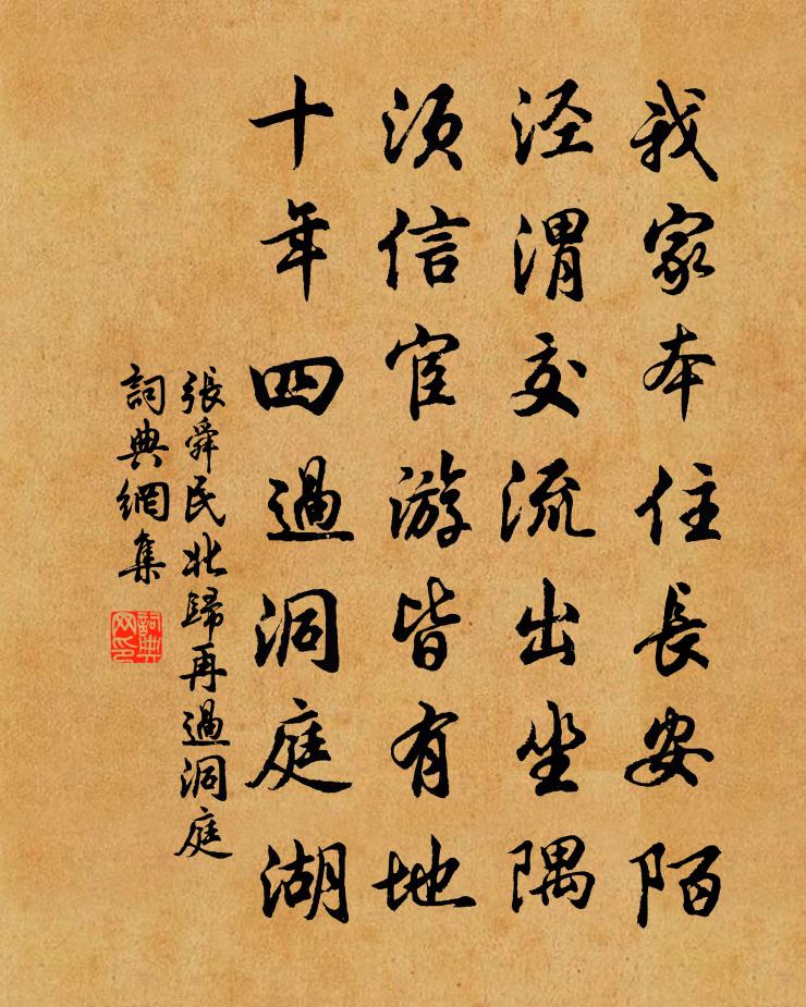 詩詞名句歷史字典書法欣賞書法字典國語詞典說文解字康熙字典古漢語字典標 題 作 者 詩 句 北歸再過洞庭作者:張舜民 朝代:宋代北歸再過洞庭原文我家本住長安陌,涇渭交流出坐隅。須信宦遊皆有地,十年四過洞庭湖。詩詞問答問:北歸再過洞庭的作者是誰?答:張舜民問:北歸再過洞庭寫於哪個朝代?答:宋代張舜民北歸再過洞庭書法欣賞北歸再過洞庭書法作品詩詞推薦秋晚十詠多病李彌遜〔宋代〕茗枕醒晝寢,粥盂供晚餐。支離慚受粟,拓落笑為官。幡影伽藍古,鈴聲窣堵寒。病多閒步屐,猶可據征鞍。柳枝/楊柳枝許棐〔宋代〕冷迫春宵一半床。懶薰香。不如屏里畫鴛鴦。永成雙。重疊衾羅猶未暖。紅燭短。明朝春雨足池塘。落花忙。詠檐前竹詩沈約〔南北朝〕萌開籜已垂。結葉始成枝。繁蔭上蓊茸。促節下離離。風動露滴瀝。月照影參差。得生君戶牖。不願夾華池。吾廬蘇泂〔宋代〕陰陰處士廬,寂寂閉門居。頗安顏氏子,敬謝陶胡奴。可使龍作魚,不使馬為駒。詩成有奇氣,浮雲時卷舒。菩薩蠻 宿造口用稼軒韻許有壬〔元代〕月明江闊天如水。夜深殘燭縱橫淚。底事不求安。世間多好山。一杯君且住。萬里人南去。倡汝莫要予。山寒無鷓次子泉韻葛起耕〔宋代〕月轉庭花玉一闌,寶釵不卸待郎看。丁香擬結相思夢,無柰東風作社寒。游朱勔家園劉子翬〔宋代〕晨暈麗丹檻,翼翼侔帝居。向來堂上人,零落煙海隅。聯翩際進會,振跡皆刑餘。閨帷尚帝王,皁隸乘軒車。流威潘卿求內主令人挽章二首蘇籀〔宋代〕擇夫先筮嫁,年俯逮期頤。周南弗牆面,班誡克刑儀。陔蘭冀豐養,中饋失扶持。惻慨百金誄,君文亦漢碑。次韻陳庭藻赴天申燕詩二首王之望〔宋代〕天申上壽開明堂,群公祝聖多新章。不論南山成帶礪,要看東海生禾桑。君恩中台燕百辟,金罍兕觥雕玉觴。飯抄獻王中丞時有除拜李群玉〔唐代〕登仙望絕李膺舟,從此青蠅點遂稠。半夜劍吹牛斗動,二年門掩雀羅愁。張儀會展平生舌,韓信那慚跨下羞。他日贈王漢陽李白〔唐代〕天落白玉棺,王喬辭葉縣。一去未千年,漢陽復相見。猶乘飛鳧舄,尚識仙人面。鬢髮何青青,童顏皎如練。吾曾黯然鄭谷〔唐代〕搢紳奔避復淪亡,訊息春來到水鄉。屈指故人能幾許,月明花好更悲涼。奉使契丹二十八首其二十二學士院端午帖子二蘇轍〔宋代〕壓蔗出寒漿,敲冰簇畫堂。人間正袢暑,天上絕清涼。遼西曲方鳳〔宋代〕遼西八月邊風急,塞草凝霜刁斗濕。旅雁嗷嗷思婦哀,錦機初罷流黃織。并州快剪裁作衣,製成千里寄相思。巧盤旅寓岑寂中園丁送花四品因賦五絕楊公遠〔宋代〕倚遍闌乾日欲斜,春光撩動客思家。園丁頗識人岑寂,特地攜來四品花。茅亦山相過黃庚〔宋代〕故人過我竹邊居,談笑從容樂有餘。洗盞共嘗春瓮酒,挑燈對讀夜窗書。歸來尚憶淵明菊,高臥誰知諸葛廬。醉後過梅里七首家…今敝廬數堵猶存今列題於後。早梅橋李紳〔唐代〕早梅花,滿枝發。東風報春春未徹,紫萼迎風玉珠裂。楊柳未黃鶯結舌,委素飄香照新月。橋邊一樹傷離別,遊蕩驛舍見故屏風畫海棠有感陸游〔宋代〕厭煩只欲長面壁,此心安得頑如石。杜門復出嘆習氣,止酒還開慚定力。成都二月海棠開,錦繡裹城迷巷陌。燕宮經無可舊居兼傷賈島劉滄〔唐代〕塵室寒窗我獨看,別來人事幾凋殘。書空蕭寺一僧去,雪滿巴山孤客寒。落葉墮巢禽自出,蒼苔封砌竹成竿。碧雲永遇樂(寄懷張敏叔、程致道)葉夢得〔宋代〕萍芷芳洲,故人回首,雲海何處。五畝荒田,殷勤問我,歸計真成否。洞庭波冷,秋風裊裊,木葉亂隨風舞。記扁名句推薦已訝衾枕冷,復見窗戶明。白居易《夜雪》 幸於始者怠於終,繕其辭者嗜其利。曹雪芹《紅樓夢·第五十六回》 山泉散漫繞階流,萬樹桃花映小樓。元稹《離思五首》 梅花南北路,風雨濕征衣。文天祥《南安軍》 眼孔淺時無大量,心田偏處有奸謀。馮夢龍《醒世恆言·卷一》 昨日屋頭堪炙手,今朝門外好張羅白居易《放言五首·其四》 玲瓏骰子安紅豆,入骨相思知不知。溫庭筠《南歌子詞二首 / 新添聲楊柳枝詞》 去年夜半橫江夢,倚危檣,參差曾賦劉辰翁《桂枝香· * 人去》 刻薄不賺錢,忠厚不折本。馮夢龍《醒世恆言·卷三》 登泰山而小天下。孟子《孟子·盡心章句上·第二十四節》