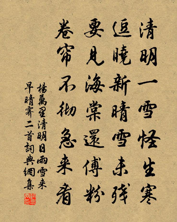 清明一雪怪生寒,逗曉新晴雪未殘。要見海棠還傅粉,捲簾不徹急來看。