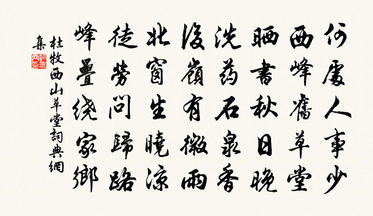 何處人事少,西峰舊草堂。曬書秋日晚,洗藥石泉香。