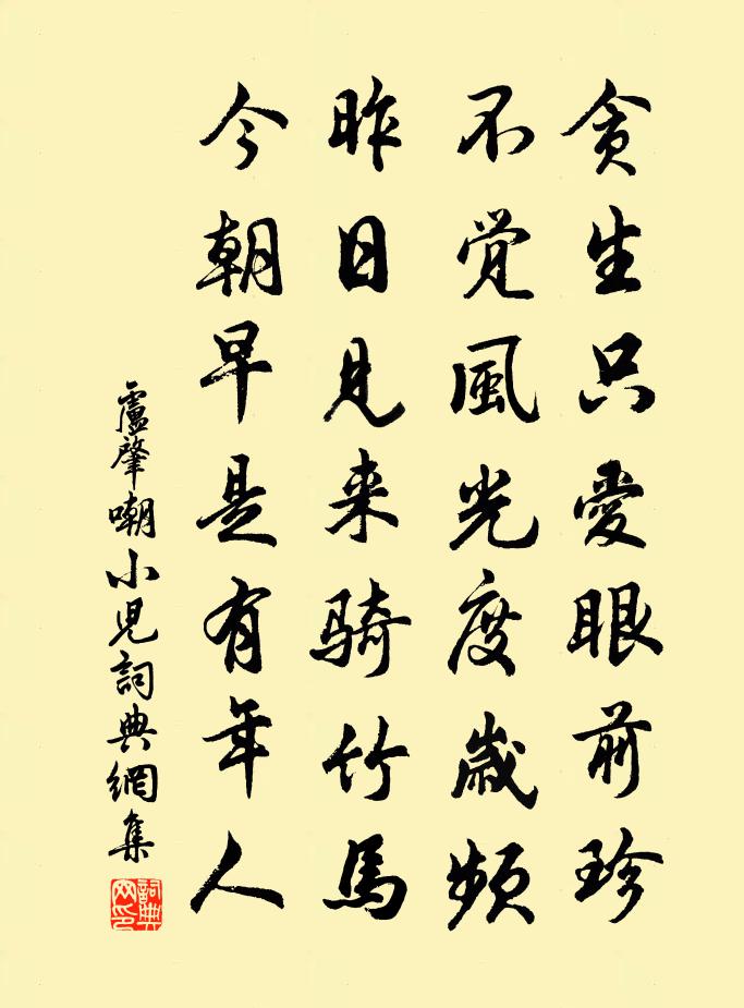 詩詞名句歷史字典書法欣賞書法字典國語詞典說文解字康熙字典古漢語字典標 題 作 者 詩 句 嘲小兒作者:盧肇 朝代:唐代嘲小兒原文貪生只愛眼前珍,不覺風光度歲頻。昨日見來騎竹馬,今朝早是有年人。詩詞問答問:嘲小兒的作者是誰?答:盧肇問:嘲小兒寫於哪個朝代?答:唐代問:嘲小兒是什麼體裁?答:七絕盧肇嘲小兒書法欣賞嘲小兒書法作品注釋全唐詩:卷551-25詩詞推薦頌古一百則釋正覺〔宋代〕百草頭上無邊春,信手拈來用得親。丈六金身功德聚,等閒攜手入紅塵。塵中能作主,化外自來賓。觸處生涯隨分和豎伯梅六題一孤芳二山間三雪中四水邊五月胡寅〔宋代〕博山湯氣馥籠寒,裊盡啼痕作醉歡。賞去角巾從小墊,接?何惜一生酸。平園余季芳〔宋代〕柳暗花明自一春,青山繚繞水如襟。偶然覓得桃源路,便欲分棲竹屋陰。清晝平原尋小隱,夕陽歸路入閒吟。遲遲奉使燕山回早行書事洪咨夔〔宋代〕露滿中庭月滿天,秋來懷抱轉悽然。客程恨不日千里,歸思亂如雲一川。故園傷心那忍說,遺民望眼幾回穿。當家雜詠陸游〔宋代〕一日日窮窮不醒,一年年老老如期。黃河卻有逢清日,白髮應無返黑時。井口鎮石牛詩陽枋〔宋代〕巨石如牛泝綠漪,象名為物本無知。休言神禹忘疏鑒,付與馮夷日棰笞。謁金門史愚〔宋代〕深院宇。寂寂不禁風雨。苔逕流錢青莫數。銀泥蝸篆古。滿院多應無主。卻被痴兒拈取。穿向柳絲喧笑語。買將春赴試途中有感李鴻章〔清代〕一入都門便到家,征人北上日西斜。槐廳謬赴明經選,桂苑猶虛及第花。世路恩仇收短劍,人情冷暖驗籠紗。倘無題貴溪翠顏亭二首毛滂〔宋代〕寒聲著葉冥冥雨,晚色遮山冉冉雲。且喜翠顏長好在,水邊小住可無君。宴桃源/如夢令晁補之〔宋代〕往歲真源謫去。紅淚揚州留住。飲罷一帆東,去入楚江寒雨。無緒。無緒。今夜秦淮泊處。自嘆李茂復〔唐代〕落日西山近一竿,世間恩愛極難拚。近來不作顛狂事,免被冤家惡眼看。紀懷陸游〔宋代〕未斸要離冢畔雲,儈牛得食寄鄉枌。修身本欲善吾死,臨事豈忘尊所聞。時序管寧親饋奠,江山龐老上丘墳。飾巾寓言二首蘇泂〔宋代〕精神遍八方,一散或為風。堂堂世之人,奈何總虛空。我無騰化術,正爾不能從。回視恍兮惚,老子其猶龍。春雪蘇轍〔宋代〕溫風吹破臘,留雪惱新春。信逐殘梅到,花從半夜勻。旋消微覆瓦,狂下亦欺人。壓竹時聞落,埋萱久未伸。山川和客用韻陳必復〔宋代〕麥風翻蝶夢,花露濕蜂窠。水闊浪痕帖,雨晴雲氣高。酒功書下下,詩料辦多多。擬喚三高起,豪吟些楚騷。詠史下劉弘陳普〔宋代〕三綱政自誅辛冉,二盜清由識士行。江左百年半天下,曾知開闢是新城。教授未著作還梅堯臣〔宋代〕何以擬君子,雲鴻肅羽儀。將過上林苑,先集孝王池。唼藻有餘樂,漸磐方得時。野塘歸莫晚,白水遠連陂。仙鶴樓趙澤〔宋代〕嘉陵天虹飲東海,西溪玉帶縈南山。諸峰四面羅髻鬟,周遭百里如一環。炊煙萬灶斜陽里,繁弦脆管東風起。祝英台/祝英台近黃人傑〔宋代〕異鄉中,行色里,隨分慶初度。老子今年,五十又還五。任他坎止流行,吳頭楚尾,本來是、乾坤逆旅。貴和富。桂宋度宗〔宋代〕秋桂庭前霽影涼,萬重深翠護深黃。恭迎兩殿臨清賞,壽斚濃浮月殿香。名句推薦黃沙百戰穿金甲,不破樓蘭終不還。王昌齡《從軍行七首·其四》 羈心積秋晨,晨積展游眺。謝靈運《七里瀨》 隔岸荒雲遠斷,繞磯小樹微明。歸莊《錦堂春·半壁橫江矗起》 離情被橫笛,吹過亂山東。王安石《江上》 一片段預告飛減卻春,風飄萬點正愁人。杜甫《曲江二首》 野渡花爭發,春塘水亂流。李嘉祐《送王牧往吉州謁王使君叔》 雲移雉尾開宮扇,日繞龍鱗識聖顏。杜甫《秋興八首》 今又重陽,戰地黃花分外香。 * 《採桑子·重陽》 善有善報,惡有惡報。佚名《增廣賢文·上集》 秋江上,看驚弦雁避,駭浪船回。辛棄疾《沁園春·帶湖新居將成》