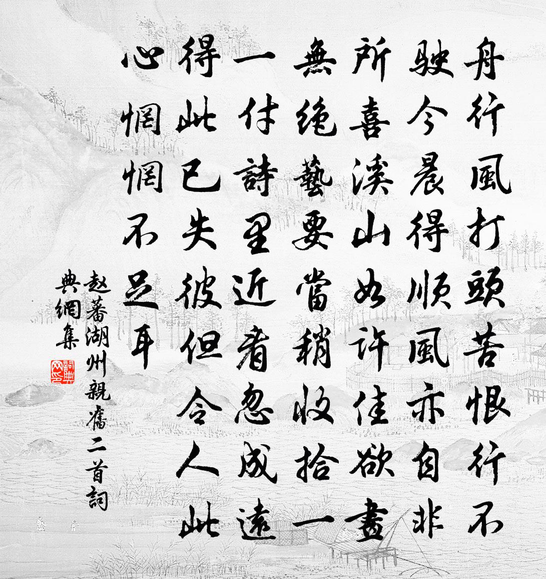 詩詞名句歷史字典書法欣賞書法字典國語詞典說文解字康熙字典古漢語字典標 題 作 者 詩 句 湖州親舊二首作者:趙蕃 朝代:宋代湖州親舊二首原文舟行風打頭,苦恨行不駛。今晨得順風,亦自非所喜。溪山如許佳,欲畫無絕藝。要當稍收拾,一一付詩里。近看忽成遠,得此已失彼。但令人此心,惘惘不足耳。詩詞問答問:湖州親舊二首的作者是誰?答:趙蕃問:湖州親舊二首寫於哪個朝代?答:宋代趙蕃湖州親舊二首書法欣賞湖州親舊二首書法作品詩詞推薦浣溪沙向子諲〔宋代〕花想儀容柳想腰。融融曳曳一團嬌。綺羅叢里最妖嬈。歌罷碧天零影亂,舞時紅袖雪花飄。幾回相見為魂銷。靈峰雪崖長老請贊釋了惠〔宋代〕老骨檛,惡冤家。無面目不聽別人處分,得人憎不堪師位安排。衲僧要識渠端的,雪瀑千尋瀉斷崖。六朝門梁武帝周曇〔唐代〕梁武年高厭六龍,繁華聲色盡歸空。不求賢德追堯舜,翻作憂囚一病翁。減字木蘭花趙長卿〔宋代〕半窗斜月。茅店蕭條燈已滅。床下蛩聲。聲動淒涼不忍聽。終宵無寐。覆去翻來真箇是。屈指歸期。應是梅花爛熳贈許居士釋智愚〔宋代〕山儀不里龐公帽,軃袖深藏傳老槌。敲磕諸方應未已,眼頭乖角少人知。出蜀門歐陽詹〔唐代〕北客今朝出蜀門,翛然領得入時魂。遊人莫道歸來易,三不曾聞古老言。玉泉納蘭性德〔清代〕芙蓉殿俯御河寒,殘月西風並馬看。十里松杉清絕處,不知曉雪在西山。次韻朋上人東湖精舍即事釋紹嵩〔宋代〕開徑東湖上,千岩鏡裹看。與君頻邂逅,此地久盤桓。柳影含雲幕,桃花生幕寒。婆娑弄翰墨,清興寄毫端。名陳憲友清軒陳淳〔宋代〕名軒何以清,惟有梅與竹。梅清清且白,竹清清更綠。雪蕊破清灑,霜操挺清肅。至哉雙友清,格韻真寒玉。伊誰席太君輓辭二首楊時〔宋代〕稟粹猗蘭秀,來嬪洛水濱。一窺識公輔,三徒得儒真。畫翣流雲氣,松阡臥石麟。哀榮今日事,誰復繼前塵。贈山老借館程公許〔宋代〕三生雲水僧,失腳困下吏。每逢道人語,莫逆猶夙嗜。況茲當龍象,共飲良有味。寶坊寄囂氛,一室淡如水。蹇驢鷓鴣天朱敦儒〔宋代〕不系虛舟取性顛。浮河泛海不知年。乘風安用青帆引,逆浪何須錦纜牽。雲薦枕,月鋪氈。無朝無夜任橫眠。太虛九日登千山觀張栻〔宋代〕清晨領客上巉岩,野路衣襟濕翠嵐。九日開樽仍絕景,西風欹冒且高談。地形盤薄一都會,山色周遭萬玉簪。卻指悼止齋王先生 其二王冕〔元代〕文採風流今已矣,夫何能見紫芝眉?中天氣黯星河慘,南國春寒草木悲。政事堂堂傳兩省,論談娓娓動諸司。老成和徐季功墨梅王之道〔宋代〕閒想窺池倒影,戲成落筆斜枝。縱涅難緇玉質,細看何似當時。題稚川山水戴叔倫〔唐代〕松下茅亭五月涼,汀沙雲樹晚蒼蒼。行人無限秋風思,隔水青山似故鄉。次韻兩蘇公講筵唱和四首晁補之〔宋代〕白髮歸聯侍從榮,未應江海嘆飄零。禽魚不與鈞天觀,想見群龍舞洞庭。摸魚子 賦玉簪錄呈趙太初兼與時中茂異姚燧〔元代〕更休尋、玉山瑤草,蓬萊知在何處。司花嫌被春風妒。留待九秋清露。還解語。試問著、當時月夜乘鸞女。何年遺正紀用暮春韻見貽復和三章郭印〔宋代〕萬形何苦役,兩曜不曾停。世事風中絮,人生水上萍。久能忘蟻慕,聊自學熊經。功滿他年後,虬龍定駕青。詠史上武帝陳普〔宋代〕文帝端能殺少翁,景皇不解斬常融。正心數語深加意,位在三皇五帝中。名句推薦白雁亂飛秋似雪,清露生涼夜。吳西逸《清江引·秋居》 疑怪昨宵春夢好,元是今朝鬥草贏晏殊《破陣子·春景》 楊柳千條拂面絲,綠煙金穗不勝吹。溫庭筠《題柳》 凡失其所欲之路而妄行者之謂迷韓非及後人《韓非子·解老》 婦人依倚子與夫,同居貧賤心亦舒。張籍《征婦怨》 情往似贈,興來如答。劉勰《文心雕龍·物色》 凡事當留餘地,得意不宜再往。朱柏廬《朱子家訓·全文》 誰知道,斷煙禁夜,滿城似愁風雨劉辰翁《永遇樂·璧月初晴》 楊柳散和風,青山澹吾慮。韋應物《東郊》 庭院深深深幾許,楊柳堆煙,簾幕無重數。歐陽修《蝶戀花·庭院深深深幾許》