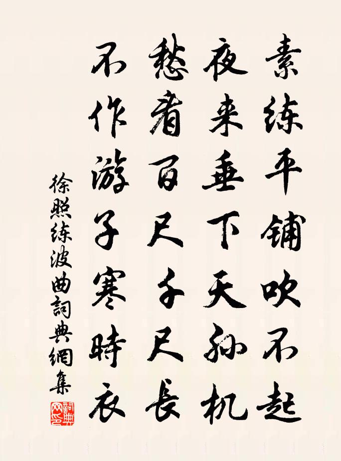 詩詞名句歷史字典書法欣賞書法字典國語詞典說文解字康熙字典古漢語字典標 題 作 者 詩 句 練波曲作者:徐照 朝代:宋代練波曲原文素練平鋪吹不起,夜來垂下天孫機。愁看百尺千尺長,不作遊子寒時衣。詩詞問答問:練波曲的作者是誰?答:徐照問:練波曲寫於哪個朝代?答:宋代徐照練波曲書法欣賞練波曲書法作品詩詞推薦菩薩蠻·題畫龔翔麟〔清代〕赤泥亭子沙頭小,青青絲柳輕陰罩。亭下響流澌,衣波雙鷺鶿。田田初出水,菡萏念嬌蕊。添個浣衣人。紅潮較淺冥漠君墓馬之純〔宋代〕經營東府役紛紛,掘土城壕得古墳。便見雙棺垂欲朽,不知何世了無聞。遂令移殯北墉上,仍與號為冥漠君。萬事太常引姬翼〔元代〕滿山風物一溪雲。猿鶴自為鄰。絕盡軟紅塵。向物外、安排此身。藥爐丹鼎,鳳膏龍屑,烹煉玉華新。游宴景長春入峽歌楊萬里〔宋代〕峽山未到日日愁,峽山已到愁卻休。不是朝來愁便散,愁 * 來山不管。昨宵遠望最高尖,今朝近看雲隔簾。樓船點絳唇 宜男綠澹香濃,舊曾百子池邊種。元好問〔金代〕碧筵孤聳。驚墮釵鳳。檀粉輕拈,若怕蜂腰重。天花供。一枝誰送。昭君詞李端〔唐代〕李陵初送子卿回,漢月明時惆悵來。憶著長安舊遊處,千門萬戶玉樓台。訪銛朴翁不遇二首高翥〔宋代〕亂花飛絮趁長髯,來訪西湖竹裹庵。行盡白雲三十里,詩人又在白雲南。薌林五十詠山齋楊萬里〔宋代〕老子齋中宿,同來無一人。若非明月客,誰伴白雲身。紹興十三年發皇后冊寶十三首佚名〔宋代〕鏤蒼玉兮,盛德載揚。鑄南金兮,作鎮椒房。虔受賜兮,有燁有光。宜室家兮,朱芾斯皇。甥館五首許月卿〔宋代〕月色真圖畫,風聲古瑟琴。月風天地職,風月聖賢心。竹砌水如璧,梧罔朋蓋簪。不須聯句得,天籟竹梧吟。東吳府僉見山覓酒潘璵〔宋代〕火龍走日爍炎天,久渴羈腸擬吸川。見說藍橋風月好,願分清致到吟邊。再次韻陳造〔宋代〕因詩衰病顧徒然,鑿井今猶未及泉。藥幻霜須端有待,囊緘玉唾愧無傳。冥心擬學無言子,授訣今猶不老仙。探妙秋雨嘆馬廷鸞〔宋代〕夜夜黃昏雨打窗,愁霖久矣晦明陽。天公一怒四山黑,田父三吁百畝黃。禾黍油油生有耳,芭蕉點點斷無腸。病身宮詞·故國三千里張祜〔唐代〕故國三千里,深宮二十年。一聲何滿子,雙淚落君前。歸朝歌劉辰翁〔宋代〕最是一人稱好處。昨日小春留得住。梅花信信望東風,須待公歸香滿路。年時今已度。長是巴山深夜雨。宣又召,和之美河洲四詩司馬光〔宋代〕杳杳河洲晚,客行殊未返。目隨林鳥還,心共征鴻遠。即事五首王安石〔宋代〕漸老逢春能幾回,蓬門今始為君開。莫嫌野外無供給,更向花前把一杯。送岳州李十從軍桂州張說〔唐代〕送客之江上,其人美且才。風波萬里闊,故舊十年來。劍拔蛟隨斷,弓張鳥自摧。陽橋書落落,驛馬定先回。題四皓廟許渾〔唐代〕桂香松暖廟門開,獨瀉椒漿奠一杯。秦法欲興鴻已去,漢儲將廢鳳還來。紫芝翳翳多青草,白石蒼蒼半綠苔。山下古梅范成大〔宋代〕孤標元不鬥芳菲,雨瘦風皴老更奇。壓倒嫩條千萬蕊,只消疏影兩三枝。名句推薦故園便是無兵馬,猶有歸時一段愁陳與義《送人歸京師》 手捻香箋憶小蓮。欲將遺恨倩誰傳。晏幾道《鷓鴣天·手捻香箋憶小蓮》 言極則怒,怒則說者危。呂不韋《呂氏春秋·論·貴直論》 忍淚佯低面,含羞半斂眉。韋莊《女冠子·四月十七》 性靈熔匠,文章奧府。淵哉鑠乎,群言之祖。劉勰《文心雕龍·宗經》 蓮朝開而暮合,至不能合,則將落矣王永彬《圍爐夜話·第六九則》 一尺深紅勝麴塵,天生舊物不如新。溫庭筠《南歌子詞二首 / 新添聲楊柳枝詞》 霰雪紛其無垠兮,雲霏霏而承宇。屈原《九章》 離別家鄉歲月多,近來人事半消磨。賀知章《回鄉偶書二首》 壯心未與年俱老,死去猶能作鬼雄。陸游《書憤五首·其二》