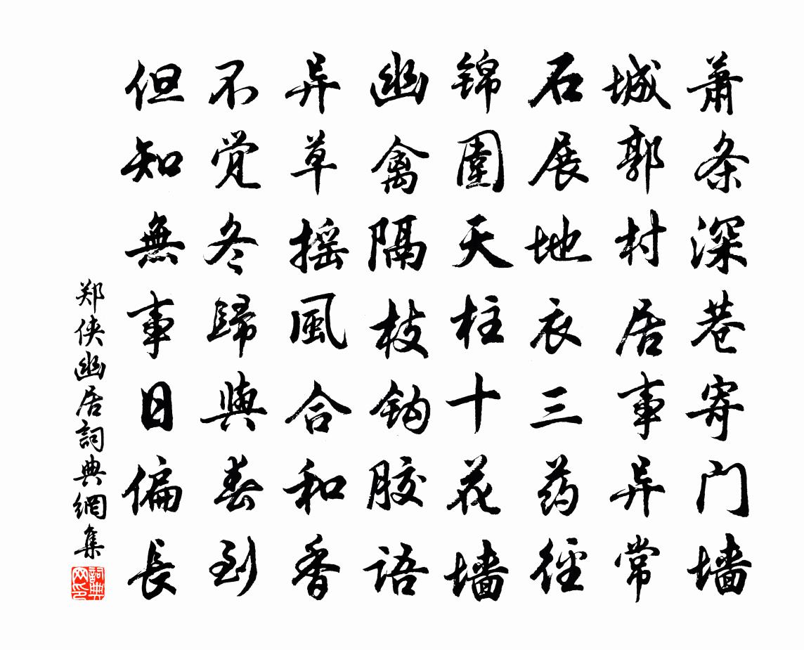 詩詞名句歷史字典書法欣賞書法字典國語詞典說文解字康熙字典古漢語字典標 題 作 者 詩 句 幽居作者:鄭俠 朝代:宋代幽居原文蕭條深巷寄門牆,城郭村居事異常。石展地衣三藥徑,錦圍天柱十花牆。幽禽隔枝鉤膠語,異草搖風合和香。不覺冬歸與春到,但知無事日偏長。詩詞問答問:幽居的作者是誰?答:鄭俠問:幽居寫於哪個朝代?答:宋代鄭俠幽居書法欣賞幽居書法作品詩詞推薦梅花十絕句趙蕃〔宋代〕寒雀蕭蕭凍不喧,背人緣底過頹垣。似矜玉粒堪充飽,啄破霜包無乃冤。洛下閒居寄山南令狐相公白居易〔唐代〕已收身向園林下,猶寄名於祿仕間。不鍛嵇康彌懶靜,無金疏傅更貧閒。支分門內餘生計,謝絕朝中舊往還。唯是出塞門許棠〔唐代〕步步經戎虜,防兵不離身。山多曾戰處,路斷野行人。暴雨聲同瀑,奔沙勢異塵。片時懷萬慮,白髮數莖新。經東都安國觀九仙公主舊院作劉禹錫〔唐代〕仙院御溝東,今來事不同。門開青草日,樓閉綠楊風。將犬升天路,披雲赴月宮。武皇曾駐蹕,親問主人翁。再韻答子文范成大〔宋代〕浮生飽外莫求余,羈旅東來計已疏。肩聳已高猶索句,眼明無用且翻書。百年子莫占元緒,萬法吾今付子盧。惟有墨萱釋文珦〔宋代〕丹粉轉成緇,風姿尚瀟灑。對此可忘憂,依依北堂下。夜出湖口葛紹體〔宋代〕雲連天遠水連雲,一片天光欲半昏。新月似憐新雁過,伴他孤影落前村。垂虹亭葉茵〔宋代〕東西耕釣窟,左右利名津。倚遍闌乾曲,知幾有幾人。瑞鶴仙史達祖〔宋代〕杏煙嬌濕鬢。過杜若汀洲,楚衣香潤。回頭翠樓近。指鴛鴦沙上,暗藏春恨。歸鞭隱隱。便不念、芳盟未穩。自簫謝永叔答述舊之作和禹玉梅堯臣〔宋代〕天下才名罕有雙,今逢陸海與潘江。筆生造化多多辦,聲滿華夷一一降。金帶系袍回禁署,翠娥持燭侍吟窗。人間都下竹枝詞方文〔清代〕金絲煙是草中妖,天下何人喙不焦?聞說內廷新有禁,微醺不敢廁宮僚。開禧元年四月自中都挈家還鄉寓居城南十二月汪莘〔宋代〕茅屋凍將壓,柴扉寒不開。交朋幾竿竹,兄弟數枝梅。渡口月初出,沙頭人正回。客居殊自在,歲事亦相催。葛屨佚名〔先秦〕糾糾葛屨,可以履霜?摻摻女手,可以縫裳?要之襋之,好人服之。好人提提,宛然左辟,佩其象揥。維是褊心,泛五雲溪許渾〔唐代〕此溪何處路,遙問白髯翁。佛廟千岩里,人家一島中。魚傾荷葉露,蟬噪柳林風。急瀨鳴車軸,微波漾釣筒。石苔病起始浴二首曾幾〔宋代〕無數塵埃一病身,不蒙湔拂幾經旬。政須皁莢相料理,可笑梁州陰子春。友人許惠酒以詩征之皮日休〔唐代〕野客蕭然訪我家,霜威白菊兩三花。子山病起無餘事,只望蒲台酒一車。靈山觀金燈吳龍翰〔宋代〕嵯峨靈金山,峭壁偕天長。巑屼萬蒼翠,無復敢頡頏。登臨勞遠目,久羈塵俗韁。天風送筇屐,此願今一償。所喜次韻子瞻望湖樓上五絕蘇轍〔宋代〕欲看西湖兩岸山,臥乘湖上木蘭船。湖山已自隨船改,更值陰晴欲雨天。眼看西湖不暫來,簿書無算撥還開。三年題吳征君岩居鮑溶〔唐代〕堯澤潤天下,許由心不知。真風存綿綿,常與達者期。有道吾不仕,有生吾不欺。澹然靈府中,獨見太古時。地脈依韻奉和王平甫學士寄元內翰詩強至〔宋代〕蓬萊仙闕地深沉,視草讎書此盍簪。禁漏傳聲來閣外,宮雲曳影過廊陰。能詩摩詰淹儒館,未相微之在翰林。馬躍名句推薦滄江好煙月,門系釣魚船。杜牧《旅宿》 無功不賞,無罪不罰。荀子《荀子·王制》 臣無隱忠,君無蔽言,國之祿也。劉向《戰國策·趙二·武靈王平晝閒居》 萬事莫貴於義。墨子《墨子·47章 貴義》 相見時難別亦難,東風無力百花殘。李商隱《無題·相見時難別亦難》 教婦初來,教兒嬰孩。顏之推《顏氏家訓·教子篇》 萬條千縷綠相迎。舞煙眠雨過清明。晏幾道《浣溪沙·二月和風到碧城》 獨上小摟春欲暮,愁望玉關芳草路。韋莊《木蘭花·獨上小樓春欲暮》 棠梨花映白楊樹,儘是死生別離處。白居易《寒食野望吟》 高或入於虛,華或入於浮,而虛浮之士,究難指為高華。王永彬《圍爐夜話·第一一O則》
