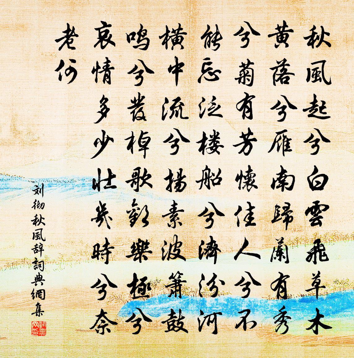 秋風起兮白雲飛,草木黃落兮雁南歸。蘭有秀兮菊有芳,懷佳人兮不能忘。