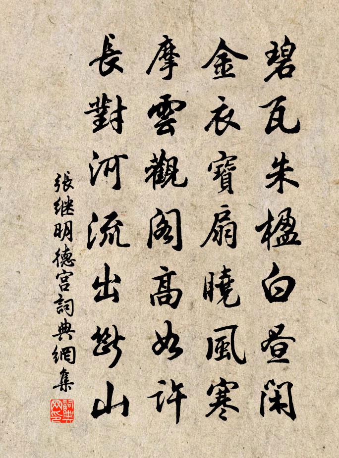 碧瓦朱楹白晝閒,金衣寶扇曉風寒。摩雲觀閣高如許,長對河流出斷山。