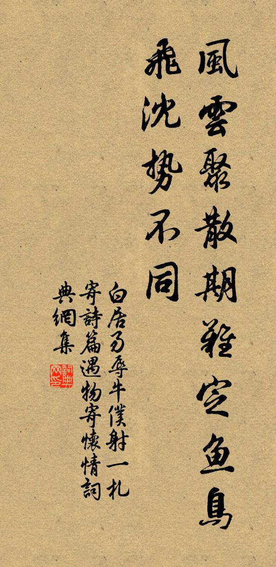 詩詞名句歷史字典書法欣賞書法字典國語詞典說文解字康熙字典古漢語字典標 題 作 者 詩 句 辱牛僕射一札寄詩篇遇物寄懷情作者:白居易 朝代:唐代原文風雲聚散期難定,魚鳥飛沈勢不同。 詩詞問答問:《辱牛僕射一札寄詩篇遇物寄懷情》的作者是誰?答:白居易問:該詩寫於哪個朝代?答:唐代問:白居易的名句有哪些?答:白居易名句大全書法欣賞辱牛僕射一札寄詩篇遇物寄懷情書法作品詩詞推薦和子野四首仇遠〔宋代〕亨塗即畏塗,暮境欲何如。索米多貧士,鈔詩欠小胥。自緣鄉夢熟,頓與世情疏。會約逃名者,山間倒跨驢。無相寺道中葉適〔宋代〕傍水人家柳十餘,靠山亭子菊千株。竹雞露啄堪幽伴,蘆菔風乾待歲除。與仆抱樵趨絕澗,隨僧尋磬禮精廬。不知絕句二首劉克莊〔宋代〕枝上好花無十日,松梢老葉有千年。靜中勘破人間世,醒者常愚醉者賢。次韻答幽蘭蘇轍〔宋代〕幽花耿耿意羞春,紉佩何人香滿身。一寸芳心須自保,長松百尺有為薪。京路白居易〔唐代〕西來為看秦山雪,東去緣尋洛苑春。來去騰騰兩京路,閒行除我更無人。用周作韻送范忱舉歸李復〔宋代〕白日高懸照九垓,天門欲上卻飛回。雖聞西蜀題橋去,未放東都走馬來。豐劍有神須會合,荊珉蘊璞且徘徊。明年酬智叔見戲二首陳師道〔宋代〕百念皆空習尚存,稍修香火踏空門。槌腰摩腹非春事,割愛投閒覆玉樽。白 * 多猶可染,驂鸞興盡郤乘鯤。上界心遠堂吳龍翰〔宋代〕飄飄謫仙子,閉門逃世諠。達哉柴桑翁,心遠地乃偏。羨公隱廛市,高拍前人肩。園林富花木,景象羅春妍。翠鳥溪上晚望二絕王炎〔宋代〕日墮西山煙水昏,寂寥雞犬數家村。滄洲歸鷺客停棹,古寺疏鍾人掩門。臨江仙·倦客如今老矣史達祖〔宋代〕倦客如今老矣,舊時不奈春何。幾曾湖上不經過。看花南陌醉,駐馬翠樓歌。遠眼愁隨芳草,湘裙憶著春羅。枉教醮成作趙善括〔宋代〕心格崇霄禁路通,纖埃收盡見天容。三千絳闕雲開鎖,十萬霓旌月印蹤。香裊郁蔥翔鼎鳳,松搖寥廓狀雲龍。虛皇答朱彭州喜雪宋祁〔宋代〕雪集先何所,天彭關內州。雲澌結河漢,風礫灑林丘。眩晃三霄接,繽紛一氣浮。光逢晨睍薄,花得冥寒稠,拂樹冬夜韓維〔宋代〕繁陰掃無跡,庭雪尚餘光。屋背生寒月,林梢綃暗霜。昏瞳頻廢卷,悲睛易沾裳。卻想故園夜,張燈宿草堂。聞官軍破吉浪戎小而固,慮史氏遺忽,因記為薛能〔唐代〕和吹度穹旻,虛徐接建寅。不辭加一歲,唯喜到三春。燎照雲煙好,幡懸井邑新。禎祥應北極,調燮驗平津。樹欲越問越紙孫因〔宋代〕系剡藤之為紙兮,品居上者有三。蓋筱簜之變化兮,非藤楮之可參。在晉而名側理兮,儲郡庫以九萬。曰姚黃今最輔德廟碑歌方回〔宋代〕綠之渚兮浣侯衣,青厥蟾兮神所依。未壯而逝兮匪夭,白首者拜兮莫之敢非。潮來兮潮往,侯朝出遊兮夜歸。侯昔歸雲庵陳洵直〔宋代〕聚散空中不可期,虛含五色豈多姿。歸來便合沈蹤跡,卻是行人見出時。寄馮當可郭印〔宋代〕合散真堪笑,回頭跡已陳。交情元共月,樂事不關春。委俗終違已,躭經亦醉人。行藏隨所遇,了此百年身。改白雲庵疏語為李道大方回〔宋代〕昔有隱君子,中年洛陽居。擊壤歌太平,洛人為結廬。名曰安樂窩,花間行小車。昔有賢宰相,退休寓洛都。心乎三橋詩右宜遠歐陽修〔宋代〕朱欄明綠水,古柳照斜陽。何處偏宜望,清漣對女郎。名句推薦疾雷不及塞耳,疾霆不暇掩目。劉安及其門客《淮南子·兵略訓》 小童疑是有村客,急向柴門去卻關。崔道融《溪居即事》 曾經滄海難為水,除卻巫山不是雲。元稹《離思五首·其四》 自是荷花開較晚,孤負東風。幼卿《浪淘沙·極目楚天空》 春風依舊。著意隨堤柳。趙令畤《清平樂·春風依舊》 無情有恨何人覺?月曉風清欲墮時。陸龜蒙《白蓮》 瑤草一何碧,春入武陵溪。黃庭堅《水調歌頭·遊覽》 二秋葉神媛,七夕望仙妃。任希古《和長孫秘監七夕》 投我以木瓜,報之以瓊琚。佚名《木瓜》 人不通今古,馬牛如襟裾。佚名《增廣賢文·上集》