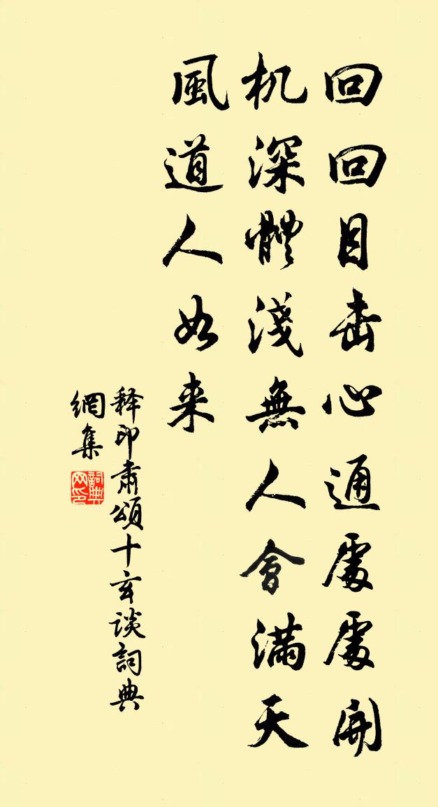 詩詞名句歷史字典書法欣賞書法字典國語詞典說文解字康熙字典古漢語字典標 題 作 者 詩 句 頌十玄談作者:釋印肅 朝代:宋代頌十玄談原文回回,目擊心通處處開。機深體淺無人會,滿天風道人如來。詩詞問答問:頌十玄談的作者是誰?答:釋印肅問:頌十玄談寫於哪個朝代?答:宋代釋印肅頌十玄談書法欣賞頌十玄談書法作品詩詞推薦玉田八景華頂秋容李堪〔宋代〕何處棲真遠世紛,五華高頂絕人氛。仙翁自有餐霞法,謾使人間望彩雲。往年寄子平文同〔宋代〕往年記得歸在京,日日訪子來西城。雖然對坐兩寂寞,亦有大笑時相轟。顧子心力苦未老,猶弄故態如狂生。書窗題蘇州楞伽寺張祜〔唐代〕樓台山半腹,又此一經行。樹隔夫差苑,溪連勾踐城。上坡松徑澀,深坐石池清。況是西峰頂,淒涼故國情。夜中步月陸游〔宋代〕夜半不成寐,起尋微月行。風生驚葉墮,露重覺荷傾。兀兀酒中趣,悠悠身後名。興闌還掩戶,坐待日東生。次韻葉德章見示趙蕃〔宋代〕窮冬未省見梅斑,故里何繇報竹安。歸意寧須卜以決,衰顏不待鏡頻看。交情謝子來今雨,節物娛予後苦寒。獨苦泛舟澤中夜歸陸游〔宋代〕無窮煙海接空濛,秦望稽山醉眼中。虹斷已收千嶂雨,鶴歸正駕九天風。漁舟容與橫沙際,水鳥號鳴傍葦叢。興盡青玉案陳亮〔宋代〕武陵溪上桃花路。見征騎、匆匆去。嘶入斜陽芳草渡。讀書窗下,彈琴石上,留得銷魂處。落花冉冉春將暮。空寫久欲乞歸未得一日蒙恩放歸不勝欣喜塗中得十吳芾〔宋代〕欲寒還暖雨還晴,極目秋郊景色明。應是此歸天亦喜,故將風日作人情。奉和聖制三月三日陳希烈〔唐代〕上巳迂龍駕,中流泛羽觴。酒因朝太子,詩為樂賢王。錦纜方舟渡,瓊筵大樂張。風搖垂柳色,花發異林香。野老頌一百則釋重顯〔宋代〕一箇兩箇千萬箇,脫卻籠頭卸角馱。右轉右轉隨後來,紫胡要打劉鐵磨。和王應夫見貽六首曹勛〔宋代〕冥心艱苦走南隅,每讀清言意已攄。竹簡固嘗窺遠業,山陰何止識遺書。雲間未省三年別,海上今欣一笑初。乘興日暮江上許棠〔唐代〕孤帆收廣岸,落照在遙峰。南北渡人少,高低歸鳥重。潮回沙出樹,雨過浦沉鍾。漁父雖相問,那能話所從。春到姜特立〔宋代〕春到天寒花未芳,老人寸寸惜流光。攀條先試東風手,蜂蝶如知合斷腸。和之美河洲四詩司馬光〔宋代〕杳杳河洲晚,客行殊未返。目隨林鳥還,心共征鴻遠。偈頌三十八首釋如淨〔宋代〕燈點點,月團團,遊人歌鼓鬧中看。咫尺鳳樓開雉扇,玉皇仙仗紫雲端。初別子由至奉新作蘇軾〔宋代〕雙鵲先我來,飛上東軒背。書隨好夢到,人與佳節會。一歡難把玩,回首了無在。卻渡來時溪,斷橋號淺瀨。茫茫和友封題開善寺十韻(依次重用本韻)元稹〔唐代〕梁王開佛廟,雲構歲時遙。珠綴飛閒鴿,紅泥落碎椒。燈籠青焰短,香印白灰銷。古匣收遺施,行廊畫本朝。藏經茅亭閒坐曾鞏〔宋代〕荊門常晝掩,不必雲山深。豈敢尚孤絕,自能收寸心。草萌被遠徑,鳥語變喬林。散帙味新趣,鳴絃嘆餘音。脫粟宮詞王珪〔唐代〕萱草成窠杏子青,夜間禁漏曉聞鶯。吹回一覺照陽夢,賬外春風太薄情。送王純白郎中赴閩漕范成大〔宋代〕聲利場中百戰鏖,今誰勇退似公豪。緩尋南粵千山路,先破西興百尺濤。平日曼容嫌祿厚,他年文本嘆官高。才名名句推薦梅子青,梅子黃,菜肥麥熟養蠶忙。祝允明《首夏山中行吟》 七夕年年信不違,銀河清淺白雲微,蟾光鵲影伯勞飛。毛文錫《浣溪沙·七夕年年信不違》 獨立揚新令,千營共一呼。盧綸《和張僕射塞下曲·其一》 兩處春光同日盡,居人思客客思家。白居易《望驛台》 舉頭紅日近,回首白雲低。寇準《詠華山》 更被夕陽江岸上,斷腸煙柳一絲絲。韋莊《江外思鄉》 白日何短短,百年苦易滿。李白《短歌行》 妙年出補父兄處,公自才力應時須黃庭堅《送范德孺知慶州》 寄治亂於法術,托是非於賞罰韓非及後人《韓非子·大體》 梨花自寒食,進節只愁余。楊萬里《寒食上冢》