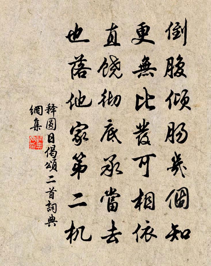 詩詞名句歷史字典書法欣賞書法字典國語詞典說文解字康熙字典古漢語字典標 題 作 者 詩 句 偈頌二首作者:釋圓日 朝代:宋代偈頌二首原文倒腹傾腸幾個知,更無比發可相依。直饒徹底承當去,也落他家第二機。詩詞問答問:偈頌二首的作者是誰?答:釋圓日問:偈頌二首寫於哪個朝代?答:宋代釋圓日偈頌二首書法欣賞偈頌二首書法作品詩詞推薦秋曉五首章甫〔宋代〕窗間耿殘燈,屋角照落月。披衣啟柴關,呼帚掃黃葉。漁家傲歐陽修〔宋代〕為愛蓮房都一柄。雙苞雙蕊雙紅影。雨勢斷來風色定。秋水靜。仙郎彩女臨鸞鏡。妾有容華君不省。花無恩愛猶相銀樹董嗣杲〔宋代〕銀樹驛橋廢,徵車難久停。月沉孤店柳,雪掩敗舟萍。野冢明荒燐,山田出斷銘。甫能投宿去,歷歷過郵鈴。蝶戀花(次長汀壁間韻)滕甫〔宋代〕葉底無風池面靜。掬水佳人,拍破青銅鏡。殘月朦朧花弄影。新梳斜插烏雲鬢。拍索悶懷添酒興。旋擷園蔬,隨分又五言二首劉克莊〔宋代〕子去臨民社,公私必小寬。皆雲官似水,誰道縣如灘。村絕追胥跡,溪無督賦瘢。自從陳李後,古調少 * 。次韻酬張仲思高郵見寄二首張鎡〔宋代〕春來慵把酒,間日伴僧齋。風雨梅花夢,豀山老子懷。有人非吏俗,同好任天涯。歸上青雲,幽期孰與偕。道士張鑄〔宋代〕乘龍控魯真吾偶,化石燒金即我曹。塵世混來名異跡,蓬山思去夢魂勞。吟依古柏天風斷。嘯近倦壇海月高。九轉送張飾之王炎〔宋代〕俗子問寒溫,吾儕相爾汝。二年坐窮山,蛛網懸一麈。剝啄誰扣關,欲語不敢吐。有客騎鯨魚,迎之倒雙屣。家聲寄絳州李使君姚合〔唐代〕獨施清靜化,千里管橫汾。黎庶應深感,朝廷亦細聞。心期在黃老,家事是功勳。物外須仙侶,人間要使君。花多試箋鄧允端〔宋代〕撥開宿火起爐煙,留得餘香伴夜禪。落盡碧桃春不管,東風卻放柳飛綿。梅花江萬里〔宋代〕床頭周易用心來,舊卷經年病不開。到得初冬夢顏子,欠伸俄健起尋梅。漢陽獻李相公劉長卿〔唐代〕退身高臥楚城幽,獨掩閒門漢水頭。春草雨中行徑沒,暮山江上捲簾愁。幾人猶憶孫弘閣,百口同乘范蠡舟。早晚滿庭芳 七首滿庭芳藏頭字句不一,疑有誤王哲〔元代〕黃邑於公乞修行論修行,翁甚喜,津堪作瓊漿。清火赫,顛倒吉還昌。顯金烏甚朗。中現、玉兔精詳。談正,處暑出城寫望宋祁〔宋代〕驅車南陌道,物色喜春還。水暖初成浦,雲晴不抱山。原姿平澶漫,禽哢巧間關。此適非謀野,祠官只在閒。奉使契丹二十八首其二十二學士院端午帖子二蘇轍〔宋代〕蠶宮罷採擷,暴室獻朱黃。翕呷霜紈動,闌班彩縷長。予行蜀漢間道出潭毒關下每憩羅漢院山光軒今陸游〔宋代〕山光軒上幾閒遊,潭毒關前又小留。麥隴雪苗寒剡剡,柘林風葉暮颼颼。馬行劍閣從今始,門泊吳船亦已謀。醉眼悲哉行李鹹用〔唐代〕雲色陰沈弄秋氣,危葉高枝恨深翠。用卻春風力幾多,微霜逼迫何容易。普明亭賦韓維〔宋代〕楊柳飛花盡,櫻桃結子成。蹊陰空淨綠,野艷有孤明。訪古重來地,傷春獨望情。幽禽亦何恨,百種向人鳴。憶帝京(贈彈琵琶妓)黃庭堅〔宋代〕薄妝小靨閒情素。抱著琵琶凝佇。慢拈復輕攏,切切如私語。轉撥割朱弦,一段驚沙去。萬里嫁、烏孫公主。對易江樓送太康郭主簿赴嶺南劉長卿〔唐代〕對酒憐君安可論,當官愛士如平原。料錢用盡卻為謗,食客空多誰報恩。萬里孤舟向南越,蒼梧雲中暮帆滅。樹色名句推薦大德不官,大道不器,大信不約,大時不齊。戴聖《禮記·學記》 萋萋春草秋綠,落落長松夏寒。王維《田園樂七首·其四》 畢竟西湖六月中,風光不與四時同。楊萬里《曉出淨慈寺送林子方》 深秋寒夜銀河靜,月明深院中庭。尹鶚《臨江仙·深秋寒夜銀河靜》 春山煙欲收,天淡星稀小牛希濟《生查子·春山煙欲收》 得天下英才而教育之,三樂也!孟子《孟子·盡心章句上·第二十節》 兩刃相割,利鈍乃知;二論相訂,是非乃見。王充《論衡·卷二十九·案書篇》 憶昔西池池上飲,年年多少歡娛。晁沖之《臨江仙·憶昔西池池上飲》 妾身獨自眠,月圓人未圓。王元鼎《憑欄人·閨怨》 雨歇梧桐淚乍收,遣懷翻自憶從頭。納蘭性德《浣溪沙·雨歇梧桐淚乍收》