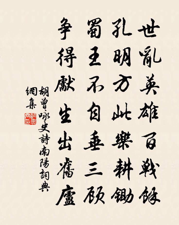 詩詞名句歷史字典書法欣賞書法字典國語詞典說文解字康熙字典古漢語字典標 題 作 者 詩 句 詠史詩。南陽作者:胡曾 朝代:唐代詠史詩。南陽原文世亂英雄百戰餘,孔明方此樂耕鋤。蜀王不自垂三顧,爭得先生出舊廬。詩詞問答問:詠史詩。南陽的作者是誰?答:胡曾問:詠史詩。南陽寫於哪個朝代?答:唐代胡曾詠史詩。南陽書法欣賞詠史詩。南陽書法作品詩詞推薦舟次大雲倉回寄孔武仲蘇轍〔宋代〕一風失前期,十日不相見。君帆一何駛,去若乘風箭。我舟一何遲,出沒蔽葭。瓮中有白糟,床上有黃卷。妻孥謁明太祖陵乾隆〔清代〕崛起何嫌本做僧,漢高同傑又多能。每當巡省臨華里,必致勤虔謁孝陵。一代規模頗稱樹,百年禮樂未遑興。獨憐巡邊在河北作張說〔唐代〕去年六月西河西,今年六月北河北。沙場磧路何為爾,重氣輕生知許國。人生在世能幾時,壯年征戰發如絲。會待嘉熙戊戌季春一日畫溪吟客王子信為亞愚詩禪王諶〔宋代〕滿湖飛雪攪長空,急起呼兒上短篷。蓑笠具,畫圖同,鐵笛聲長曲未終。春雨中遣懷二首柬梅臞胡仲弓〔宋代〕蠟屐登山訪草亭,前山未放十分青。清明此去無多日,不信老天長晦冥。書事劉因〔元代〕臥榻而今又屬誰?江南回首見旌旗。 路人遙指降王道,好似周家七歲兒。 寄友人三首王安石〔宋代〕一別三年各一方,此身漂蕩只殊鄉。看沙更覺蓬萊淺,數日空驚霹靂忙。渺渺水波低赤岸,蒙蒙雲氣淡扶桑。登臨如夢令曹伯啟〔元代〕榮悴本來何處。看取岸花汀樹。醉眼眩青紅,欲問真源無路。歸去。歸去。風外數聲齊女。春日雜書林之奇〔宋代〕昨日為雨備,今晨天乃風。障風謹自保,通夕雪迷空。備一常失計,盡備力不供。因之置不為,拱手受禍凶。當為傳言玉女袁綯〔宋代〕眉黛輕分,慣學玉真梳掠。艷容可畫,那精神怎貌。鮫綃映玉,鈿帶雙穿纓絡。歌音清麗,舞腰柔弱。宴罷瑤池,南柯子侯善淵〔元代〕踏破塵勞網,沖天志決貞。手中持劍轉環睛。日耀爭光,*爍瑩天明。覺海千尋底,靈波萬里傾。群魔消散鬼神驚九月晦齋宿太一宮都監姚高士示劉長翁及沁仲程公許〔宋代〕成擾東華車馬塵,煙霞何日拂衣襟。空花想銷浮反念,枯木猶能發至音。白鶴不來紅日暮,金鱗自躍碧潭深。五千與王伯芻楊願〔宋代〕只今侍讀周夫子,屢說君詩似杜詩。速把冠塵盡彈卻,玉堂宵直伴王維。夢藤驛陸游〔宋代〕又入千山去,真成萬里行。履霜常早駕,秉炬或宵征。古驛怪藤合,荒陂群鴈鳴。客中常少睡,歸夢若為成。偈頌一百一十七首釋紹曇〔宋代〕三月休徵,修文偃琥。治格太平,生靈鼓舞。無端塞馬嘶,又欲揚塵簸土。密運機籌,肅行師旅。塞北安南一戰收書雨陸游〔宋代〕仲冬候始寒,丙夜天正黑。雨來挾風助,吼擊不遺力。聲如拔高山,勢若伐強國。初憂老柏折,遂恐石筍踣。乾坤失調名佚名〔宋代〕無計奈愁何。翠玉樓和胡端逸韻文天祥〔宋代〕客影魚千里,年華柳十圍。白雲棲石密,黃鵠出煙微。江少秋風老,湖山晚日暉。郁孤台上望,野闊犢初肥。題謝先生白雲庵曹道沖〔宋代〕桃源洞口武陵人,跳出紅塵二十春。但喜白雲深有趣,不知青眼近來親。丹砂已向坤爐伏,玉汞從坎鼎烹。活計一憶龐之道司馬光〔宋代〕疇昔兩垂髫,知音結久要。何言半塗別,不待歲寒彫。幸有才名在,非隨氣運消。英靈猶仿佛,宿草已蕭蕭。名句推薦積善之家必有餘慶,積不善之家必有餘殃。佚名《易傳·文言傳·坤文言》 東城漸覺風光好。宋祁《玉樓春·春景》 長風連日作大浪,不能廢人運酒舫。元結《石魚湖上醉歌》 湘江兩岸花木深,美人不見愁人心。盧仝《有所思》 成人不自在,自在不成人。佚名《增廣賢文·下集》 佳人重勸千長壽。柏葉椒花芬翠袖。毛滂《玉樓春·己卯歲元日》 斟酌姮娥,九秋宮殿冷。史達祖《齊天樂·中秋宿真定驛》 竹籬茅舍,淡煙衰草孤村。白樸《天淨沙·冬》 小橋橫截,缺月初弓。辛棄疾《沁園春·靈山齋庵賦時築偃湖未成》 雲中亂拍祿山舞,風過重巒下笑聲。杜牧《過華清宮絕句三首》