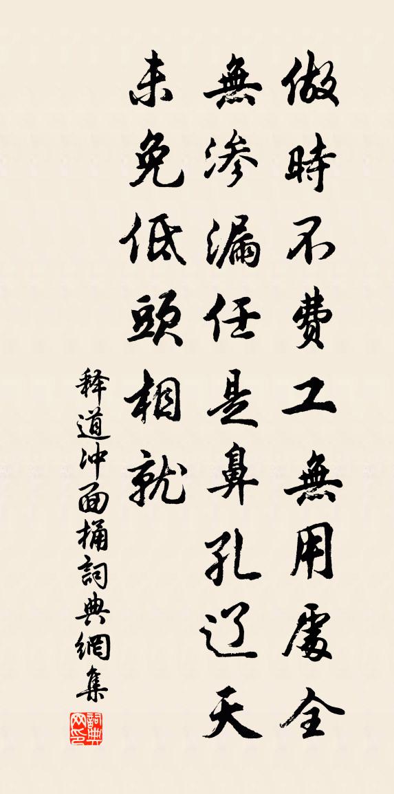 詩詞名句歷史字典書法欣賞書法字典國語詞典說文解字康熙字典古漢語字典標 題 作 者 詩 句 面桶作者:釋道沖 朝代:宋代面桶原文做時不費工無,用處全無滲漏。任是鼻孔遼天,未免低頭相就。詩詞問答問:面桶的作者是誰?答:釋道沖問:面桶寫於哪個朝代?答:宋代釋道沖面桶書法欣賞面桶書法作品詩詞推薦代馮似宗壽樓文昌楊簡〔宋代〕補袞天手,石色五首。砥柱中流,屹屹其守。為人所難,一辭萬口。文昌大名,太山北斗。題林文之詩卷二首劉克莊〔宋代〕君豪自合相推遜,吾老猶堪共切磋。有許奇奇並怪怪,直將少少勝多多。風人所作葩而正,治世之音樂以和。他日晴步西園文同〔宋代〕急雨正新霽,林端明晚霞。松亭臨曠絕,竹逕入欹斜。花落留深草,泉生上淺沙。稚圭貧亦樂,一部奏池蛙。病中初見梅花馳送季申樞密並以二絕李彌遜〔宋代〕老乾疏枝不耐冬,喜聞芳信擾青紅。應緣技癢爭春力,不待鉛華破晚風。雜感陸游〔宋代〕故舊書來訪死生,時聞剝啄叩柴荊。自嗟不及東家老,至死無人識姓名。崇德道中張鎡〔宋代〕破艇爭劃忽罷喧,野童村女闖籬邊。令人說著蘇堤路,花滿清明畫鼓船。馬口陳造〔宋代〕氛昏翳春曉,瞠目如堂蒙。停舟少須之,紅日碾高空。是時群山間,積雪未肯融。岩霧不盡收,似角藻繪功。屏障寄禪師韓偓〔唐代〕他心明與此心同,妙用忘言理暗通。氣運陰陽成世界,水浮天地寄虛空。劫灰聚散銖錙黑,日御賓士繭栗紅。萬物乾寧三年丙辰在奉天重圍作韓偓〔唐代〕仗劍夜巡城,衣襟滿霜霰。賊火遍郊坰,飛焰侵星漢。積雪似空江,長林如斷岸。獨憑女牆頭,思家起長嘆。感舊詩卷白居易〔唐代〕夜深吟罷一長吁,老淚燈前濕白須。二十年前舊詩卷,十人酬和九人無。題史院直舍魚鷺屏張耒〔宋代〕鍾鐘聲稀下直遲,秋暉初轉萬年枝。寒廳盡日誰相對,慚愧屏風兩鷺鷥。簡史子由主簿釋寶曇〔宋代〕君歸意定氣逾平,莫學秋蟲泣露聲。少日斲凋須妙指,莫年深穩見真情。為鄰古井無波日,試挈銅瓶待月明。獨抱七夕見與諸孫題乞巧文權德輿〔唐代〕外孫爭乞巧,內子共題文。隱映花奩對,參差綺席分。鵲橋臨片月,河鼓掩輕雲。羨此嬰兒輩,吹呼徹曙聞。再游北山和韻趙師秀〔宋代〕或行或坐水邊亭,處處春風戶不扃。飛絮伴人衰鬢白,遠山學我道衣青。迢遙更入煙霏去,仿佛如曾夢寐經。恐是克齋趙蕃〔宋代〕百川恣奔騰,底柱乃屹立。萬物蓋可流,疇能轉金石。世紛崢嶸來,何啻一敵國。油然反吾齋,夢覺春冰釋。屏居北郊自秋涉冬絕省人事觸緒有感吒之諷吟程公許〔宋代〕宿嗜本幽間,世途倦馳聘。迫芘門戶吒,強把冠佩整。如手誤一來,麾退諒予警。寬恩假郡寄,靜俟亦天幸。橐空番陽張君叔振觀予以其家雙瑞圖俾詩之叔振大姚勉〔宋代〕望月犀角明,涵星蚌胎聚。斯石臥龍枕,宜有蜿蜒具。龍頭君家舊,有子踵高步。層雲觸石出,四海望甘霔。西園十詠喬楠亭吳中復〔宋代〕古木西園勝,亭延上客過。色無花卉妒,堅為雪霜多。乾育千年秀,根含一氣和。明堂求厚棟,可得老岩阿。嘉熙戊戌季春一日畫溪吟客王子信為亞愚詩禪王諶〔宋代〕蘭芷流來水亦香,滿汀鷗鷺動斜陽。聲欸乃,間鳴榔,儂家只住岸西旁。耕者得古玉指環一首蘇籀〔宋代〕百世繁華墮劫灰,淒涼斷簪並擘釵。淑顏窈窕亦塵土,指環耕出田中來。野人辛勤務稼穡,兩手龜拆闢草萊。未知名句推薦桂花浮玉,正月滿天街,夜涼如洗。文徵明《念奴嬌·中秋對月》 馬逢伯樂而嘶,人遇知己而死。羅貫中《三國演義·第六十回》 問姓驚初見,稱名憶舊容。李益《喜見外弟又言別》 不用訴離觴,痛飲從來別有腸。蘇軾《南鄉子·和楊元素時移守密州》 處顛者危,勢豐者虧。王充《論衡·卷一·累害篇》 長風破浪會有時,直掛雲帆濟滄海。李白《行路難·其一》 橫槊題詩,登樓作賦,萬事空中雪文天祥《酹江月·和友驛中言別》 耐寒唯有東籬菊,金粟初開曉更清。白居易《詠菊》 二月江南花滿枝,他鄉寒食遠堪悲。孟雲卿《寒食》 花徑不曾緣客掃,蓬門今始為君開。杜甫《客至》
