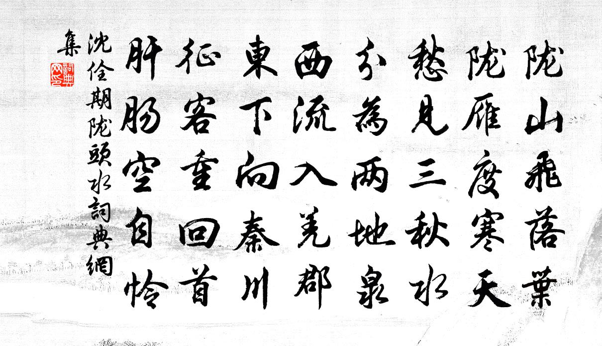 隴山飛落葉,隴雁度寒天。愁見三秋水,分為兩地泉。