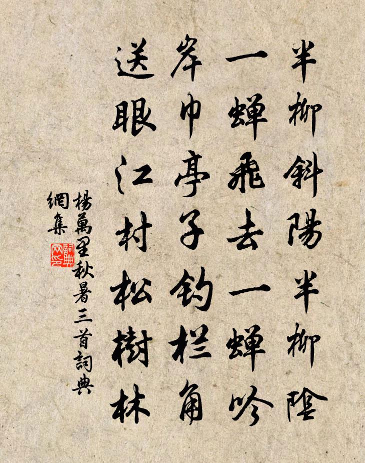 半柳斜陽半柳陰,一蟬飛去一蟬吟。岸巾亭子釣欄角,送眼江村松樹林。