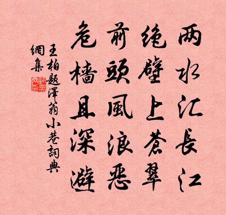 詩詞名句歷史字典書法欣賞書法字典國語詞典說文解字康熙字典古漢語字典標 題 作 者 詩 句 題澤翁小巷作者:王柏 朝代:宋代題澤翁小巷原文兩水匯長江,絕壁上蒼翠。前頭風浪惡,危檣且深避。詩詞問答問:題澤翁小巷的作者是誰?答:王柏問:題澤翁小巷寫於哪個朝代?答:宋代王柏題澤翁小巷書法欣賞題澤翁小巷書法作品詩詞推薦無夢令王哲〔元代〕啜盡廬仝七碗。方把趙州呼喚。烹碎這機關,明月清風堪玩。光燦。光燦。此日同超彼岸。黃旦宰江州德化縣楊億〔宋代〕外台論薦達乘輿,花縣弦歌製錦初。氣直公車曾諫獵,政清官舍舊縣魚。二林重結遺民社,五柳閒尋靖節居。好繼天池杜甫〔唐代〕天池馬不到,嵐壁鳥才通。百頃青雲杪,層波白石中。鬱紆騰秀氣,蕭瑟浸寒空。直對巫山出,兼疑夏禹功。魚龍宿水閣許渾〔唐代〕野客從來不解愁,等閒乘月海西頭。未知南陌誰家子,夜半吹笙入水樓。水調歌頭呂渭老〔宋代〕扁舟思獨往,檣影劃晴煙。要伴人隨明月,踏破水中天。誰信騎鯨高逝,空對筆端風雨,如泛楚江船。老子窮無賴頌古一百首釋智愚〔宋代〕春暖山桃次第紅,翩翩蝴蝶斬芳叢。驀然一陣狂風至,輥入花枝不見蹤。林間石林逋〔宋代〕入夜跏趺多待月,移時箕踞為看山。苔生晚片應知靜,雲動秋根合見閒。瘦鶴獨隨行藥後,高僧相對試茶間。疏篁董雙成舊隱二首白玉蟾〔宋代〕月戀梅窗呈水墨,風依竹檻奏笙竽。金幡玉勝無從見,尚想雲間唱步虛。舟中雨夜白居易〔唐代〕江雲暗悠悠,江風冷修修。夜雨滴船背,夜浪打船頭。船中有病客,左降向江州。直院自言願所以相拯之意有非毫楮所可宣者歸汪莘〔宋代〕傾國佳人默怨天,紅顏過子拜尊前。世家大族多兄嫂,獨得公姑分外憐。道中即事姚勉〔宋代〕我亦欲懷三赤珠,陸郎有母繄獨無。治生復人諫止,亦豈能有千頭奴。次韻酬郝潤甫二首方回〔宋代〕幸君三復甫田詩,髀肉空消萬里馳。真與群飛爭勇往,可能小退入深思。古人未必成功易,智士寧無見事遲。海闊題畫梅王冕〔元代〕君不見漢家功臣上麒麟,氣貌豈是尋常人?又不見唐家諸將圖凌煙,長劍大羽聯貂蟬。龍章終匪塵狀,虎頭乃是封三月二十一日泛舟十絕劉克莊〔宋代〕溪北溪南一雨通,山村佳處便掀篷。老身不怕無安處,著在漁翁保社中。春晝睡起偶書二首張嵲〔宋代〕閉戶長春草,日晏獨高眠。起步繞廣庭,愛此風景妍。青山羅廓外,白日當中天。坐見仰意濃,亦知花向殘。雞鳴鷓鴣天(和古樂府韻送游景仁將漕夔門)吳潛〔宋代〕去日春山淡翠眉。到家恰好整寒衣。人歸玉壘天應惜,舟過松江月半垂。千萬緒,兩三卮。送君不忍與君違。書來翠微堂陸游〔宋代〕萬頃青山只一溪,此中聊欲效真棲。尋深巧被閒雲到,破靜時聞幽鳥啼。羞有卑功追管晏,慚無高節比夷齊。困眠辛亥春別湖上諸友釋行海〔宋代〕江南花信厭春寒,鄉路迢迢去亦難。不解趨時人笑拙,每懷歸計自求安。明朝芳草空相憶,何處青山復共看。二十將到都先獻樞密太尉相公宋祁〔宋代〕再試州旟驗不才,卻將憔悴到中台。相車問罷同牛喘,大廈成時與燕來。今日謀猷須丙魏,他年賓客但鄒枚。西園頌古二十首釋了一〔宋代〕楊岐金圈與栗蓬,吞跳依前事不同。大海都來一口吸,更無南北與西東。名句推薦悽惻近長沙,地僻秋將盡楊冠卿《卜運算元·秋晚集杜句吊賈傅》 別浦今朝暗,羅帷午夜愁李賀《七夕》 春如舊。人空瘦。淚痕紅浥鮫綃透。陸游《釵頭鳳·紅酥手》 記得那年花下,深夜,初識謝娘時。韋莊《荷葉杯·記得那年花下》 憶昔霍將軍,連年此征討。高適《登百丈峰二首》 今夜偏知春氣暖,蟲聲新透綠窗紗。劉方平《夜月 / 月夜》 扁舟一棹歸何處?家在江南黃葉村。蘇軾《書李世南所畫秋景》 沙上並禽池上暝。雲破月來花弄影。張先《天仙子·水調數聲持酒聽》 故人何不返,春華復應晚。柳惲《江南曲》 路入南中,桄榔葉暗蓼花紅。歐陽炯《南鄉子·路入南中》