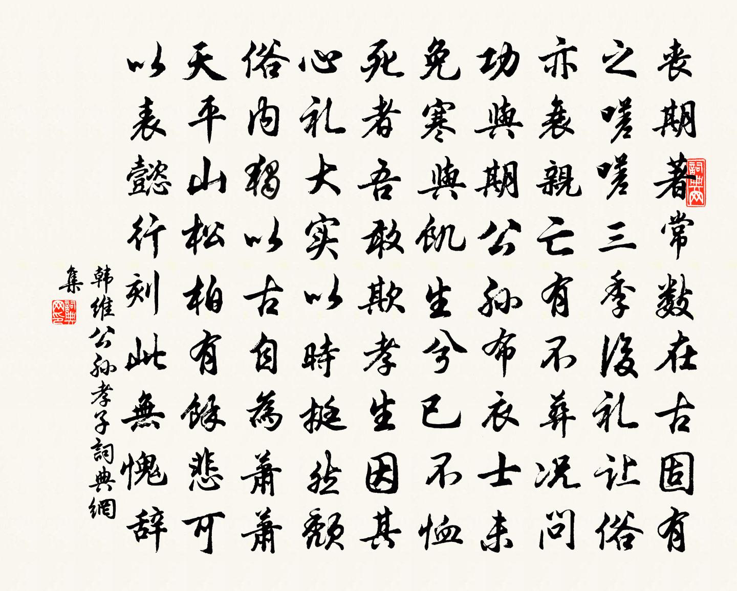 詩詞名句歷史字典書法欣賞書法字典國語詞典說文解字康熙字典古漢語字典標 題 作 者 詩 句 公孫孝子作者:韓維 朝代:宋代公孫孝子原文喪期著常數,在古固有之。嗟嗟三季後,禮讓俗亦衰。親亡有不葬,況問功與期。公孫布衣士,未免寒與飢。生兮已不恤,死者吾敢欺。孝生因其心,禮大實以時。挺然頹俗內,獨以古自為。蕭蕭天平山,松柏有餘悲,可以表懿行,刻此無愧辭。詩詞問答問:公孫孝子的作者是誰?答:韓維問:公孫孝子寫於哪個朝代?答:宋代韓維公孫孝子書法欣賞公孫孝子書法作品詩詞推薦二月十四日曉起看海棠八首楊萬里〔宋代〕老子侵星起,蜂兒先我忙。淵才無鼻孔,信口道無香。除夜方岳〔宋代〕挑盡寒燈歲又殘,一年彈指幾悲歡。人情何啻吳江冷,世路從來蜀道難。春酒正須今夕共,梅花並作百年看。團欒二月二十三日南雄解舟二首楊萬里〔宋代〕水沒蒲牙尚有梢,風吹屋角半無茅。急灘未到先聞浪,枯樹遙看只見巢。滿庭芳 寒夜康與之〔宋代〕霜幕風簾,閒齋小戶,素蟾初上雕籠。玉杯醽醁,還與可人同。古鼎沈煙篆細,玉筍破、橙橘香濃。梳妝懶,脂輕感遇之十九陳子昂〔唐代〕聖人不利己。憂濟在元元。黃屋非堯意。瑤台安可論。吾聞西方化。清淨道彌敦。奈何窮金玉。雕刻以為尊。雲構題官舍許渾〔唐代〕燕雁水鄉飛,京華信自稀。簟瓢貧守道,書劍病忘機。疊鼓吏初散,繁鐘鳥獨歸。高梧與疏柳,風雨似郊扉。翠微山居八首趙彥端〔宋代〕閒來石上臥長松,百衲袈裟破又縫。今日不愁明日飯,生涯只在缽杯中。點絳唇尹志平〔元代〕學道難成,無明觸處生煙火。招殃禍。時光虛過。生死如何躲。早悟前愆,更不生人我。還真箇。時時明破。下手答人語名教邵雍〔宋代〕開闢而來世教敷,其間雄者號真儒。修身有道名先覺,何代無人達奧區。煥若丹青經史義,明如日月聖人途。鯫生和松坡劉迂詩四首廖行之〔宋代〕白雲飛處祝融墟,心切平安一紙書。浪走毛生慚捧檄,清貧羊續漫懸魚。銀蟾浮彩秋尤好,金粟含香桂欲野。指日簡張寄翁秀才宋伯仁〔宋代〕徽外琴聲局外棋,此心能得幾人知。縱橫謾說三千家,陶寫須吟百一詩。秋到蓼花蟬噪後,雨敲荷葉釣歸時。西湖次芸居無題韻胡仲弓〔宋代〕身似浮雲不定棲,倚欄覓句聽鴉啼。洛陽紙價新來貴,吟得詩成就壁題。雲台治張繼先〔宋代〕漢朝人與道翱翔,是處遺蹤屬靜方。煙外桃花非俗種,風前柏實有餘香。杖穿翠靄通深窅,舟駕洪波入渺茫。千八金壇觀周弼〔宋代〕金壇深僻觀,鐘磬人少聞。山果猿偷墮,庭莎鹿臥分。木高猶帶雪,石冷不生雲。正爇黃連炷,相從拜老君。寄并州故人鄭獬〔宋代〕去年寒食柳溪頭,著意尋花醉未休。今日天涯最惆悵,滿江煙雨吊春愁。妙庭觀用東坡韻王銍〔宋代〕侍宴瑤池更不歸,茂陵千古掛余悲。祗今山下傳遺姓,應守瓊田舊玉芝。贈竇十馮道〔唐代〕燕山竇十郎,教子有義方。靈椿一株老,丹桂五枝芳。贈楊尉送湫水李石〔宋代〕天上妥雨水鳴渠,一龍任責固有餘。今年水來雨不集,彭民不及江中魚。以堰致水高百尺,靈湫在淵爍紅日。彭民茅李嶠〔唐代〕楚甸供王日,衡陽入貢年。麏包青野外,鴟嘯綺楹前。堯帝成茨罷,殷湯祭雨旋。方期大君錫,不懼小巫捐。和李明叔理定道中李師中〔宋代〕幽居日日數歸程,已寫華嚴兩帙經。門外初寒江氣白,嶺頭多雨曉痕青。曾逢飯顆潮山笠,應載鴟夷笑井瓶。客土名句推薦意少一字則義闕,句長一言則辭妨劉勰《文心雕龍·書記》 華燈縱博,雕鞍馳射,誰記當年豪舉。陸游《鵲橋仙·華燈縱博》 足國之道:節用裕民,而善臧其餘。荀子《荀子·富國》 馬上離魂衣上淚,各自個、供憔悴程垓《酷相思·月掛霜林寒欲墜》 聽於無聲,視於無形。戴聖《禮記·曲禮上》 白鳥一雙臨水立,見人驚起入蘆花。戴復古《江村晚眺》 君知否,是山西將種,曾系詩盟。劉過《沁園春·張路分秋閱》 我欲穿花尋路,直入白雲深處,浩氣展虹霓。黃庭堅《水調歌頭·遊覽》 下窺指高鳥,俯聽聞驚風。岑參《與高適薛據同登慈恩寺浮圖》 楊花榆莢無才思,惟解漫天作雪飛。韓愈《晚春》