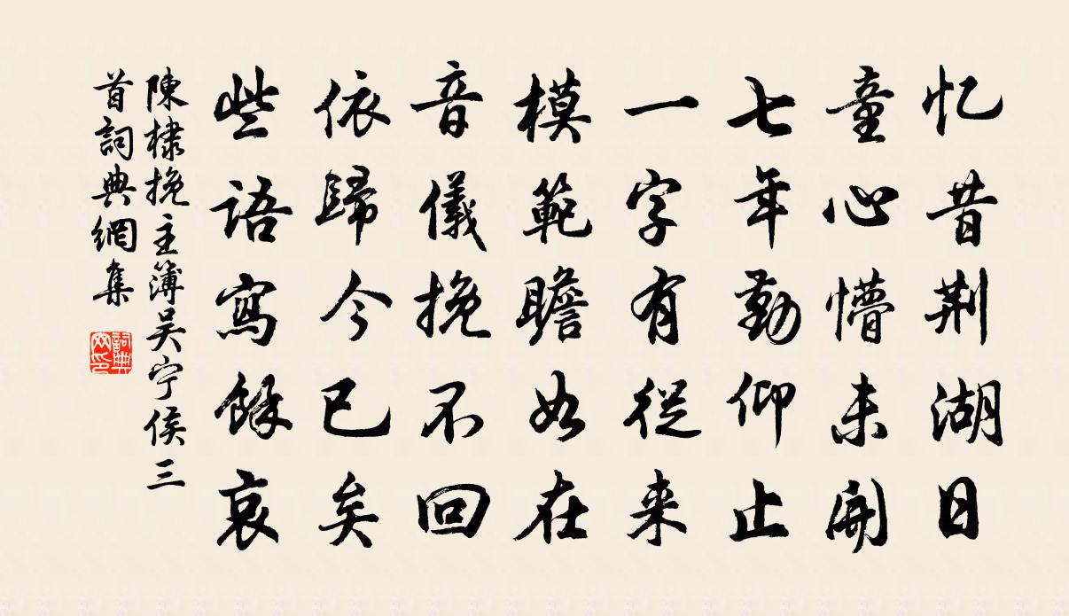 詩詞名句歷史字典書法欣賞書法字典國語詞典說文解字康熙字典古漢語字典標 題 作 者 詩 句 挽主簿吳寧侯三首作者:陳棣 朝代:宋代挽主簿吳寧侯三首原文憶昔荊湖日,童心懵未開。七年勤仰止,一字有從來。模範瞻如在,音儀挽不回。依歸今已矣,些語寫余哀。詩詞問答問:挽主簿吳寧侯三首的作者是誰?答:陳棣問:挽主簿吳寧侯三首寫於哪個朝代?答:宋代陳棣挽主簿吳寧侯三首書法欣賞挽主簿吳寧侯三首書法作品詩詞推薦雨杜甫〔唐代〕行雲遞崇高,飛雨靄而至。潺潺石間溜,汩汩松上駛。亢陽乘秋熱,百穀皆已棄。皇天德澤降,焦卷有生意。前雨送黃生兼寄二謝二首陳師道〔宋代〕城西兩謝俱能文,穰丞精悍吾所聞。每讀吾詩得人意,使不能文已可人。我昔謝公門下士,早年妄作功名意。如今聞邊將劉皋無辜受戮許渾〔唐代〕外監多假帝王尊,威脅偏裨勢不存。才許誓心安玉壘,已傷傳首動金門。三千客里寧無義,五百人中必有恩。卻賴新寒楊萬里〔宋代〕寒力欺誰得?知儂典卻衣。暮禽差慰眼,不作一行歸。秋夜對月錢惟演〔宋代〕顥氣中秋正,明河左界長。桂孤香易散,蚌冷淚先汪。飛蓋傾蘭坂,鳴琴厭燭房。玉盤浮浩露,素綆冰寒漿。浪白洞仙歌朱敦儒〔宋代〕何人不愛,是江梅紅綻。雪野寒空凍雲晚。照清溪綽約,粉艷先春,包絳萼、姑射冰肌自暖。上林花萬品,都借風登秦郵文游亭天壁亭長歌王奕〔宋代〕湖天澹澹湖水碧,湖風冉冉湖雲收。湖白幾頃菰米地,湖汊幾摺蘆花洲。幾千萬劫走盡夜,三十六鏡磨春秋。江南魏侯故城袁藏雲〔宋代〕獨向條陽翠靄行,杖藜徐步愴吟情。長河漫有懷山跡,故國空傳讓畔名。遠樹半遮乾木廟,斷雲猶鎖魏侯城。可憐鶯啼序葉潤〔宋代〕離騷困吟夢醒,訪台城舊路。問流水、東入滄溟,還解流轉西否。烏衣夢、浪傳故國,晴煙冉冉宮牆樹。念吟魂淒奉和鄭賓客相公攝官豐陵扈從之作(時充鹵簿使)權德輿〔唐代〕五輅導靈輼,千夫象繚垣。行宮移曉漏,彩仗下秋原。莫究希夷理,空懷渙汗恩。頤神方蹈道,傳聖乃尊尊。共祝水調歌頭王之道〔宋代〕敗屋擁破衲,驚飆漫颼颸。不離當處人見,操慧上藍游。彈指九州四海,浪說其來雲聚,其去等風休。莫作袈裟看北窗陸游〔宋代〕白首微官只自囚,青燈明滅北窗幽。五更風雨夢千里,半世江湖身百憂。壯志已孤金鎖甲,倦遊空攬黑貂裘。灞亭哭胡處士曹松〔唐代〕丘中久不起,將謂詔書來。及見凌雲說,方知掩夜台。白衣歸北路,玄造亦遺才。世上亡君後,詩聲更大哉。致齋太一宮劉筠〔宋代〕紫館天神貴,綸闈地望清。齋心奉蠲潔,攝事罄誠明。殿翼如軒翥,壇垓類削成。直宮琳札密,太宰繡衣輕。薜荔和顏長官百詠朱門朱繼芳〔宋代〕百斛明珠米在倉,沉香火底捻銀簧。人生行樂那須許,多少邊兵未有糧。柑花張九成〔宋代〕群芳落盡只青青,獨有柑花照眼明。已許江梅來結友,未容岩桂擅清名。芬芬蘭麝三春底,濯濯冰霜一座傾。更待許子儒寺丞輓詩二首李彌遜〔宋代〕壯歲天衢上,舂容伯仲間。握蘭同省戶,持橐綴朝班。投老歸鄉縣,從君臥故山。並游零落蓋,回首一潸潸。題延賓亭李新〔宋代〕秋葉春風自一村,主人高誼揖公孫。未容急去須投轄,卻恐重來不置門。歌徹曉雲歸曲席,酒醒殘月照空樽。何時題三茅峰張榘〔宋代〕巨靈握奇石,飛落人間世。怒拳一擊破,高下成鼎峙。三光發其精,吾岳借之氣。精氣久以靈,稍稍見奇異。香之掛冠李瓘〔宋代〕古雲學古斯入官,我見學易而官難。平生透破夢覺關,本來面目只儒酸。吾親不侍若為歡,不如歸去臥林間。殿前名句推薦足國之道:節用裕民,而善臧其餘。荀子《荀子·富國》 萬里平湖秋色冷,星辰垂影參然。牛希濟《臨江仙·洞庭波浪颭晴天》 一寸相思千萬緒。人間沒個安排處。李冠《蝶戀花·春暮》 生怕見花開花落,朝來塞雁先還。辛棄疾《漢宮春·立春日》 眉睫才交,夢裡便不能張主;眼光落地,泉下又安得分明。陳繼儒《小窗幽記·集醒篇》 慮澹物自輕,意愜理無違。謝靈運《石壁精舍還湖中作》 兵不完利,與無操者同實管仲《管子·參患》 當年燕子知何處,但苔深韋曲,草暗斜川。張炎《高陽台·西湖春感》 青青園中葵,朝露待日晞。佚名《長歌行》 擁紅妝,翻翠蓋,花影暗南浦。高觀國《祝英台近·荷花》