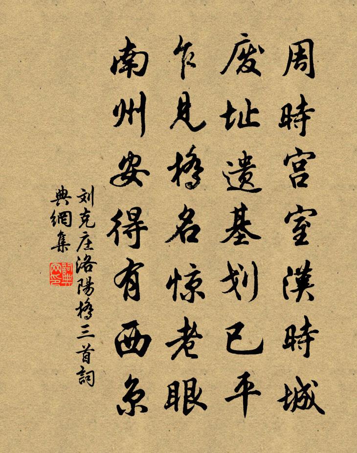 詩詞名句歷史字典書法欣賞書法字典國語詞典說文解字康熙字典古漢語字典標 題 作 者 詩 句 洛陽橋三首作者:劉克莊 朝代:宋代洛陽橋三首原文周時宮室漢時城,廢址遺基劃已平。乍見橋名驚老眼,南州安得有西京。詩詞問答問:洛陽橋三首的作者是誰?答:劉克莊問:洛陽橋三首寫於哪個朝代?答:宋代問:劉克莊的名句有哪些?答:劉克莊名句大全劉克莊洛陽橋三首書法欣賞洛陽橋三首書法作品詩詞推薦念奴嬌趙長卿〔宋代〕夕陽底盡,望楚天空闊,稀星簾幕。暮靄橫江煙萬縷,照水參差樓閣。兩兩三三,樓前歸鷺,飛過欄乾角。霜風何繩翁初度程公許〔宋代〕男兒十六已非孩,心地迷雲漸剔開。雖複詞章當藻繪,要從德性植根荄。謙和孝友能無愧,富貴功名付儻來。但願懷方嚴州仇遠〔宋代〕八十一年身,棲遲客館貧。登門曾有我,銘墓竟何人。醉夢高樓月,悲歌故國春。可能函玉骨,歸葬練溪濱。謝紫岩居士釋宗杲〔宋代〕紫岩分惠建溪茗,妙喜答以青州衫。得人一牛還一馬,前三三與後三三。送友人游梅湖李白〔唐代〕送君游梅湖,應見梅花發。有使寄我來,無令紅芳歇。暫行新林浦,定醉金陵月。莫惜一雁書,音塵坐胡越。和睦州盧中丞題茅堂十韻吳融〔唐代〕有士當今重,忘情自古稀。獨開青嶂路,閒掩白雲扉。石累千層險,泉分一帶微。棟危猿競下,檐回鳥爭歸。煙冷箜篌謠二首寄季長少卿陸游〔宋代〕少壯離別時,回顧日月長;會合終有期,何恨天一方。我齒如敗屐,君發如新霜,余日復幾何,萬里遙相望。欲泣得江西報六言十首劉克莊〔宋代〕巧發過如蠆毒,困鬥尤防獸窮。老種有騎河語,小姚無劫寨功。口號吳王美人半醉李白〔唐代〕風動荷花水殿香,姑蘇台上宴吳王。西施醉舞嬌無力,笑倚東窗白玉床。同顏使君真卿、李侍御萼游法華寺登鳳翅山望太湖皎然〔唐代〕雙峰開鳳翅,秀出南湖州。地勢抱郊樹,山威增郡樓。正逢周柱史,來會魯諸侯。緩步凌彩蒨,清鐃發颼飀。披雲富東山海師文同〔宋代〕上人者何人,富樂之禪客。成都昔嘗見,時已坐法席。別來二十年,嗟此出處隔。昨過芙蓉溪,舍楫得攜策。盤盤自遣四首張耒〔宋代〕誰雲造化本無情,利害乘除理甚平。莫逐眾情生慍喜,君看三四孰虧盈。偈頌一百二十三首釋普度〔宋代〕露滴滴,風淒淒。黃花香滿路,何獨在樂籬。高低普應,步步相隨。南兵錢易〔宋代〕曾見南兵苦,征遼事亦如。金瘡寒長肉,紙甲雨生蛆。山小虀霜骨,河枯臛腐魚。黎元無處哭,丁戶日相疏。鉛山喻良能〔宋代〕三月春風暖更飄,滿山嫩綠正嬌嬈。幾聲勸我脫破袴,何處撩人婆餅焦。甘旨僅能供素髮,涓埃未有答皇朝。吾廬登城五首劉克莊〔宋代〕漢人稱勁粵,累世不加兵。狂卒才三百,如何便縋城。遠遊陸游〔宋代〕遠遊行復歲華新,嬾學劉郎問大鈞。一點不蒙稽古力,十分合作臥雲身。苦寒與酒頓增價,小雨為梅先辟塵。擬佩奉和聖制送張尚書巡邊胡皓〔唐代〕燕公為漢將,武德奉文思。利用經戎莽,英圖葉聖詒。塞沙制長策,窮石卷搖旗。萬里要相賀,三邊又在茲。棱威自中都歸題勝業寺古柏廖行之〔宋代〕昔聞南山下,有柏古且奇。書痴守寒窗,一見嗟無期。歸從軟紅塵,乃識蒼虬姿。青青十畝蔭,凜凜千年枝。山靈次韻王知軍夜坐有懷陳造〔宋代〕夢想天兵下不其,壯心搖盪受風枝。攝衣試作聽雞舞,窮我庸非造物兒。腰下不懸蘇子印,城中人笑董生帷。西來名句推薦問他有甚堪悲處?思量卻也有悲時,重陽節近多風雨。辛棄疾《踏莎行·庚戌中秋後二夕帶湖篆岡小酌》 單者易折,眾則難摧魏收《魏書·列傳·卷八十九》 我寄愁心與明月,隨君直到夜郎西。李白《聞王昌齡左遷龍標遙有此寄》 重五山村好,榴花忽已繁。陸游《乙卯重五詩》 青苔滿階砌,白鳥故遲留。杜牧《題揚州禪智寺》 不用訴離觴,痛飲從來別有腸。蘇軾《南鄉子·和楊元素時移守密州》 別來春半,觸目柔腸斷。李煜《清平樂·別來春半》 野曠天低樹,江清月近人。孟浩然《宿建德江》 如今但暮雨,蜂愁蝶恨,小窗閒對芭蕉展。呂渭老《薄倖·青樓春晚》 既秉上皇心,豈屑末代誚。謝靈運《七里瀨》