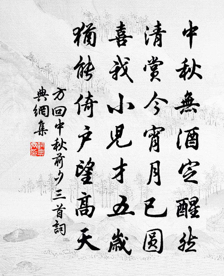 詩詞名句歷史字典書法欣賞書法字典國語詞典說文解字康熙字典古漢語字典標 題 作 者 詩 句 中秋前夕三首作者:方回 朝代:宋代中秋前夕三首原文中秋無酒定醒然,清賞今宵月已圓。喜我小兒才五歲,猶能倚戶望高天。詩詞問答問:中秋前夕三首的作者是誰?答:方回問:中秋前夕三首寫於哪個朝代?答:宋代方回中秋前夕三首書法欣賞中秋前夕三首書法作品詩詞推薦李允蹈以詩見詒走筆和之李號能詩諸貴人客也孫應時〔宋代〕四海夥人物,百年各馳驅。持身付埃塵,擾擾竟何須。臨邛家四壁,洛北飯一孟。白首頗光勞,不愧初心無。男兒送俞節推(汝尚之子,汝尚字退翁)蘇軾〔宋代〕吳興有君子,淡如朱絲琴。一唱三太息,至今有遺音。嗟余與夫子,相避如辰參。(退翁官於蜀,余在京師,余歸奉和襲美寄滑州李副使員外陸龜蒙〔唐代〕洛生閒詠正抽毫,忽傍旌旗著戰袍。檄下連營皆破膽,劍離孤匣欲吹毛。清秋月色臨軍壘,半夜淮聲入賊壕。除卻家承事輓詩魏了翁〔宋代〕昆火玉孚尹,喬松冬夏青。塵沙吹海立,風月半窗醒。適意問芒屩,無心待屏星。風流那復見,食報在寧馨。次韻王倅大梵寺山亭夜雨張嵲〔宋代〕溪山含變態,可玩不可說。西嶺澹斜暉,前山明積雪。潭空游鱗出,景晏飛鳥絕。遠嶼上孤煙,平沙散疏樾。天涯次韻感春五首黃庭堅〔宋代〕我與子桑友,既往雨彌旬。交情未曾改,天地忽趨新。東風無行跡,佳氣滿城闉。麥苗生陂隴,嘆息不食陳。誰能憶維揚張翥〔元代〕蜀岡東畔竹西樓,十五年前爛漫遊。豈意繁華今劫火,空懷歌吹古揚州。親朋未報何人在,戰伐寧知幾日休!惟有慕容簿送題寶峰石刻並中秋詞以詩謝之舒邦佐〔宋代〕步屧尋僧到日西,亂山深處見新碑。卻驚天上披風手,亦卷波瀾入小詩。徐浩謝賜書帖贊岳珂〔宋代〕南陽素書,浩之素珍。而本朝觀浩之書,又皆以為絕倫。今視諸賢之跋,凡十有三人。歲月幾何,又不能仿佛其清文饒自昌國以詩見寄次韻二首陳瓘〔宋代〕海邦渺渺知何在,風入高帆頃刻過。何似一樽湖上酒。月明安穩照寒波。初秋小雨陸游〔宋代〕雨來一洗肺肝熱,風過遠吹禾黍香。誰識山翁歡喜處,短檠燈火夜初長。仲宣樓落成和吳深源制參韻李曾伯〔宋代〕東都一星下東壁,粲以文鳴斗南一。玄德髀肉瞞白頭,俯仰宇宙俱漚浮。主人景升帝王胄,風土更羨遠中州。安能送方外上人 / 送上人劉長卿〔唐代〕孤雲將野鶴,豈向人間住。莫買沃洲山,時人已知處。滿庭芳 勸道友馬鈺〔元代〕憐妻愛妾,憂兒愁女。一心千頭萬緒。競利爭名來往,豈曾停住。如蜂採花成蜜,謂誰甜、獨擔辛苦。迷迷地,似烏石山僧舍盛松坡〔宋代〕小徑通山寺,飛檐抹曉霞。松風驚蝶夢,梵磬雜蜂衙。僧臘菩提樹,禪心菡萏花。詩成因抵掌,飛起欲棲雅。再繼土修三絕王洋〔宋代〕一身何適非真盜,淺識常虞世俗識。我俗似君專盜酒,常謀卜夜不謀歸。贈李十六錢起〔唐代〕半面喜投分,數年欽盛名。常思夢顏色,誰憶訪柴荊。忽聽款扉響,欣然倒屣迎。蓬蒿駐騶馭,雞犬傍簪纓。酌水甘露堂王義山〔宋代〕掃除黃葉拂塵埃,講座雖虛尚有台。歲晚喬松典型在,煙波疊嶂畫圖開。不須瑞露從天降,應是慈云為客來。須信訪友人郊居劉滄〔唐代〕登原過水訪相如,竹塢莎庭似故居。空塞山當清晝晚,古槐人繼綠陰余。休彈瑟韻傷離思,已有蟬聲報夏初。醉唱江頭張籍〔唐代〕晚步隨江遠,來帆過眼頻。試尋新住客,少見故鄉人。回首憐歸翼,長吟任此身。應同南浦雁,更見嶺頭春。名句推薦道不拾遺,民不妄取劉向《戰國策·秦一·衛鞅亡魏入秦》 今宵樓上一尊同。雲濕紗窗。辛棄疾《一剪梅·中秋元月》 松江上,念故人老矣,甘臥閒雲。吳文英《沁園春·送翁賓暘游鄂渚》 窈窕淑女,君子好逑。佚名《關雎》 性孤高似柏,阿嬌金屋。陸容《滿江紅·詠竹》 望征路愁迷,離緒難整陸叡《瑞鶴仙梅》 斷送一生憔悴,只銷幾個黃昏。趙令畤《清平樂·春風依舊》 學之染人,甚於丹青。房玄齡《晉書·列傳·第五十二章》 白日來深殿,青雲滿後塵杜甫《寄李十二白二十韻》 別來半歲音書絕,一寸離腸千萬結。韋莊《應天長·別來半歲音書絕》