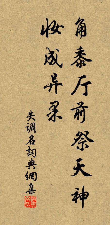 詩詞名句歷史字典書法欣賞書法字典國語詞典說文解字康熙字典古漢語字典標 題 作 者 詩 句 失調名作者:佚名 朝代:宋代失調名原文角黍廳前,祭天神、妝成異果。詩詞問答問:失調名的作者是誰?答:佚名問:失調名寫於哪個朝代?答:宋代問:失調名是什麼體裁?答:詞問:佚名的名句有哪些?答:佚名名句大全佚名失調名書法欣賞失調名書法作品詩詞推薦清平樂·禁庭春晝李白〔唐代〕禁庭春晝,鶯羽披新繡。百草巧求花下斗,只賭珠璣滿斗。日晚卻理殘妝,御前閒舞霓裳。誰道腰肢窈窕,折旋笑題暇亭釋文珦〔宋代〕人與山同靜,亭巡紫翠間。無時臨鏡水,終日見南山。子敬心猶雜,淵明意自閒。坐來輕世事,薄暮鳥飛還。金字經盧摯〔元代〕夢中邯鄲道,又來走這遭。須不是山人索價高。時自嘲,虛名無處逃。誰驚覺,曉霜侵鬢毛。菩薩蠻·回文蘇軾〔宋代〕嶠南江淺紅梅小,小梅紅淺江南嶠。窺我向疏籬,籬疏向我窺。老人行即到,到即行人老。離別惜殘枝,枝殘惜別送南少府歸壽春韓翃〔唐代〕人言壽春遠,此去先秋到。孤客小翼舟,諸生高翅帽。淮風生竹簟,楚雨移茶灶。若在八公山,題詩一相報。和致仕張尚書新創道院徐鉉〔唐代〕梓澤成新致,金丹有舊情。掛冠朝睡足,隱几暮江清。藥圃分輕綠,松窗起細聲。養高寧厭病,默坐對諸生。別圓澄禪師陳師道〔宋代〕法施老人臥不出,呼我取別行問疾。摩盤拭箸勸一飽,少待須臾莫蒼猝。早年著眼覷文字,萬卷初無一言契。多生蘇大侍御訪江浦,賦八韻記異杜甫〔唐代〕龐公不浪出,蘇氏今有之。再聞誦新作,突過黃初詩。乾坤幾反覆,揚馬宜同時。今晨清鏡中,勝食齋房芝。余發題金陵驛王安石〔宋代〕重岡古道春風裡,草色花光似故人。卻喜此身今漫浪,回家隨處得相親。挽袁潔齋侍郎三首劉宰〔宋代〕成已寧遺物,存心不外天。典刑高一代,源派續諸賢。實理元無妄,斯文更有傳。澤流江漢遠,奎壁映魁躔。和待制龐學士寄獻宮師相公之作宋祁〔宋代〕溢滎清溜接家田,白首辭榮鉉席賢。直使斯人歌畫法,後容吾黨記歸年。五禽習戲探仙術,萬法觀空證佛緣。聞道句曾致堯〔宋代〕更無塵土當軒起,只有松蘿繞檻生。水龍吟(青絲木香)黃霽宇〔宋代〕麗華一握青絲,金珠粟粟香環里,春窺綺閣,新妝風舞,銖衣如碎。翠鳳蒼虬,騎來下界,蝶驚蜂避。甚三生富貴臥疾,答劉道士錢起〔唐代〕白露蠶已絲,空林日淒清。寥寥晝扉掩,獨臥秋窗明。寶字比仙藥,羽人寄柴荊。長吟想風馭,恍若升蓬瀛。玉樓春歐陽修〔宋代〕沈沈庭院鶯吟弄。日暖煙和春氣重。綠楊嬌眼為誰回,芳草深心空自動。倚闌無語傷離鳳。一片風情無處用。尋思伊犁將軍奏土爾扈特汗渥巴錫率全部歸順詩事乾隆〔清代〕土爾扈特部,昔汗阿玉奇,今來渥巴錫,明背俄羅斯。向化非招致,頒恩應博施,舍楞逃復返,彼亦合無辭。衛拉寄山中叟齊己〔唐代〕青泉碧樹夏風涼,紫蕨紅粳午爨香。應笑晨持一盂苦,腥膻市里叫家常。和楊尚書罷相後夏日游永安水亭兼招本曹楊侍郎同行白居易〔唐代〕道行無喜退無憂,舒捲如雲得自由。良冶動時為哲匠,巨川濟了作虛舟。竹亭陰合偏宜夏,水檻風涼不待秋。遙愛江夏送張丞李白〔唐代〕欲別心不忍,臨行情更親。酒傾無限月,客醉幾重春。藉草依流水,攀花贈遠人。送君從此去,回首泣迷津。浣溪沙(以鴛鴦梅送曾守,是日,曾守攜家游南園)洪适〔宋代〕報導傾城出洞房。水邊疏影弄清香。風流更有小鴛鴦。蟬鬢半含花下笑,蛾眉相映醉時妝。夢魂不到白雲鄉。名句推薦翻空白鳥時時見,照水紅蕖細細香。蘇軾《鷓鴣天·林斷山明竹隱牆》 但屈指西風幾時來,又不道流年暗中偷換。蘇軾《洞仙歌·冰肌玉骨》 時人不識凌雲木,直待凌雲始道高。杜荀鶴《小松》 酒逢知己飲,詩向會人吟。佚名《增廣賢文·上集》 新竹高於舊竹枝,全憑老乾為扶持。鄭燮《新竹》 凡戰,所謂攻者,知彼者也。佚名《百戰奇略·第四卷·攻戰》 少婦今春意,良人昨夜情。沈佺期《雜詩三首·其三》 知之曰明哲,明哲實作則。佚名《尚書·商書·說命上》 馬驕泥軟錦連乾,香袖半籠鞭。薛昭蘊《喜遷鶯·清明節》 肅肅花絮晚,菲菲紅素輕。杜甫《春遠 / 春運》