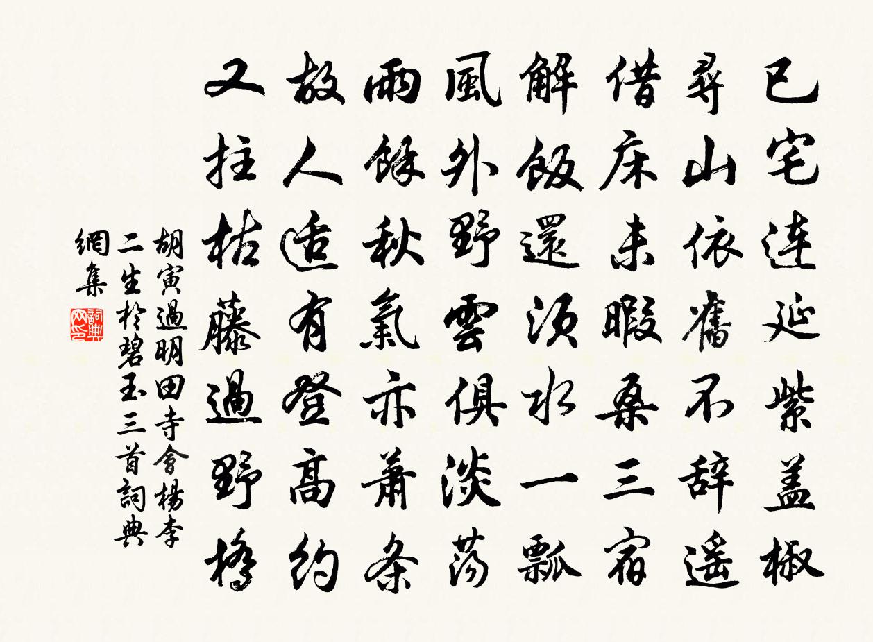 詩詞名句歷史字典書法欣賞書法字典國語詞典說文解字康熙字典古漢語字典標 題 作 者 詩 句 過明田寺會楊李二生於碧玉三首作者:胡寅 朝代:宋代原文已宅連延紫蓋椒,尋山依舊不辭遙。借床未暇桑三宿,解飯還須水一瓢。風外野雲俱淡盪,雨余秋氣亦蕭條。故人適有登高約,又拄枯藤過野橋。詩詞問答問:《過明田寺會楊李二生於碧玉三首》的作者是誰?答:胡寅問:該詩寫於哪個朝代?答:宋代書法欣賞過明田寺會楊李二生於碧玉三首書法作品詩詞推薦和人伏日李復〔宋代〕太極剖元氣,五行均四時。代謝密循環,母子相挈維。土散無定位,金德乘火馳。天刑發殺機,閉藏不敢施。胚胎金縷曲 乙未清明張之翰〔元代〕風雨驚春暮。恨天涯、留春未辦,卻留余住。時序匆匆催老大,又早飛花落絮。算禁得、清明幾度。試倚危欄西北春詞(一作沈亞之詩)施肩吾〔唐代〕黃鳥啼多春日高,紅芳開盡井邊桃。美人手暖裁衣易,片片輕雲落剪刀。送錢遜叔出守襲慶賜出身除職王之道〔宋代〕賜對金鑾下九天,旋聞熊軾為驅前。人從芸閣初分直,桂折蟾宮查德仙。刺史江山聊復爾,翰林風月自依然。下車壽張亨泉提刑三首吳泳〔宋代〕末學紛紛競為人,公能康濟自家身。形軀元備人間世,肝肺盡收天下春。觀我自應知愛重,識心須會起經綸。壽觥康定軍使高秘丞自襄陽農寺勾業寺丞自光化相曾鞏〔宋代〕千里分符漢上城,為僚方喜得時英。已無楚澤行吟意,便有南陽坐嘯名。驥力用來精爽緊,鵷行歸去羽翰輕。須知朝中措(客中感春)趙孟堅〔宋代〕擔頭看盡百花春。春事只三分。不似鶯鶯燕燕,相將紅杏芳園。名韁易絆,征塵難浣,極目銷魂。明日清明到也,挽史館資政木石尢公三首劉克莊〔宋代〕往年群玉頂,典領偶然同。我去如廷秀,君來似放翁。同聃駕牛出,魯叟感麟逢。縱有招魂些,誰為寄浙中。薄了固保義寫予真請贊釋正覺〔宋代〕靈靈而真,默默而神。眉毛低蓋眼,鼻孔真欺唇。千華上何須問佛,百草頭自然有春。一微塵里也來說法,三千界挽宋泉粹劉克莊〔宋代〕連牆終歲小相過,時聽書聲警睡魔。懶續膠弦歡意薄,雖分風月皺眉多。廉如玉雪誰知者,仕止牙緋奈命何。昨送浣溪沙晏幾道〔宋代〕莫問逢春能幾回,能歌能笑是多才。露花猶有好枝開。綠鬢舊人皆老大,紅梁新燕又歸來。盡須珍重掌中杯。斛石山曉望寄呂侍御薛濤〔唐代〕曦輪初轉照仙扃,旋擘煙嵐上窅冥。不得玄暉同指點,天涯蒼翠漫青青。寄元孚道人陳陶〔唐代〕梵宇章句客,佩蘭三十年。長乘碧雲馬,時策翰林鞭。曩事五嶽游,金衣曳祥煙。高攀桐君手,左倚鸑鷟肩。哭玉病中喜李仲霍王子載見過晁公溯〔宋代〕春風餞余寒,山雨留暝色。杜門正臥病,俯仰空四壁。庭空鳥雀至,窗破風雨入。擁爐意無聊,胸次百憂集。肉消至揚州文天祥〔宋代〕飄零無緒嘆途窮,搔首踟躕日已中。何處人聲似潮泝,黑雲驟起滿山風。將之衡陽道中作張祜〔唐代〕萬里南方去,扁舟泛自身。長年無愛物,深話少情人。醉臥襟長散,閒書字不真。衡陽路猶遠,獨與雁為賓。晚宿大塘市李曾伯〔宋代〕僕僕征鞍日向西,相將山 * 湘漓。風多火種春猶燒,客每露行朝未炊。燕傍人家猶細認,馬行官道似曾知。眼前春日二首呈黃子邁大卿戴復古〔宋代〕帝里風光二月新,西湖幾隊踏青人。杏花時節偏饒雨,楊柳門牆易得春。或是或非塵里事,無窮無達醉中身。五陵十二年冬江西溫暖喜元八寄金石棱到因題此詩白居易〔唐代〕今冬臘候不嚴凝,暖霧溫風氣上騰。山腳崦中才有雪,江流慢處亦無冰。欲將何藥防春瘴?只有元家金石棱。紅袖扶 酌酒王寂〔元代〕風拂冰檐,鎮犀動、翠簾珠箔。秘壺暖、宮黃破萼。寶薰閒卻。玻璃瓮頭,漉雪擘新橙,秀色浮杯杓。雙蛾小,驪名句推薦西北望長安,可憐無數山辛棄疾《菩薩蠻·書江西造口壁》 問元戎早晚,鳴鞭徑去,解天山箭。元好問《水龍吟·從商帥國器獵於南陽同仲澤鼎玉賦此》 行善濟人,人遂得以安全,即在我亦為快意王永彬《圍爐夜話·第五一則》 樓前綠暗分攜路,一絲柳、一寸柔情。吳文英《風入松·聽風聽雨過清明》 素娥惟與月,青女不饒霜。李商隱《十一月中旬至扶風界見梅花》 水是眼波橫,山是眉峰聚王觀《卜運算元·送鮑浩然之浙東》 輕肌弱骨散幽葩,更將金蕊泛流霞。蘇軾《趙昌寒菊》 有兼聽之明,而無矜奮之容;有兼覆之厚,而無伐德之色。荀子《荀子·正名》 夜來小雨新霽,雙燕舞風斜。万俟詠《訴衷情·送春》 執子之手,與子偕老。詩經《擊鼓》