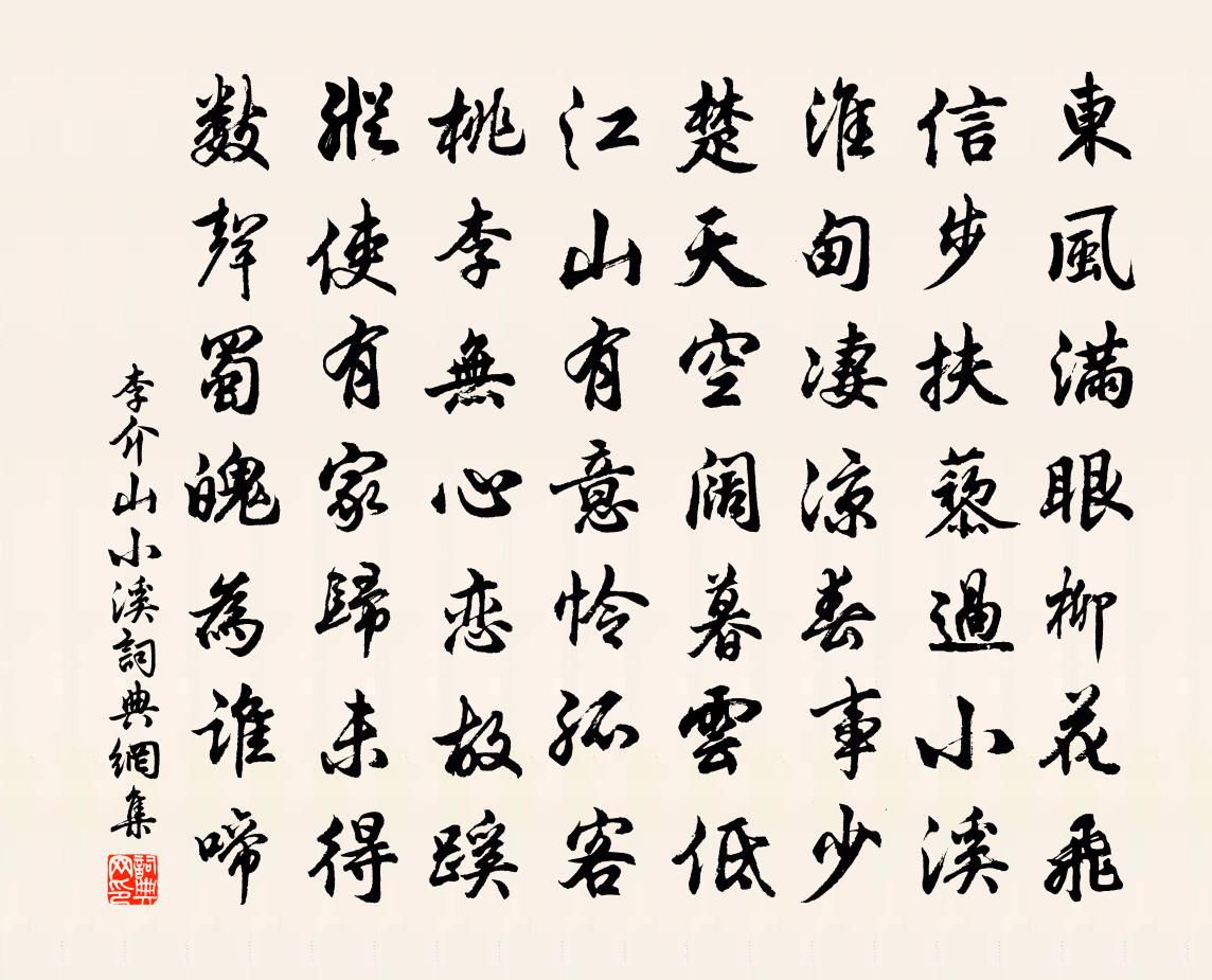 詩詞名句歷史字典書法欣賞書法字典國語詞典說文解字康熙字典古漢語字典標 題 作 者 詩 句 小溪作者:李介山 朝代:宋代小溪原文東風滿眼柳花飛,信步扶藜過小溪。淮甸淒涼春事少,楚天空闊暮雲低。江山有意憐孤客,桃李無心戀故蹊。縱使有家歸未得,數聲蜀魄為誰啼。詩詞問答問:小溪的作者是誰?答:李介山問:小溪寫於哪個朝代?答:宋代李介山小溪書法欣賞小溪書法作品詩詞推薦赴直馬上觀市宋祁〔宋代〕上直驅羸馬,凌晨望百廛。墟喧滌器市,簫暖賣餳天。流水隨輕轂,翻花送駛韉。區區市門吏,無復子真仙。樓城敘別牟融〔唐代〕故人為客上神州,傾蓋相逢感昔游。屈指年華嗟遠別,對床風雨話離愁。清樽不負花前約,白髮驚看鏡里秋。此際初八日微雨明日猶有涼意作兩絕句趙蕃〔宋代〕小雨那能救旱禾,定催粟玉放庭柯。一從賦罷橫斜影,誰復風流似汝多。少林寺詩李廌〔宋代〕禪老家風古少林,道場遺蹟蔽煙岑。山遮石腳斜陽早,雲礙鐘聲出谷深。只履度關天杳杳,九年面壁海沉沉。欲知金剛隨機無盡頌離相寂滅分第十四釋印肅〔宋代〕千峰消積雪,岩溜聲清切。回首睹梅開,疑是梅花裂。小品佚名〔宋代〕正天氣淒涼,鳴幽砌,向枕畔、偏惱愁心,盡夜苦吟。晚過西湖吳大有〔宋代〕曙色溟溟濕緼袍,涌金門下上輕橈。五更鐘鼓星初沒,兩岸樓台霧未消。路傍柳洲人語近,山連葛嶺鶴聲遙。沖寒祥符寺九曲觀燈蘇軾〔宋代〕紗籠擎燭迎門入,銀葉燒香見客邀。金鼎轉丹光吐夜,寶珠穿蟻鬧連宵。波翻焰里元相激,魚舞湯中不畏焦。明日寄喻叔奇丈二首趙蕃〔宋代〕飲我長安酒,歌公亦好詩。試思猶宿昔,忽念已差池。要識園林好,何由杖履隨。有時觀敘夢,亦復嘆吾衰。經李翰林墓殷文圭〔唐代〕詩中日月酒中仙,平地雄飛上九天。身謫蓬萊金籍外,寶裝方丈玉堂前。虎靴醉索將軍脫,鴻筆悲無令子傳。十字翠岩璣禪師真贊黃庭堅〔宋代〕一步一彌勒,一句一釋迦。逢人雖不殺,袖裡有青蛇。是翠岩則二,非翠岩則別。彌勒下生時,亦作如是說。下第述懷張蠙〔唐代〕十載長安跡未安,杏花還是看人看。名從近事方知險,詩到窮玄更覺難。世薄不慚雲路晚,家貧唯怯草堂寒。如何下江南向夔州張說〔唐代〕天明江霧歇,洲浦棹歌來。綠水逶迤去,青山相向開。城臨蜀帝祀,雲接楚王台。舊知巫山上,遊子共徘徊。得鶴林書白玉蟾〔宋代〕東望吾彭耜,晴窗墜一蛛。萬金何足抵,尺紙寄來迂。夜後燈花喜,朝來鵲語符。手中舒復卷,久別可長吁。戲贈杜甫李白〔唐代〕飯顆山頭逢杜甫,頂戴笠子日卓午。借問別來太瘦生,總為從前作詩苦。清平樂(樞密叔父生日)史浩〔宋代〕萬花如繡。淑景熏晴晝。一曲齊稱千歲壽。歡擁兩行紅袖。當年西府橫翔。急流穩上仙鄉。笑閱磻溪日月,行看尚獨舫軒釋智愚〔宋代〕蹤跡渾如漾綠漪,畫橈曾不近漁磯。有時夢落秋江去,短笛橫吹戴月歸。寄五師北山講主釋雲岫〔宋代〕一書不問不相違,指跡慕歸誰救遲。鶯脰湖邊官驛路,舟車十里到鳧磯。行香子 案歷代詩餘卷一百二九錄此首外又錄明本〔元代〕水竹之居。吾愛吾廬。石粼粼、亂砌階除。軒窗隨意,小巧規模。卻也清幽,也瀟灑,也安舒。懶散無拘。此等如天津橋晚望顧非熊〔唐代〕晴登洛橋望,寒色古槐稀。流水東不息,翠華西未歸。雲收中嶽近,鍾出後宮微。回首禁門路,群鴉度落暉。名句推薦投我以桃,報之以李。佚名《抑》 枯楊枯楊爾生稊,我獨七十而孤棲。李白《雉朝飛》 空對著,山中高士晶瑩雪曹雪芹《終身誤》 此地一為別,孤蓬萬里征。李白《送友人》 無分者,人之大害也; 有分者,天下之本利也荀子《荀子·富國》 鮑魚蘭芷,不同篋而藏劉向《說苑·指武》 離恨恰如春草,更行更遠還生。李煜《清平樂·別來春半》 雁足無書古塞幽。一程菸草一程愁。史達祖《鷓鴣天·衛縣道中有懷其人》 小舟橫截春江,臥看翠壁紅樓起。蘇軾《水龍吟·閭丘大夫孝終公顯嘗守黃州》 雪後燕瑤池,人間第一枝。趙令畤《菩薩蠻·春風試手先梅蕊》
