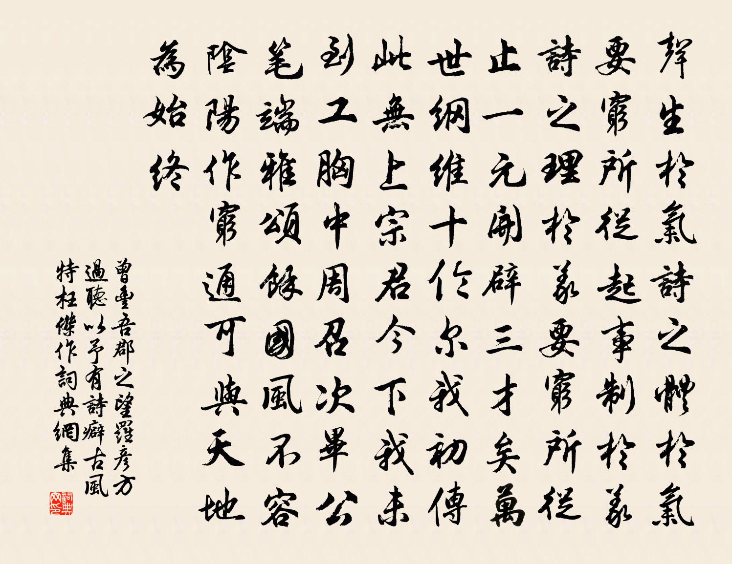 詩詞名句歷史字典書法欣賞書法字典國語詞典說文解字康熙字典古漢語字典標 題 作 者 詩 句 吾郡之望羅彥方過聽以予有詩癖古風特枉傑作作者:曾豐 朝代:宋代原文聲生於氣詩之體,於氣要窮所從起。事制於義詩之理,於義要窮所從止。一元開闢三才矣,萬世綱維十倫爾。我初傳此無上宗,君今下我未到工。胸中周召次畢公,筆端雅頌余國風。不容陰陽作窮通,可與天地為始終。詩詞問答問:《吾郡之望羅彥方過聽以予有詩癖古風特枉傑作》的作者是誰?答:曾豐問:該詩寫於哪個朝代?答:宋代書法欣賞吾郡之望羅彥方過聽以予有詩癖古風特枉傑作書法作品詩文賞析【原題】:吾郡之望羅彥方過聽以予有詩癖古風特枉傑作之貺不可虛辱賦一篇謝之詩詞推薦清平樂·金風細細晏殊〔宋代〕金風細細,葉葉梧桐墜。綠酒初嘗人易醉,一枕小窗濃睡。紫薇朱槿花殘,斜陽卻照闌乾。雙燕欲歸時節,銀屏昨燭影搖紅陳著〔宋代〕瀟灑琴簾,月燈歸後新諧好。青雲香里共清風,消得金花誥。爭奈天顛地倒。好光陰、都驚散了。更聽人說,七七送友罷舉赴邊職李洞〔唐代〕出剡篇章入洛文,無人細讀嘆俱焚。莫辭秉笏隨紅旆,便好攜家住白雲。過水象浮蠻境見,隔江猿叫漢州聞。高談錢王祠徐天佑〔宋代〕石檻山前吉駟游,故鄉霞錦遍林丘。只今東府空遺廟,露立唐碑老樹秋。太皇太后合春帖子趙湘〔唐代〕金花鏤勝隨春燕,彩仗縈絲逐土牛。迎得韶華入中禁,和風次第遍神州。嶺梅李龍高〔宋代〕雪立孤標不受霾,世間浪蕊等浮埃。清高已是無儔伍,更向群山頂上開。走筆送義興令趙宣輔徐鉉〔唐代〕聞君孤棹泛荊溪,隴首雲隨別恨飛。杜牧舊居憑買取,他年藜杖願同歸。三月二十一日泛舟十絕劉克莊〔宋代〕稚子呼牛婦饁耕,早秧水足麥風清。老農喜極還垂涕,白首安知再太平。雪黃庚〔宋代〕片片隨風整復斜,飄來老鬢覺添華。江山不夜月千里,天地無私玉萬象。遠岸未春飛柳絮,前村破曉壓梅花。羔羊次韻游山寺汪炎昶〔宋代〕龕暈描輕蘚,檐陰寞翠藤。追涼有時客,避難盡無僧。法界魔為崇,宗風冷欲冰。不知緣底事,還復有傅燈。浣溪沙 壽王子初王惲〔元代〕六合澄清到一家。**文物望中華。未容詩禮養蘭芽。松柏後*有待,*璋涵潤本無瑕。誥恩行墮五雲花。宮詞一百首岳珂〔宋代〕鰲山彩締聳仙峰,萬盞華燈寶籙宮。金字大書雙鳳闕,宣和眾樂與民同。和劉誼翁留題惠安二首舒坦〔宋代〕塢雲過雨翠成堆,天淡平湖一鑒開。萬木號風韻絲竹,千峰帶月上池台。靜無俗駕金鋪地,閒有高人玉滿杯。聞道題薦嚴院歐陽修〔宋代〕那堪多難百憂攻,三十衰容一病翁。卻把西都看花眼,斷腸來此哭東風。題李十八黃龍寺畫壁蘇轍〔宋代〕胸次崢嶸落筆端,壁題留與老夫看。枯槎尚倚春風力,蒼竹從來自歲寒。雪張鎡〔宋代〕闔夜驚飈落樹巢,平明溝瓦漸迷坳。鍪函靜聽來千騎,珪譬遙知委四郊。再白呈祥矜大稔,積陰噓氣遏方苞。池邊【中呂】快活三過朝天子_芝蘭種不生佚名〔元代〕芝蘭種不生,荊棘亂縱橫。偶因命快得個虛名,只管望前掙。緊行,慢行,趕不上休擊競。干戈蠻觸枉了戰爭,世喜遷鶯曹宰〔宋代〕皇都春早,正媚景霽色,融和時候。宿靄初收,祥煙新布,桃李滿林惟繡。挺生堊朝哲輔,風采獨居人右。世希有富沙城外李花盛開李洪〔宋代〕萬石灘頭數十家,溪流袞袞麥畦斜。三分春色今餘幾,開盡桃花見李花。朝中措(戲贈東鄰劉生再娶板橋謝女)佚名〔宋代〕橘肥梅小蠟橙黃。薄薄板橋霜。春透謝娘庭院,雅宜倚玉偎香。舊情如紙,新情如海,冷熱心腸。誰為移根換葉,名句推薦柔情似水,佳期如夢,忍顧鵲橋歸路。秦觀《鵲橋仙·纖雲弄巧》 古人今人若流水,共看明月皆如此。李白《把酒問月·故人賈淳令予問之》 問姓驚初見,稱名憶舊容。李益《喜見外弟又言別》 越女新妝出鏡心,自知明艷更沉吟。張籍《酬朱慶餘》 夜市賣菱藕,春船載綺羅。杜荀鶴《送人游吳》 客從遠方來,遺我雙鯉魚。佚名《飲馬長城窟行》 夢斷刀頭,書開蠆尾,別有相思隨定。史達祖《齊天樂·中秋宿真定驛》 聖人之為國也,觀俗立法則治,察國事本則宜。商鞅《商君書·算地》 蜂兒不解知人苦,燕兒不解說人愁。程垓《最高樓·舊時心事》 以權利合者,權利盡而交疏。司馬遷《史記·鄭世家》