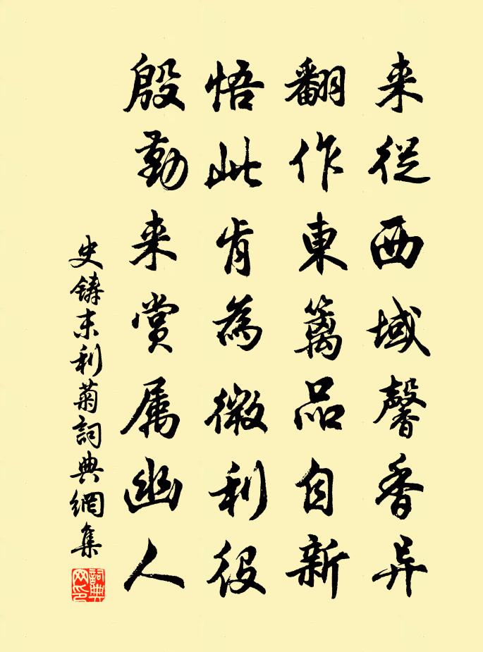 詩詞名句歷史字典書法欣賞書法字典國語詞典說文解字康熙字典古漢語字典標 題 作 者 詩 句 末利菊作者:史鑄 朝代:宋代末利菊原文來從西域馨香異,翻作東籬品自新。悟此肯為微利役,殷勤來賞屬幽人。詩詞問答問:末利菊的作者是誰?答:史鑄問:末利菊寫於哪個朝代?答:宋代史鑄末利菊書法欣賞末利菊書法作品詩詞推薦郊廟歌辭。祭方丘樂章。金奏佚名〔唐代〕坤元至德,品物資生。神凝博厚,道協高明。列鎮五嶽,環流四瀛。於何不載,萬寶斯成。元豐己未三院東閣作元豐戊午夏予尹京治陳蘇頌〔宋代〕罷尹一年重置對,去家千里涉寒溫。青雲交友難傾蓋,白髮慈親正倚門。日斷濠梁橫涕泗,夢回京口役形魂。寬恩一籮金/蝶戀花李石才〔宋代〕武陵春色濃如酒。遊冶才郎,初試花間手。絳蠟燭殘人靜後。眉峰便作傷春皺。一霎風狂和雨驟。柳嫩花柔,渾不初夏陳紀〔宋代〕梅子黃時雨又晴,春衫未脫暑猶輕。天橫遠岫半眉綠,雲漏斜陽一眼明。野樹晚風清蝶夢,曲池芳草亂蛙聲。浮生種梅李龍高〔宋代〕別嶺移根置小園,半鋤明月半鋤雲。世間下是無花卉,若個清高得似君。送周元吉顯謨左司將漕湖北三首楊萬里〔宋代〕又見周郎攜小喬,武昌赤壁醉嬌饒。蜀江雪水來三峽,吳苑風煙訪六朝。秋月春花出肝肺,新詞麗曲入笙簫。歸來菩薩蠻程垓〔宋代〕平蕪冉冉連雲綠。斜陽襯雨明溪足。小鴨睡晴沙。翠烘三兩花。春光閒婉娩。盡日無人見。試著小屏山。圖歸雲際五言重送橫飛聯句顏真卿〔唐代〕春田草未齊,春水滿長溪。 ——李崿出餞風初暖,攀光日漸西。 ——顏真卿歸期江上遠,別思月中迷。 ——偈頌二百零五首釋正覺〔宋代〕不可得而有,不可得而無。寂寂十方坐斷,寥寥一境清虛。妍醜那能瞞淨鏡,青黃莫我染明珠。剎海不能關鎖月,湖莊述懷曹彥約〔宋代〕門無賓客愧朋儕,冷淡何人諒此懷。隨意作詩無唱和,等閒沽酒不安排。每扶短杖行方穩,欲泛扁舟計未諧。方得粉蝶兒(詠圓子)史浩〔宋代〕玉屑輕盈,鮫綃霎時鋪遍。看仙娥、騁些神變。咄嗟間,如撒下、真珠一串。火方然,湯初滾、盡浮鍋面。歌樓酒蟬姜特立〔宋代〕自下高升木杪問,風為呼吸露為餐。雖雲強聒人憎惡,也勝低頭推糞丸。雜感陸游〔宋代〕故舊書來訪死生,時聞剝啄叩柴荊。自嗟不及東家老,至死無人識姓名。詠桃李世民〔唐代〕禁苑春暉麗,花蹊綺樹妝。綴條深淺色,點露參差光。向日分千笑,迎風共一香。如何仙嶺側,獨秀隱遙芳。如夢令謝應芳〔元代〕蘿屋不經風破。苔徑不教塵*。魚鼓洞仙歌,童子唱來還和。閒坐。閒坐。窗下白雲飛過。齊宣王見顏斶 / 顏斶說齊王佚名〔先秦〕齊宣王見顏斶,曰:“斶前!”斶亦曰:“王前!”宣王不說。左右曰:“王,人君也。斶,人臣也。王曰‘斶前偈傾一百六十九首釋智朋〔宋代〕雪竇頭上錐,腳下劄。拍拍是令,成就一切世界。望江南李綱〔宋代〕日下,蓑笠老江湖。”今蒙恩北歸當踐斯言,因作漁父四時詞以道意,調寄望江南雲棹遠,南浦綠波春。日暖風和答朋上人釋紹嵩〔宋代〕爭渡行人簇晚沙,歸舟天際暮雲遮。波生野水雁初下,竹映寒原日已斜。剩欲出門追笑語,可堪垂白各天涯。知公和斯立夜校試卷呈同舍十二韻晁說之〔宋代〕校藝來從魯,聞韶昔在齊。幸容葭倚樹,歡會食甘藜。禮數延文士,雄豪動武奎。嚴凝池上雪,燦爛谷中霓。喜見名句推薦雁聲不到東籬畔,滿城但、風雨淒涼吳文英《惜黃花慢·菊》 長江萬里東注,曉吹卷驚濤。吳潛《水調歌頭·焦山》 三湘愁鬢逢秋色,萬里歸心對月明。盧綸《晚次鄂州》 生當作人傑,死亦為鬼雄。李清照《夏日絕句》 謀無主則困,事無備則廢。管仲《管子·霸言》 念往昔,繁華競逐,嘆門外樓頭,悲恨相續。王安石《桂枝香·登臨送目》 令之有漸,軌之有度,寵之有節房玄齡《晉書·列傳·第六十二章》 春風不相識,何事入羅幃。李白《春思》 勝而不驕,敗而不怨。商鞅《商君書·戰法》 湖闊兼雲霧,樓孤屬晚晴。杜甫《陪裴使君登岳陽樓》