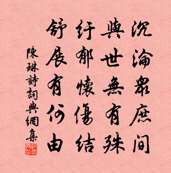 詩詞名句歷史字典書法欣賞書法字典國語詞典說文解字康熙字典古漢語字典標 題 作 者 詩 句 詩作者:陳琳 朝代:魏晉詩原文沉淪眾庶間。與世無有殊。紆鬱懷傷結。舒展有何由。詩詞問答問:詩的作者是誰?答:陳琳問:詩寫於哪個朝代?答:魏晉陳琳詩書法欣賞詩書法作品詩詞推薦蒼頡台李鹹用〔唐代〕先賢憂民詐,觀跡成綱紀。自有書契來,爭及結繩理。題遠山平林圖王炎〔宋代〕山色微茫疑有無,木葉半脫殊蕭疏。雲根更著數椽屋,此屋當有幽人居。墨妙逼真乃如此,畢竟非真惟近似。何如和趙周錫制乾峽中韻四首袁說友〔宋代〕千仞山頭更有山,一山去後一山還。林巒有路春回綠,仙洞無人夜啟關。岫列千屏森葆衛,石藏五色像形顏。舉頭登祝融寺蘭若(一作登南嶽月宮蘭若)盧肇〔唐代〕祝融絕頂萬餘層,策杖攀蘿步步登。行到月宮霞外寺,白雲相伴兩三僧。淳熙四年二月既望靜江守臣張某奉詔勸農於郊張栻〔宋代〕祁祁甘雨,膏我下土。羽羽谷風,和澤乃音。蔬圃絕句陸游〔宋代〕擬種蕪菁已是遲,晚菘早韭恰當時。老夫要作齋盂備,乞得青秧趁雨移。籜庵頌釋正覺〔宋代〕玉龍退殘鱗,編庵事枯兀。禪棲錦鳳巢,道履霜蟾窟。飲茲明月津,濯彼微塵骨。五葉少林春,家風未湮沒。句寇準〔宋代〕自憐野客都無著。寄潘恭叔曾幼度三首趙蕃〔宋代〕天將絕境付奇才,萬里飄零莫自哀。不爾如何吾幼度,郁孤台又粵王台。洪範以不合俗人題廳壁二絕句次韻和之黃庭堅〔宋代〕埋沒高才築釣間,風雲未會要鯢桓。南康郡下參軍耳,付與紅塵白眼看。清平樂·孤花片葉納蘭性德〔清代〕孤花片葉,斷送清秋節。寂寂繡屏香篆滅,暗裡朱顏消歇。誰憐散髻吹笙,天涯芳草關情。懊惱隔簾幽夢,半床花寄吳知府釋寶曇〔宋代〕夢中時一到湖山,酷愛山雲似我賢。盡有新詩題葉滿,豈無流水逐人還。經年晏坐追摩詰,盡日提攜欠小蠻。白首次韻梁教章宰喜雪陳造〔宋代〕窮臘缺膏潤,何異客病渴。龍伯供雪事,落勢不受遏。繽紛一再余,旋報焦卷活。去年痛無年,回首氣尚奪。流亡觀荷葉露珠齊己〔唐代〕霏微曉露成珠顆,宛轉田田未有風。任器方圓性終在,不妨翻覆落池中。和林子長謝徐吉甫蒲萄韻袁說友〔宋代〕吾兒癸卯豚犬耳,徐家同日生明珠。乃翁愛子愛其類,堆盤歲歲分甘腴。嘗新既足旨甘奉,遣送更欲均有無。但肯除夕前一日記事方回〔宋代〕殘臘先班隔歲春,匆匆五十九年人。一朝一暮即除夜,萬是萬非余病身。老子附爐無奈癢,小兒索紙卒難嗔。仆衫和顏持約陳與義〔宋代〕半篙寒碧秋垂釣,一笛西風夜倚樓。多少巫山舊家事,老來分付水東流。放翁自贊陸游〔宋代〕遺物以貴吾身,棄智以全吾真。劍外江南,飄然幅巾。野鶴駕九天之風,澗松傲萬木之春。或以為跌宕湖海之士,解佩令劉志淵〔元代〕心清養浩。星塵無擾。近林泉、輪蹄不到。活計蕭閒,任盈門、苔蘚圍繞。有滿院、落花風掃。鶴鳴露冷,猿啼月送僧講罷歸山唐求〔唐代〕休將如意辯真空,吹盡天花任曉風。共看玉蟾三皎潔,獨懸金錫一玲瓏。岩間松桂秋煙白,江上樓台晚日紅。依舊名句推薦驚風飄白日,忽然歸西山曹植《贈徐幹詩》 燕子又將春色去。紗窗一陣黃昏雨。司馬槱《黃金縷·家在錢塘江上住》 揮手自茲去,蕭蕭班馬鳴。李白《送友人》 得賢者安存,失賢者危亡戴聖《大戴禮記·保傅第四十八》 玉人初上木蘭時。懶妝斜立澹春姿。吳文英《浣溪沙·題李中齋舟中梅屏》 誰知萬里客,懷古正躊躕。陳子昂《峴山懷古》 扶桑已在渺茫中,家在扶桑東更東。韋莊《送日本國僧敬龍歸》 情共天涯秋黯,朱橋鎖深巷。吳文英《解蹀躞·醉雲又兼醒雨》 飄零疏酒盞,離別寬衣帶。秦觀《千秋歲·水邊沙外》 今歲今宵盡,明年明日催。史青《應詔賦得除夜》