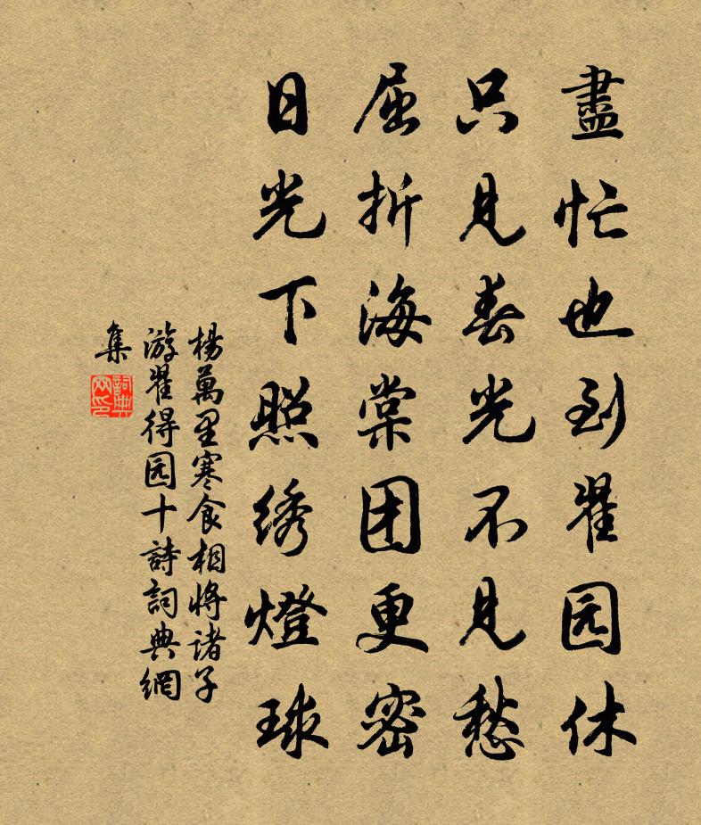 盡忙也到翟園休,只見春光不見愁。屈折海棠團更密,日光下照繡燈球。